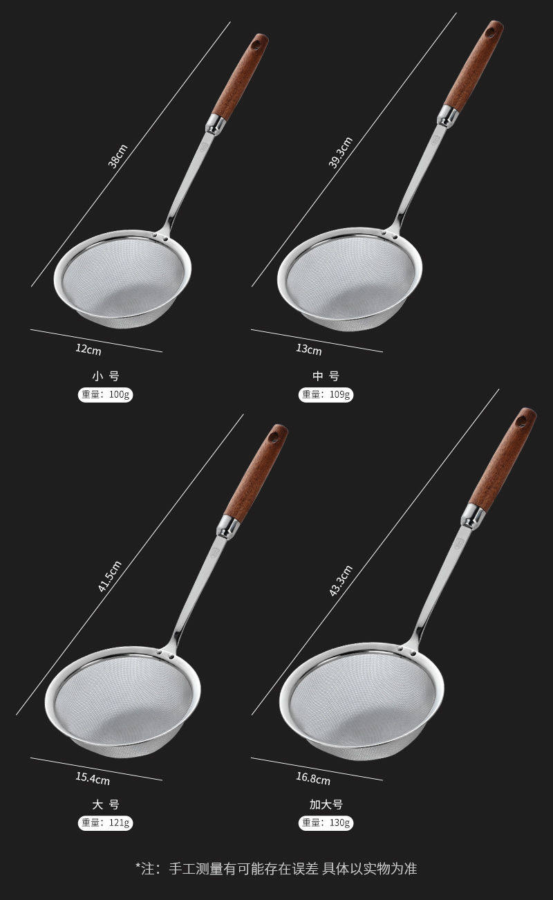 304 Stainless Steel Colander Fine Mesh Ultra-Dense Household Kitchen Bean Berry Juice Filter Sieve Commercial Fishing Spoon Flour Sieve