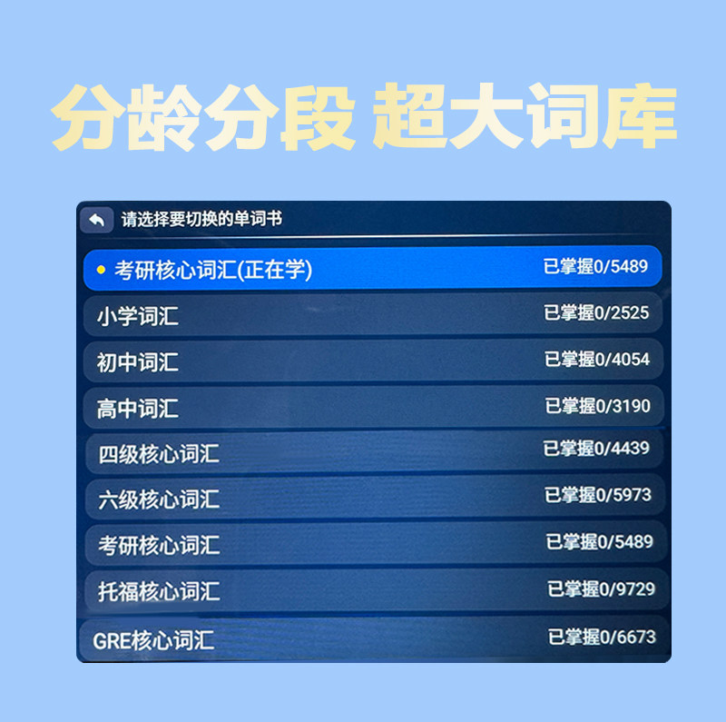 | Point Reading Content Type | High School and College Entrance Exam (Core Vocabulary/Phrases/Listening Comprehension),College Entrance Examination (Postgraduate Entrance Exam Vocabulary/Toeic/Toefl/Tem-4/Tem-8 English Core Vocabulary),Primary School Exam (Ket/Pet/Primary School English Vocabulary) |