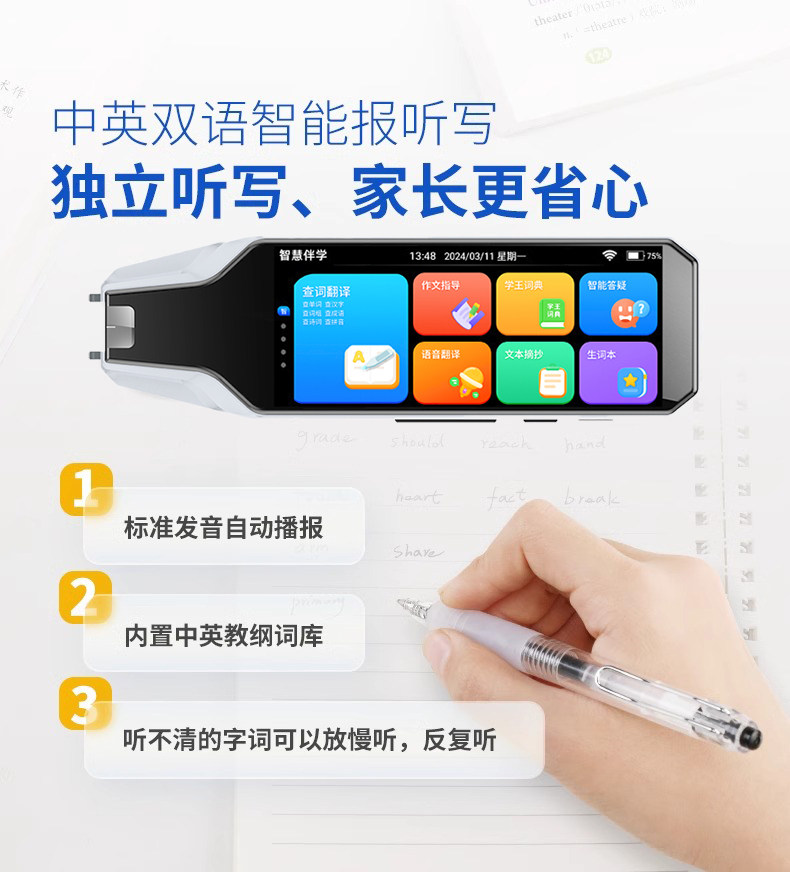 Hualaina English Reading Pen for Elementary, Middle, and High School Students, Ielts and Toefl All-Subject Scanning Pen, Smart Dictionary, Universal