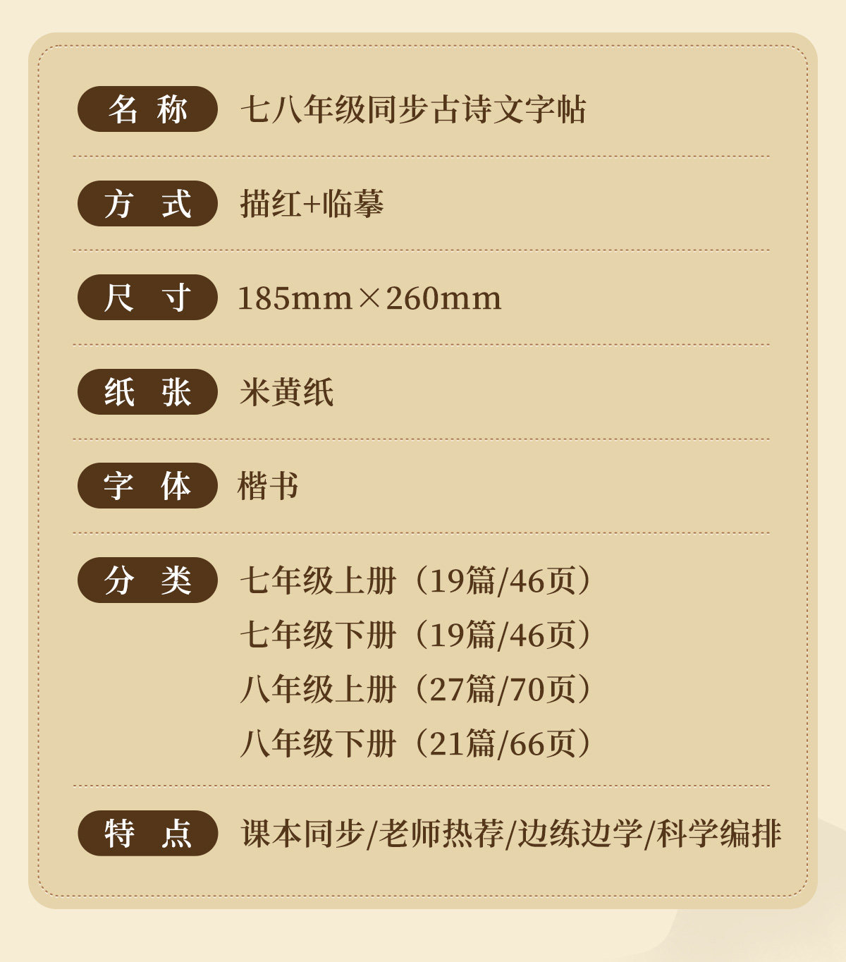 | Book Title | Junior High School Ancient Poetry Synchronized Copybook |