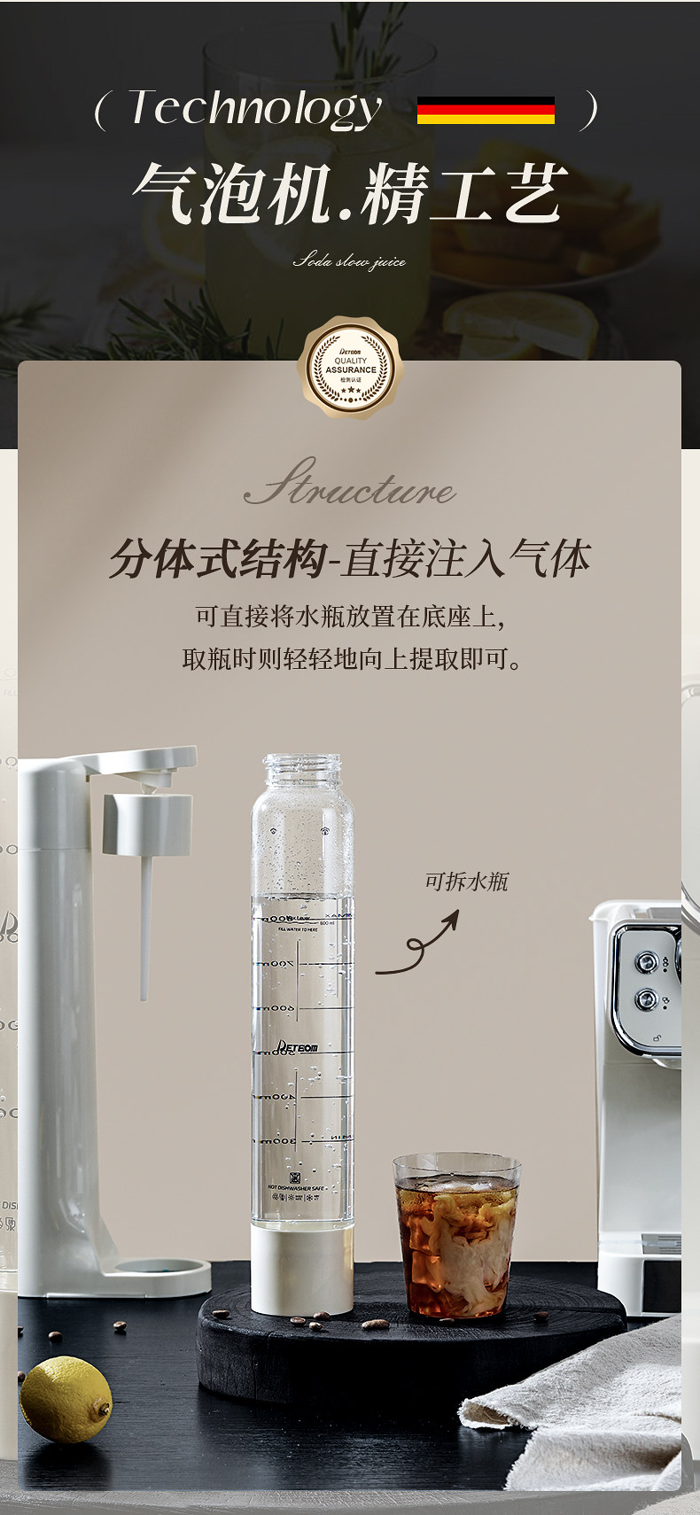 Detbom Sparkling Water Machine for Home Use, Large Capacity Commercial Carbonated Soda Maker, Soda Water Machine