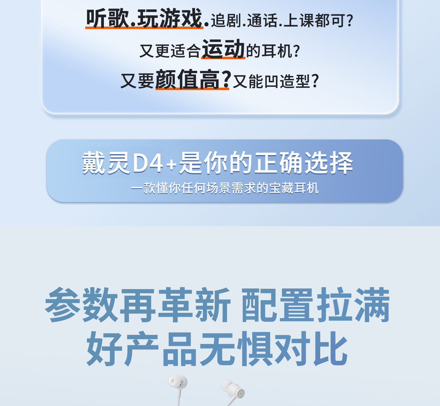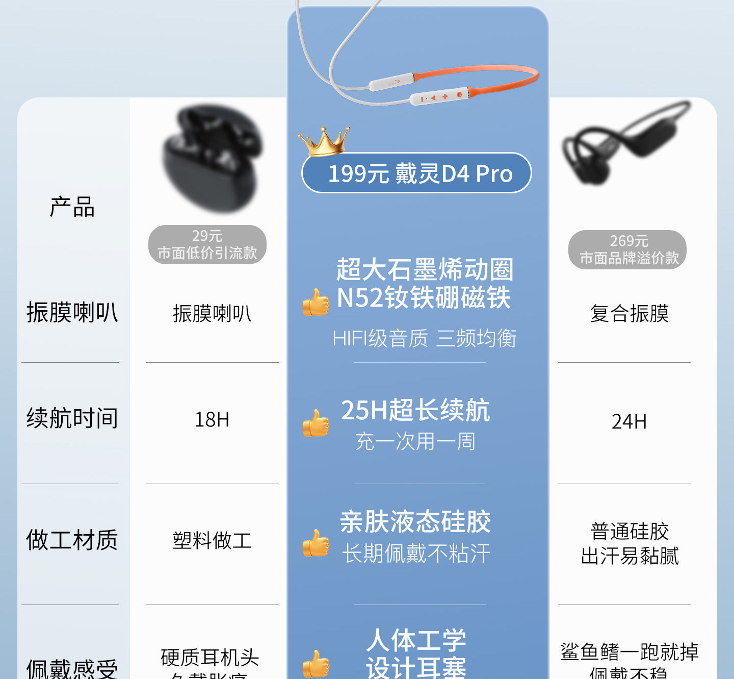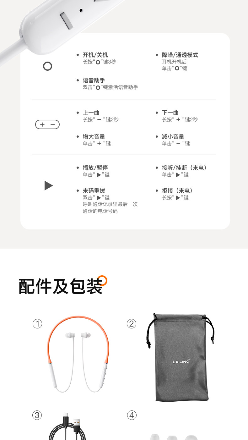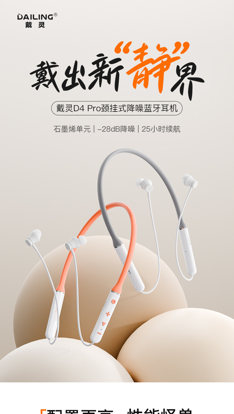 Dailing D4 Pro Neck-Mounted Noise-Cancelling Bluetooth Headset Wireless In-Ear Sports Cycling and Running Special Long Battery Life