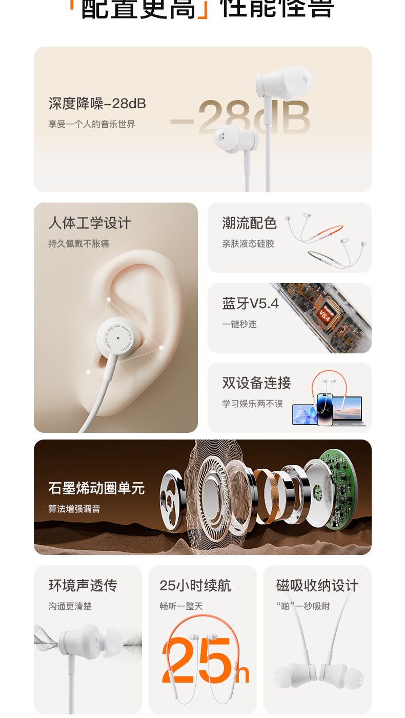 | Color Classification | Vibrant Orange [25H Long Battery Life, -28Db Noise Reduction, More Comfortable Silicone Halter, Graphene Unit],Advanced Gray [25H Long Battery Life, -28Db Noise Reduction, Silicone Halter Is More Comfortable, Graphene Unit],After-Sales Rights - Buy with Confidence [Only Replacement for One Year, No Repair, Support Trial, 7-Day No-Reason Return with Shipping Fee],Year-End Shopping Express Delivery - Express [Partnering with Express for Enhanced Logistics! All Store Products Now Ship Via Express by Default!] |