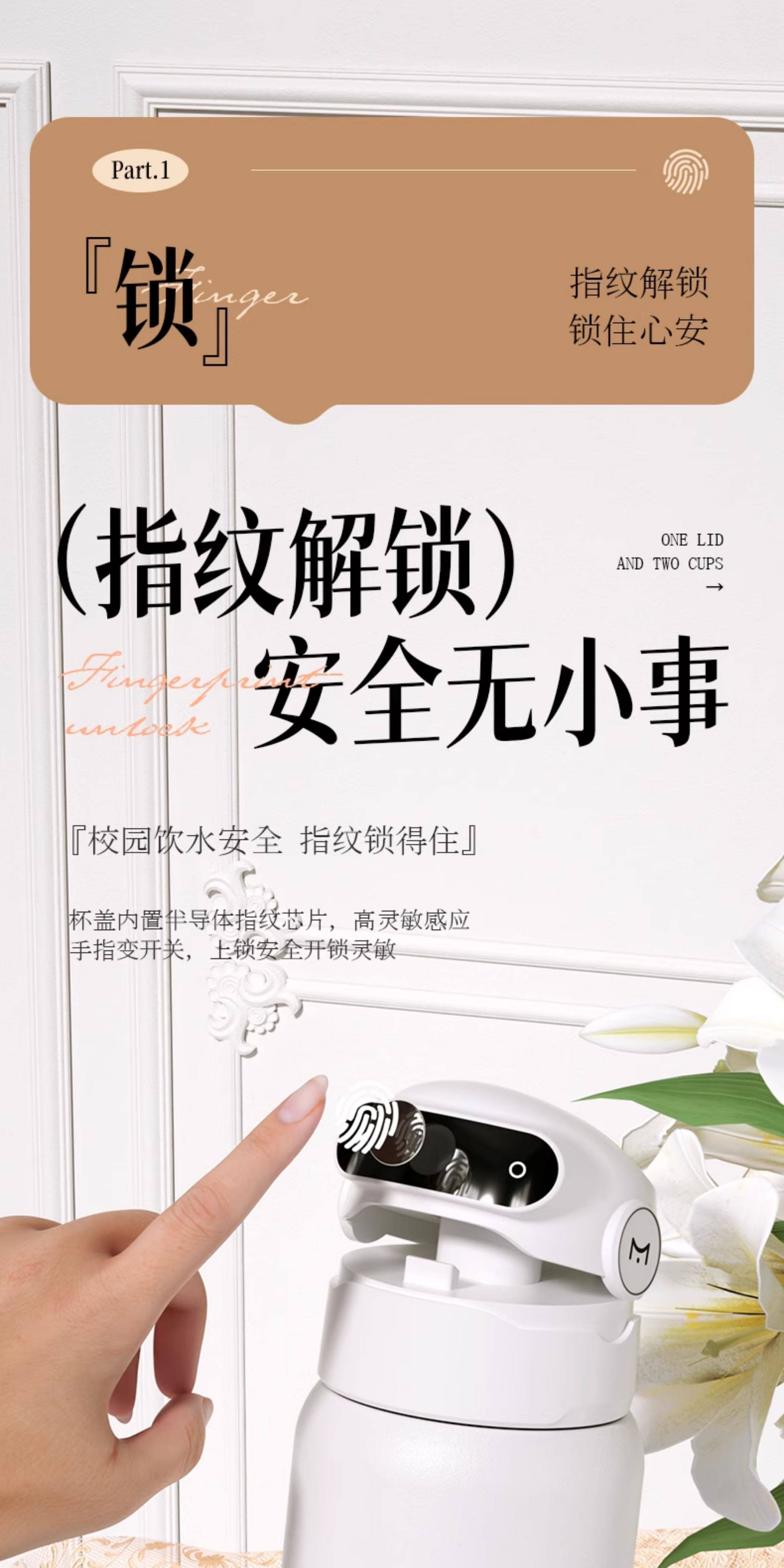 Mikapu Fingerprint Password Unlocking Thermos Cup for Women, Smart Kidsren's School-Specific Adult Straw Water Cup