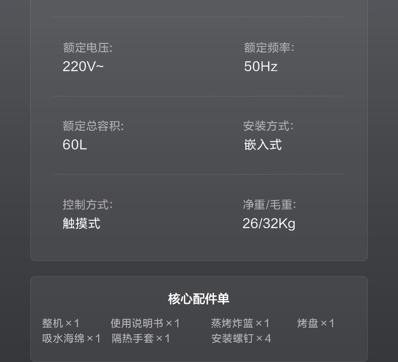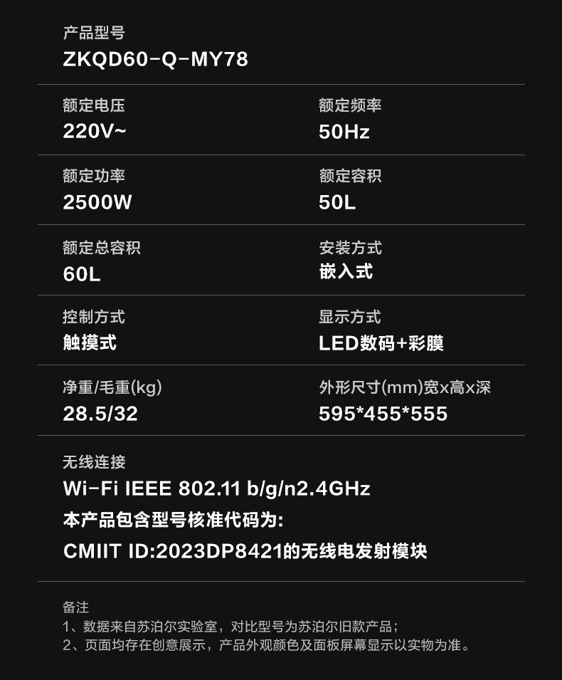 Supor My78 Steaming and Baking All-In-One Machine, Embedded Household Steaming and Baking Oven, Large-Capacity Electric Oven My68
