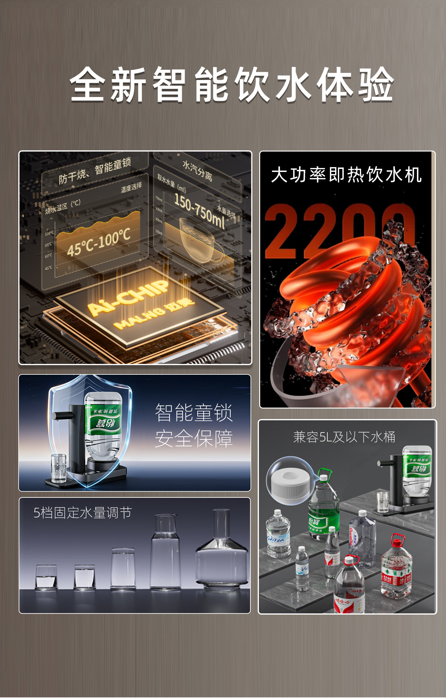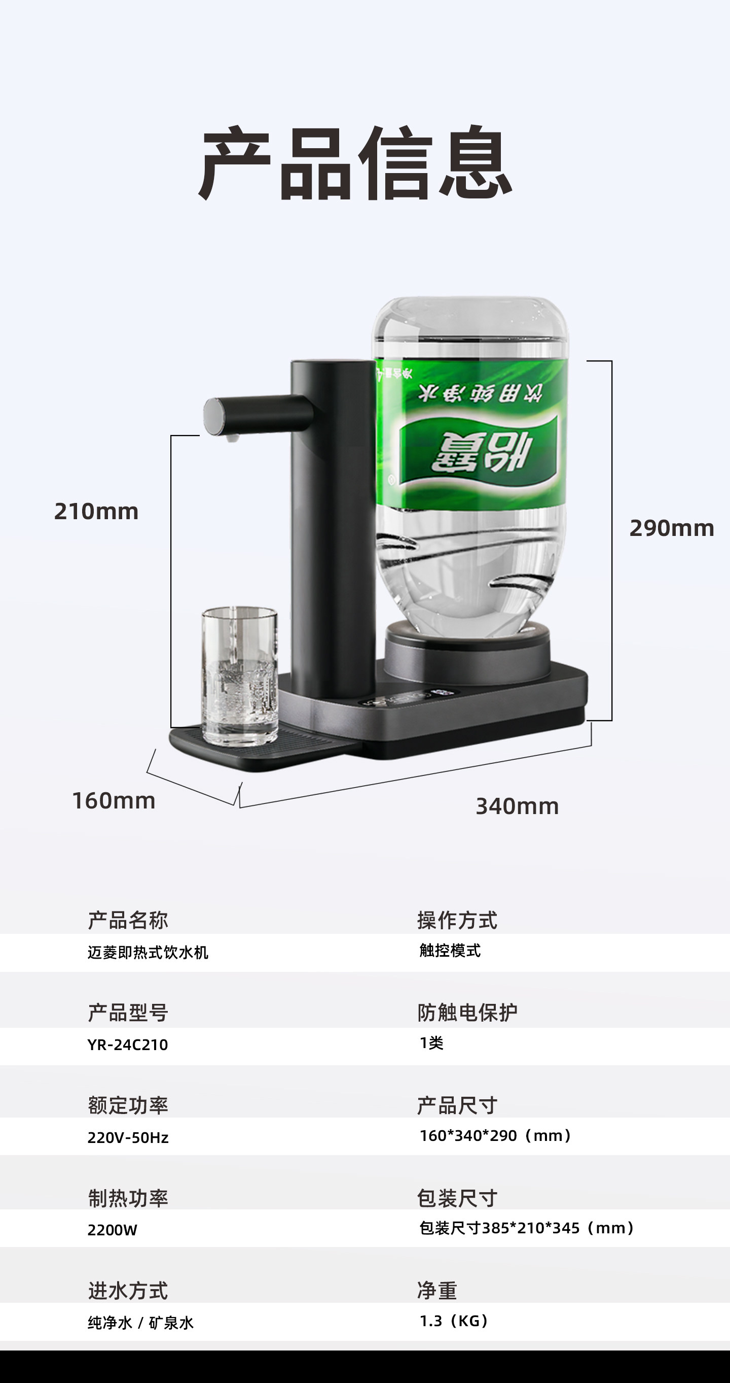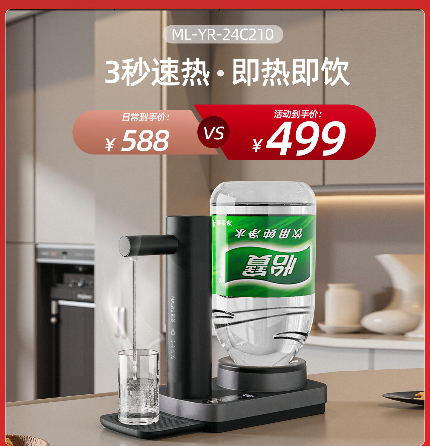Malng Water Dispenser 2025 New Model Household Desktop Instant Hot Water Dispenser for Bottled Water Small Size 189