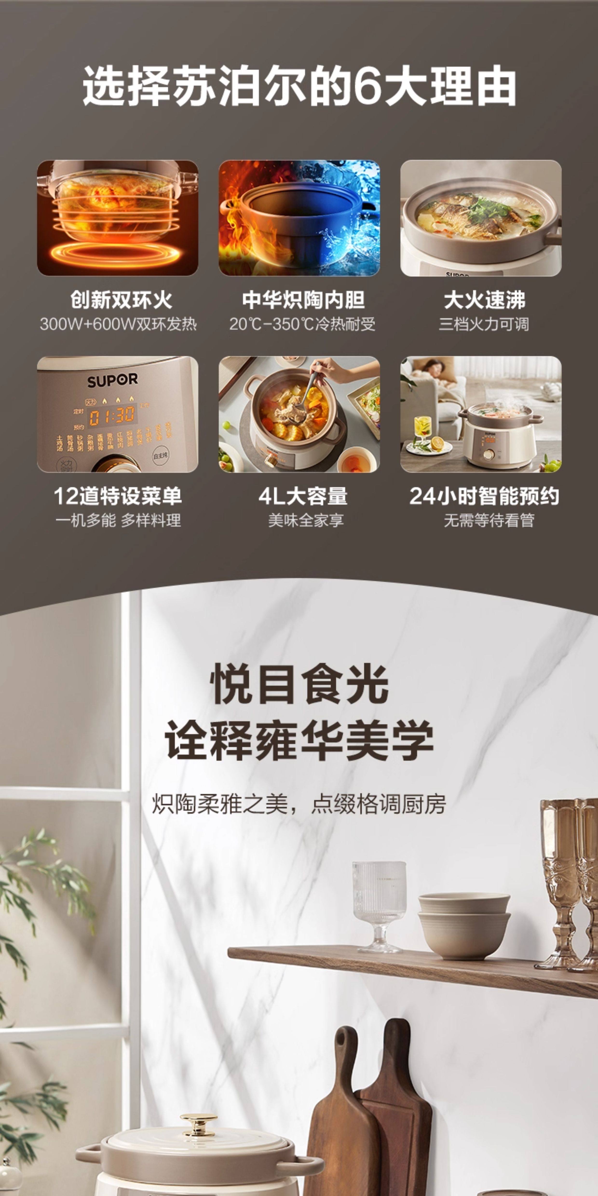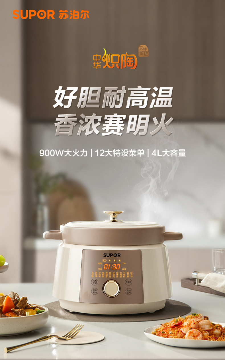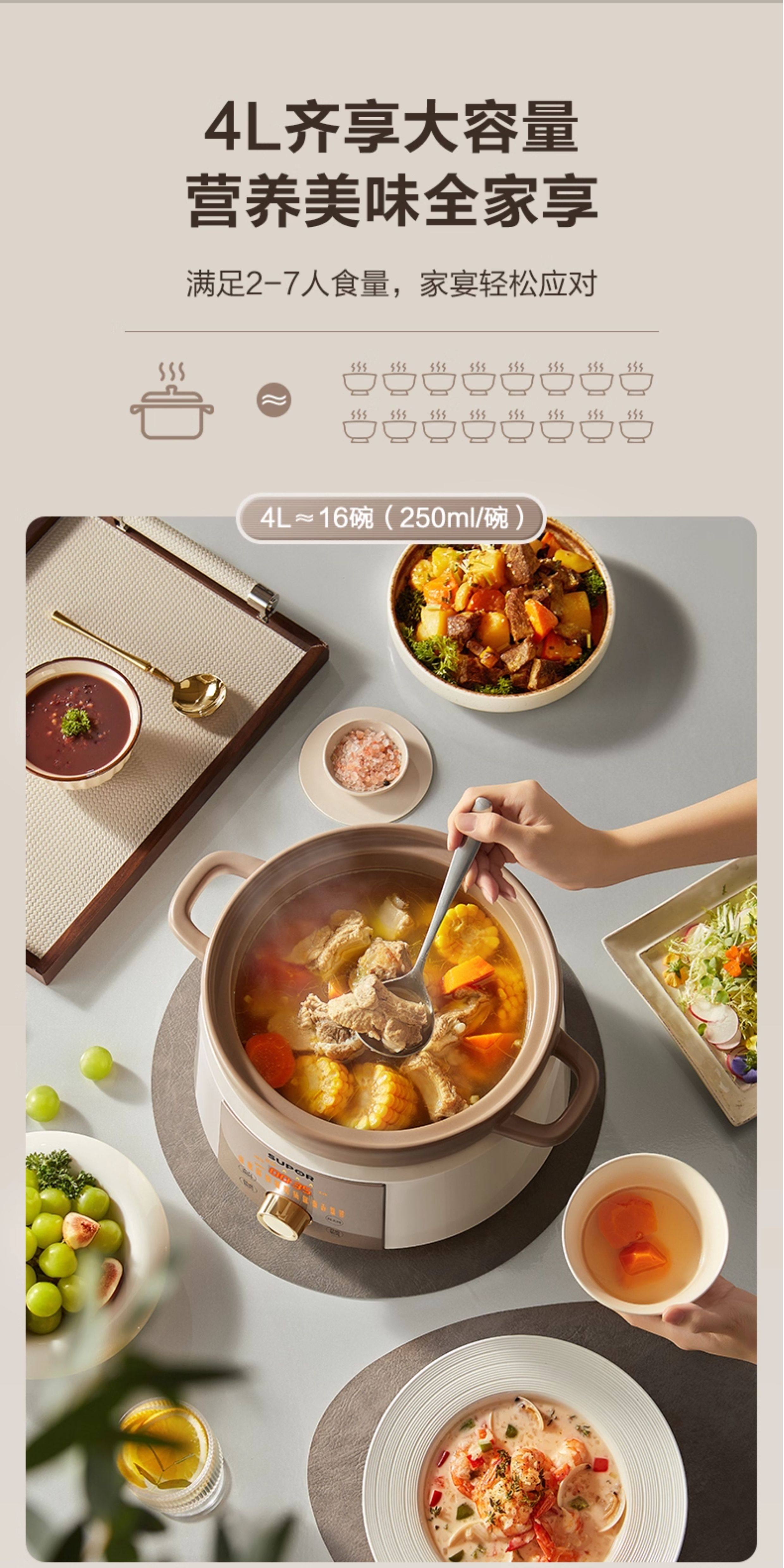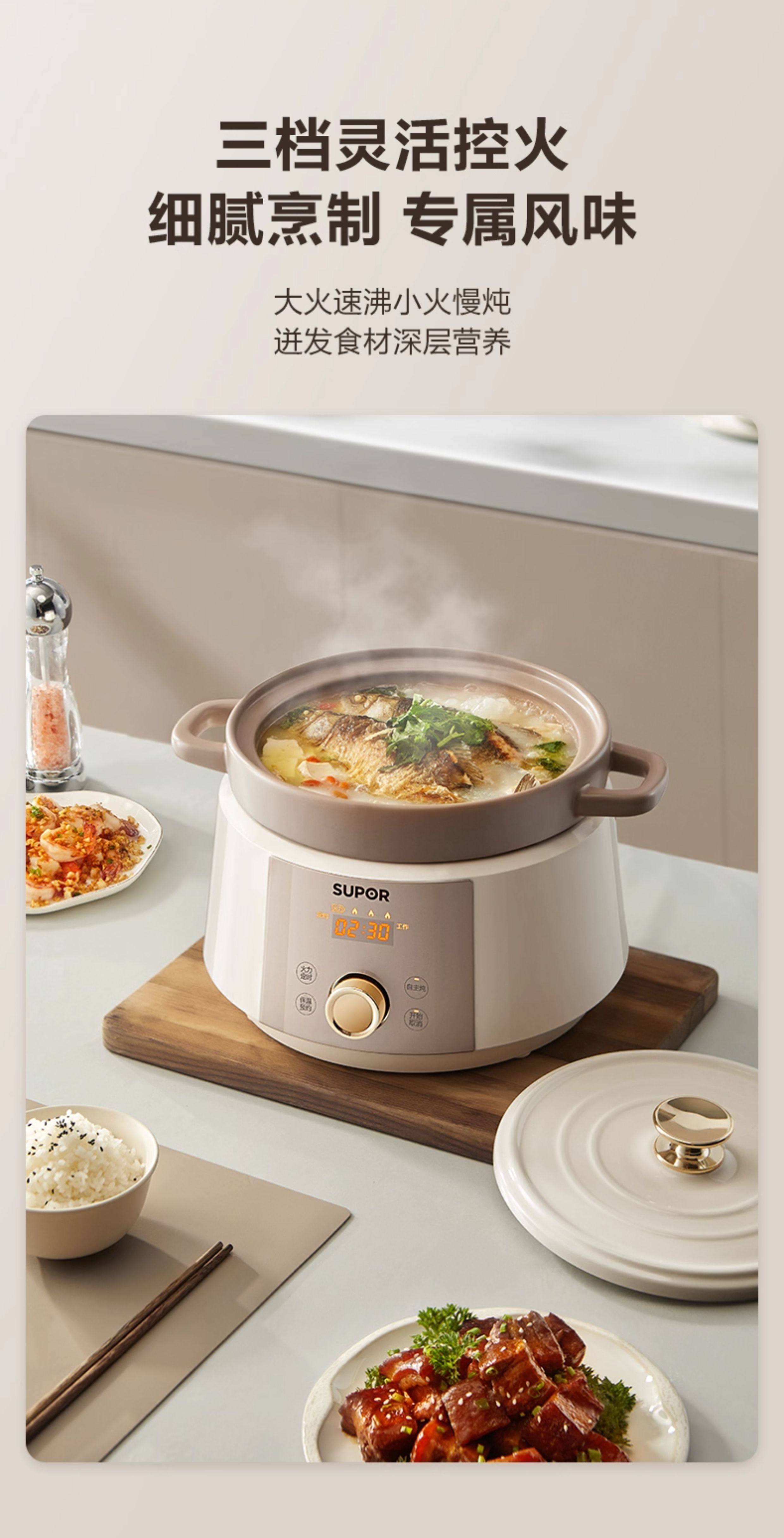 Supor Chinese Electric Ceramic Stew Pot for Home Use, Electric Clay Pot, Health Pot, Soup Pot, Porridge Pot, Cooking Machine