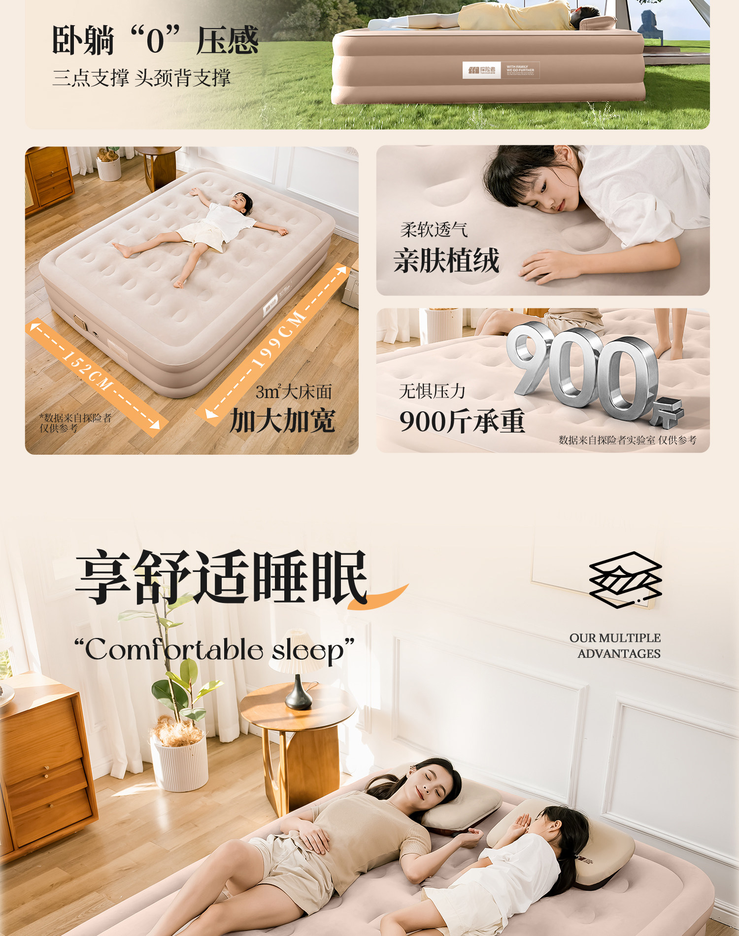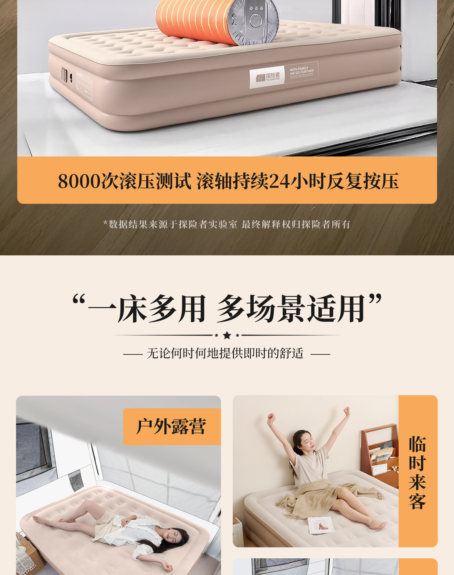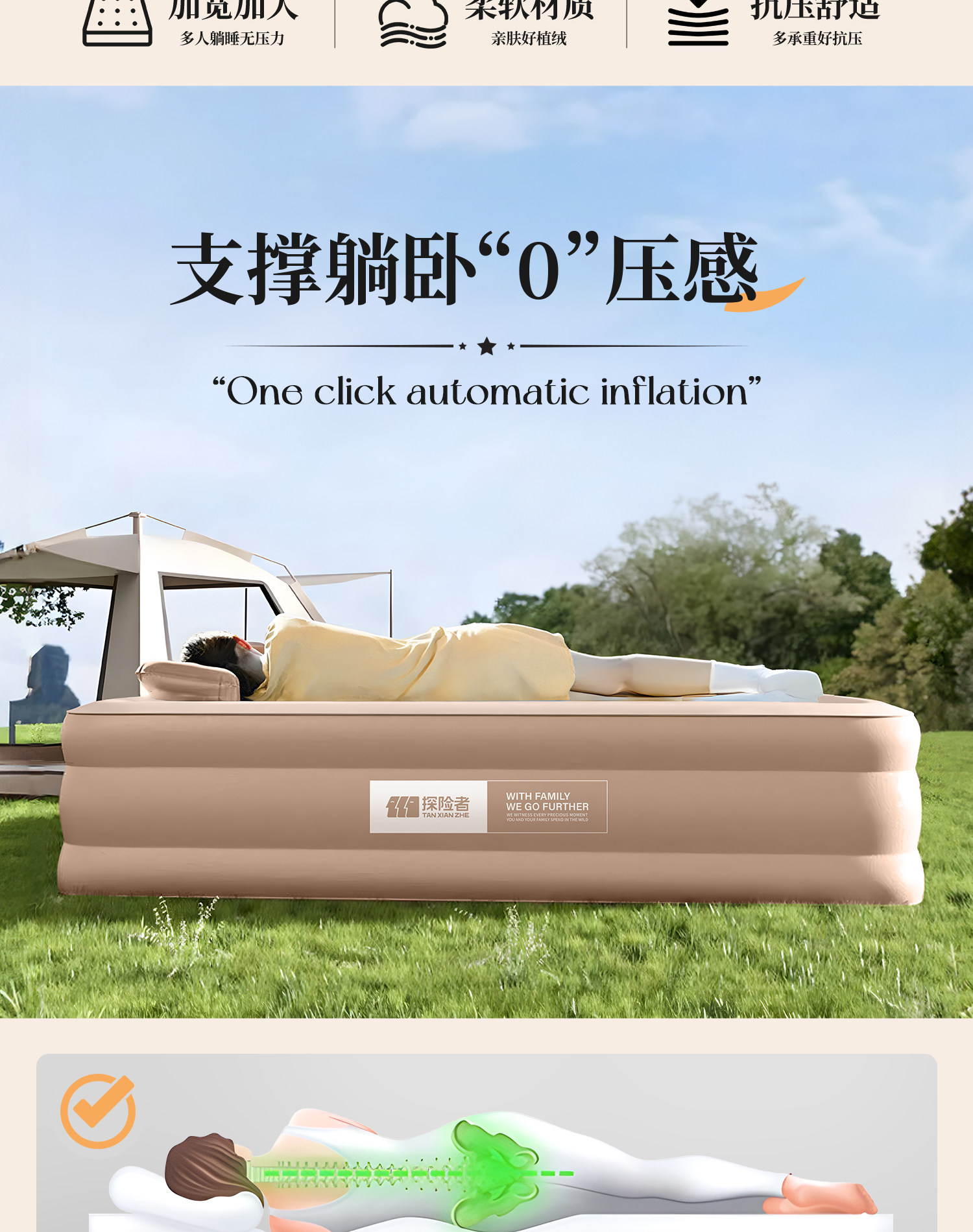 Explorer's New Automatic Inflatable Mattress for Floor Sleeping, Home Use, Outdoor Camping, Foldable, Thickened, Double/Single Air Mattress