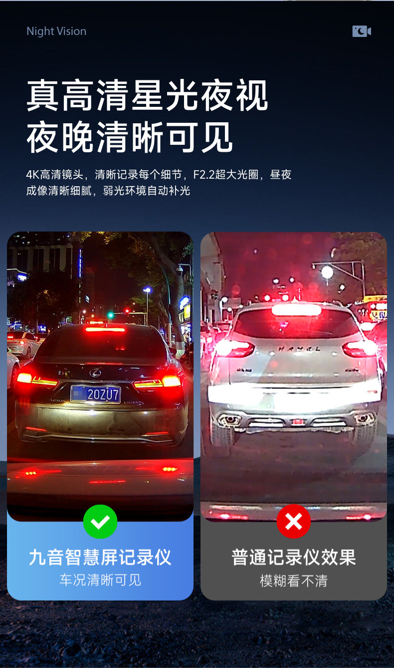 | Function | Enhanced Night Vision,Loop Recording,Bluetooth,Reversing Image,Night Vision Fill Light,Gps Navigation,Parking Monitoring,Before and after Recording,Short Video Sharing,Screen Deformation Correction |