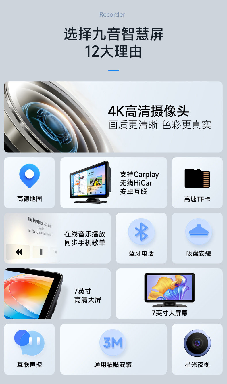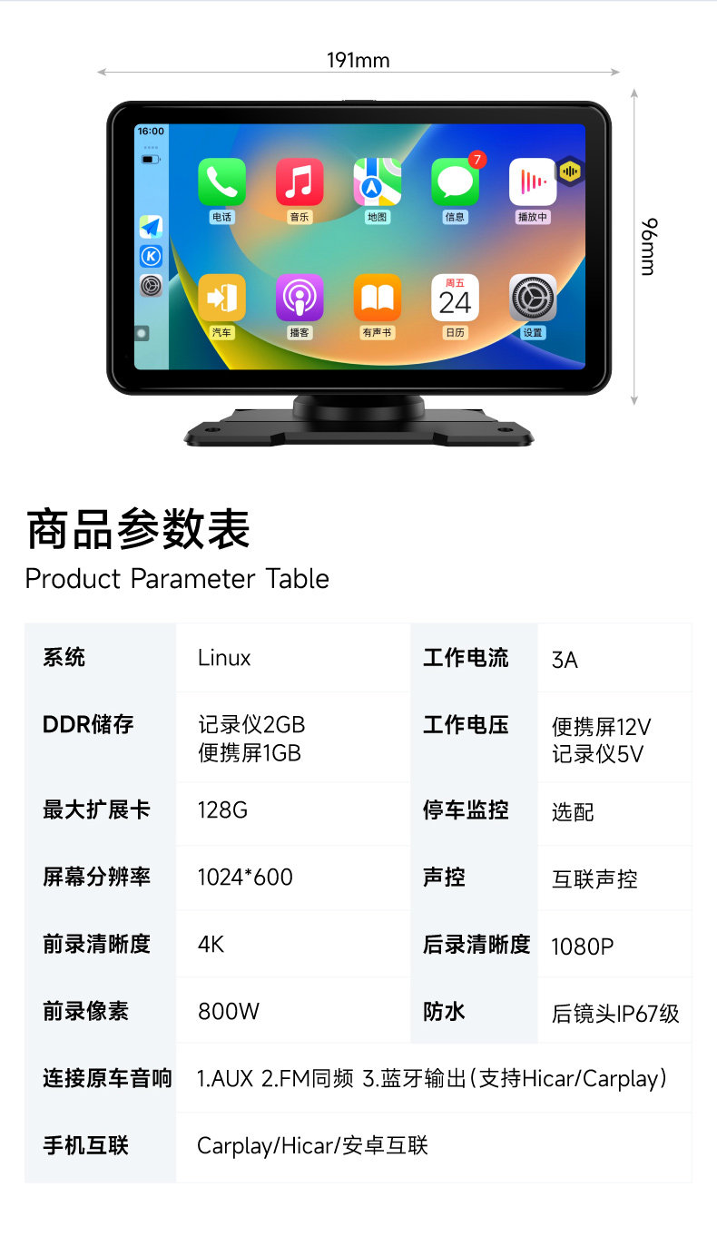 | Color Classification | Note: Jiuyin Official official store | One-Year Warranty | Quick Delivery,1】 7inch Smart Portable Screen Recorder (Carplay + Hicar + Android Auto) + 32Gb Memory Card,2] 7inch Smart Portable Screen Recorder (Carplay+Hicar+Android Interconnection) + 64g Memory Card,3] 7inch Smart Portable Screen Recorder (Carplay+Hicar+Android Interconnection) + 128g Memory Card,4] 7inch Smart Portable Screen (Carplay+Hicar+Android Interconnection),5] 7inch Smart Portable Screen (Carplay+Hicar+Android Interconnection) + Reversing Image |