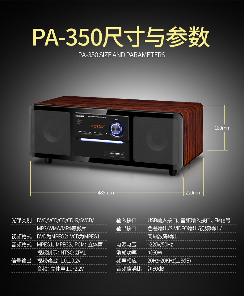 Pa350 Desktop All-In-One Cd Combo Audio System Dvd Bluetooth Bedroom Radio Speaker Karaoke Speaker for Home Use