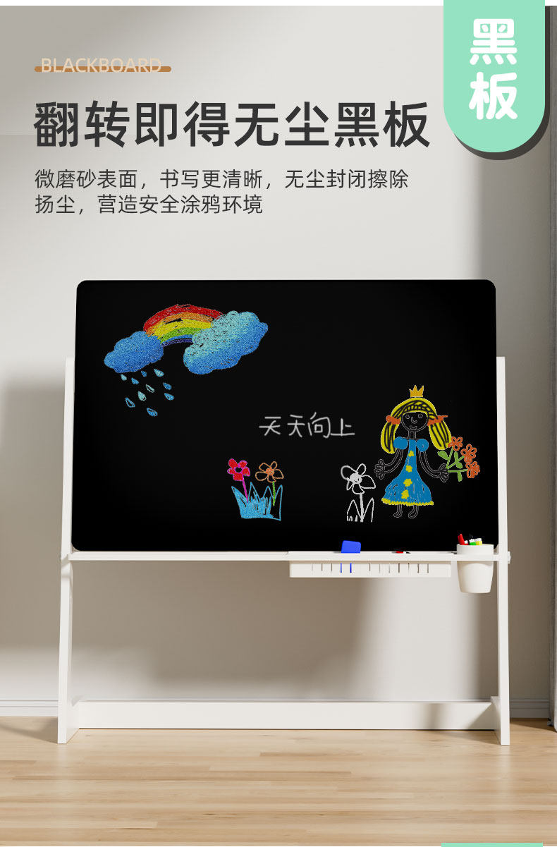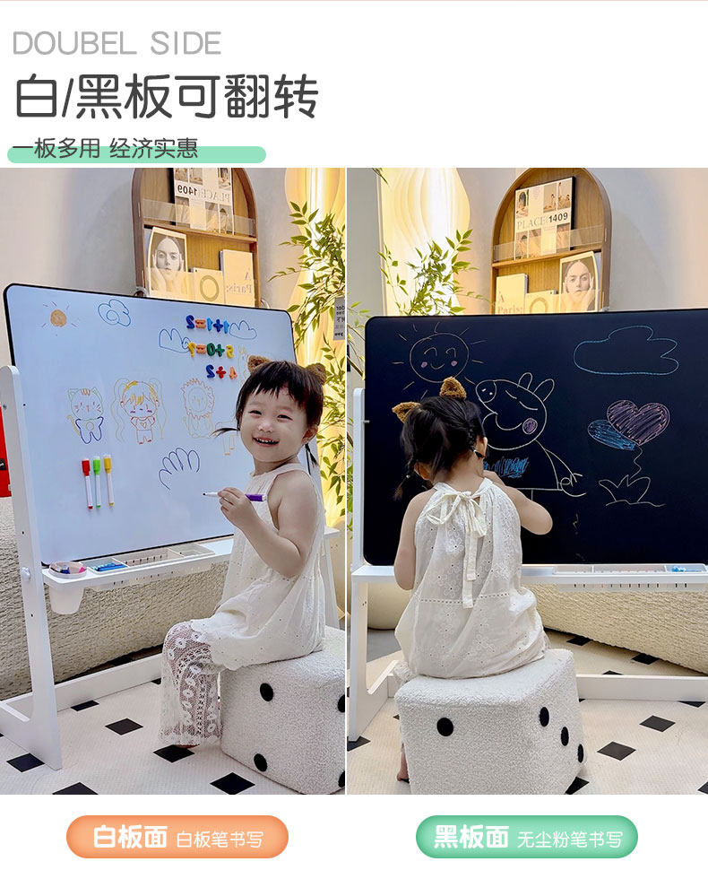Children's Household Movable Magnetic Double-Sided Large Whiteboard Stand-Type Small Blackboard Drawing Board Writing Board Teaching Graffiti