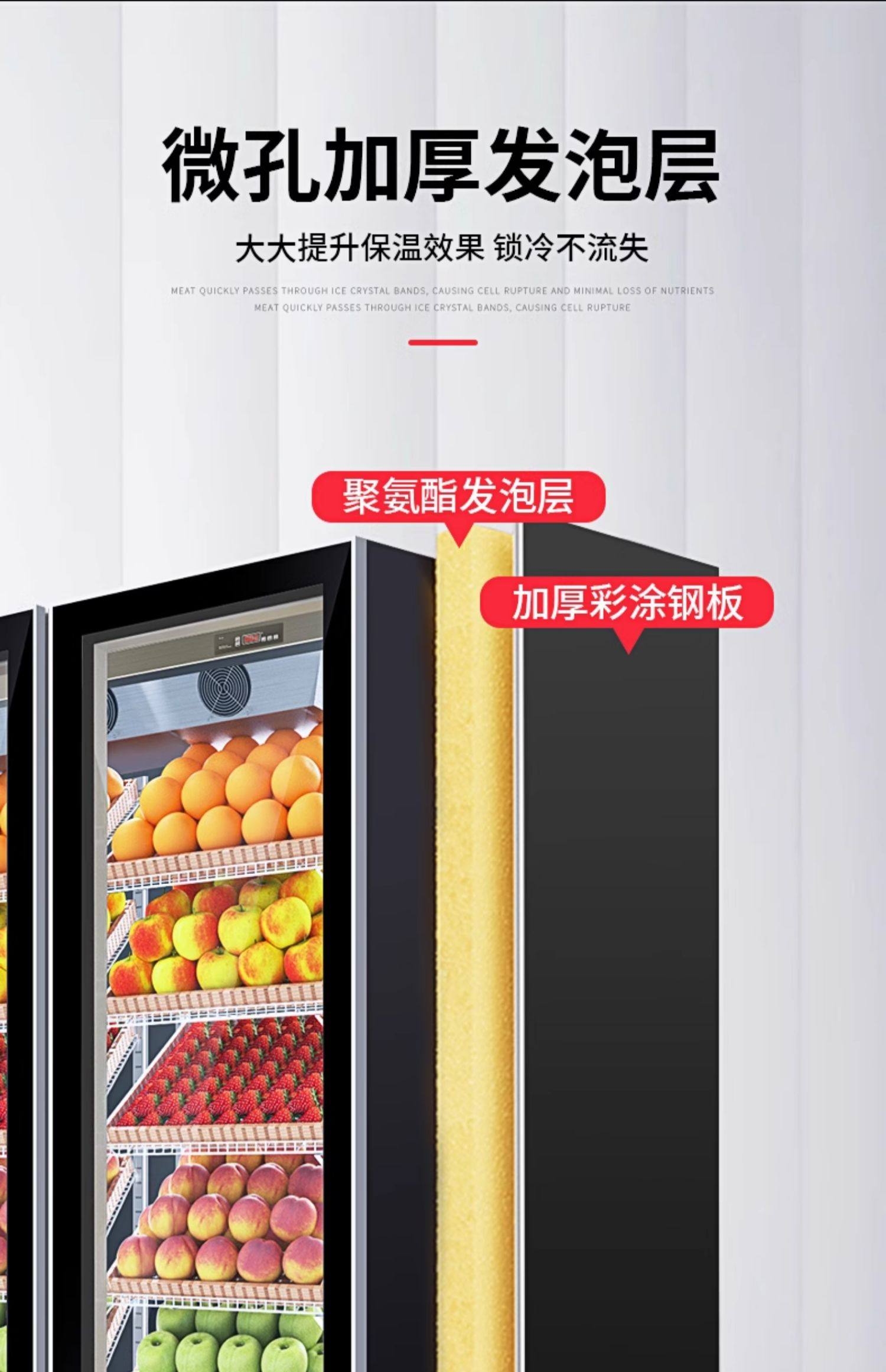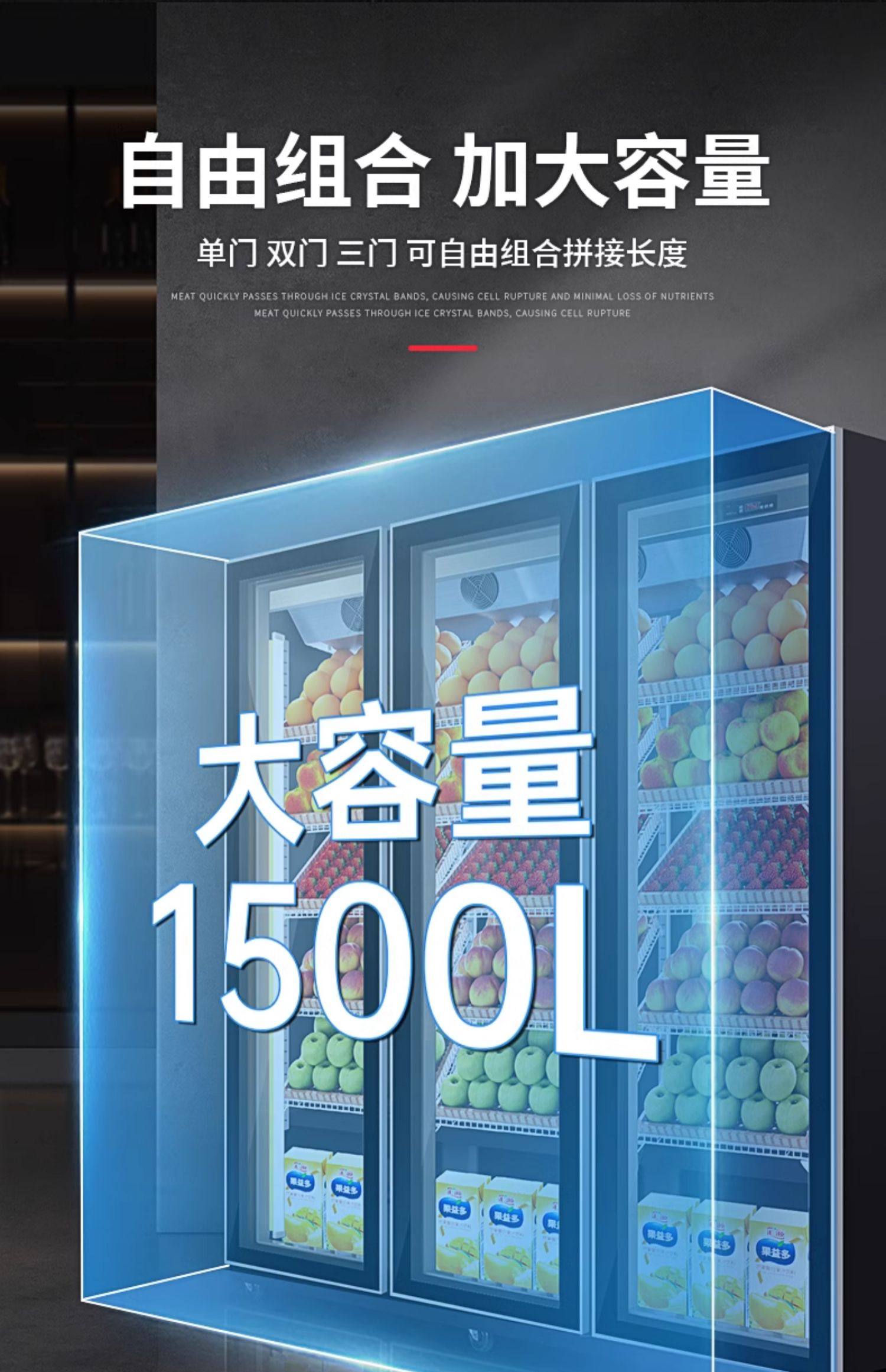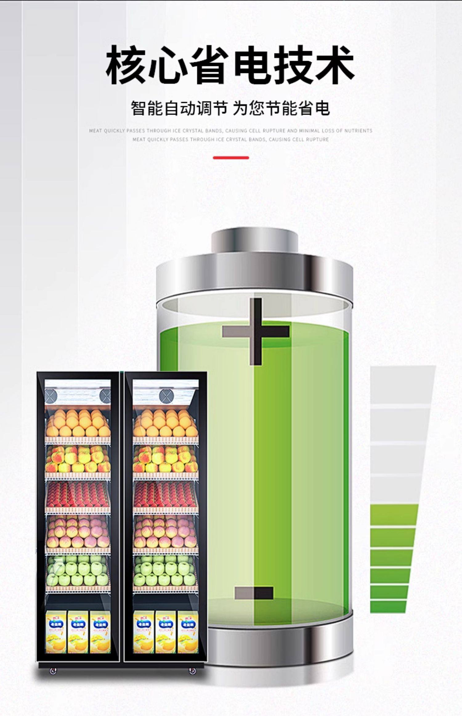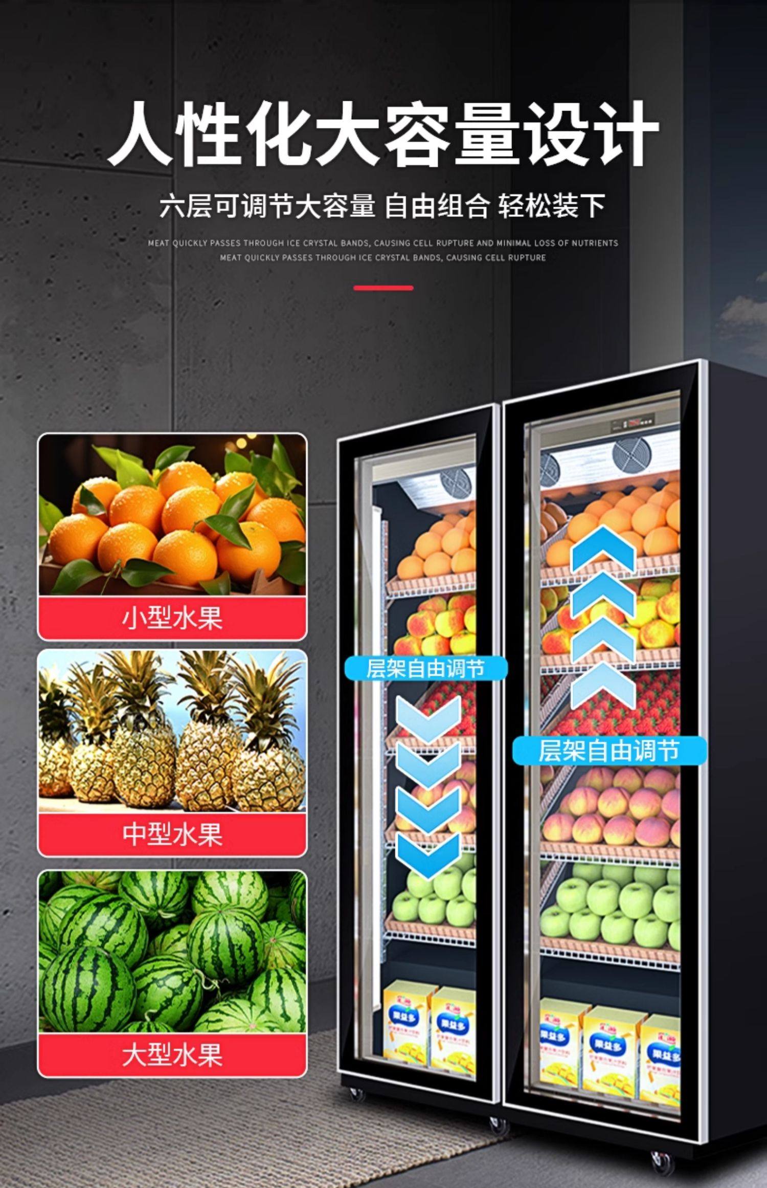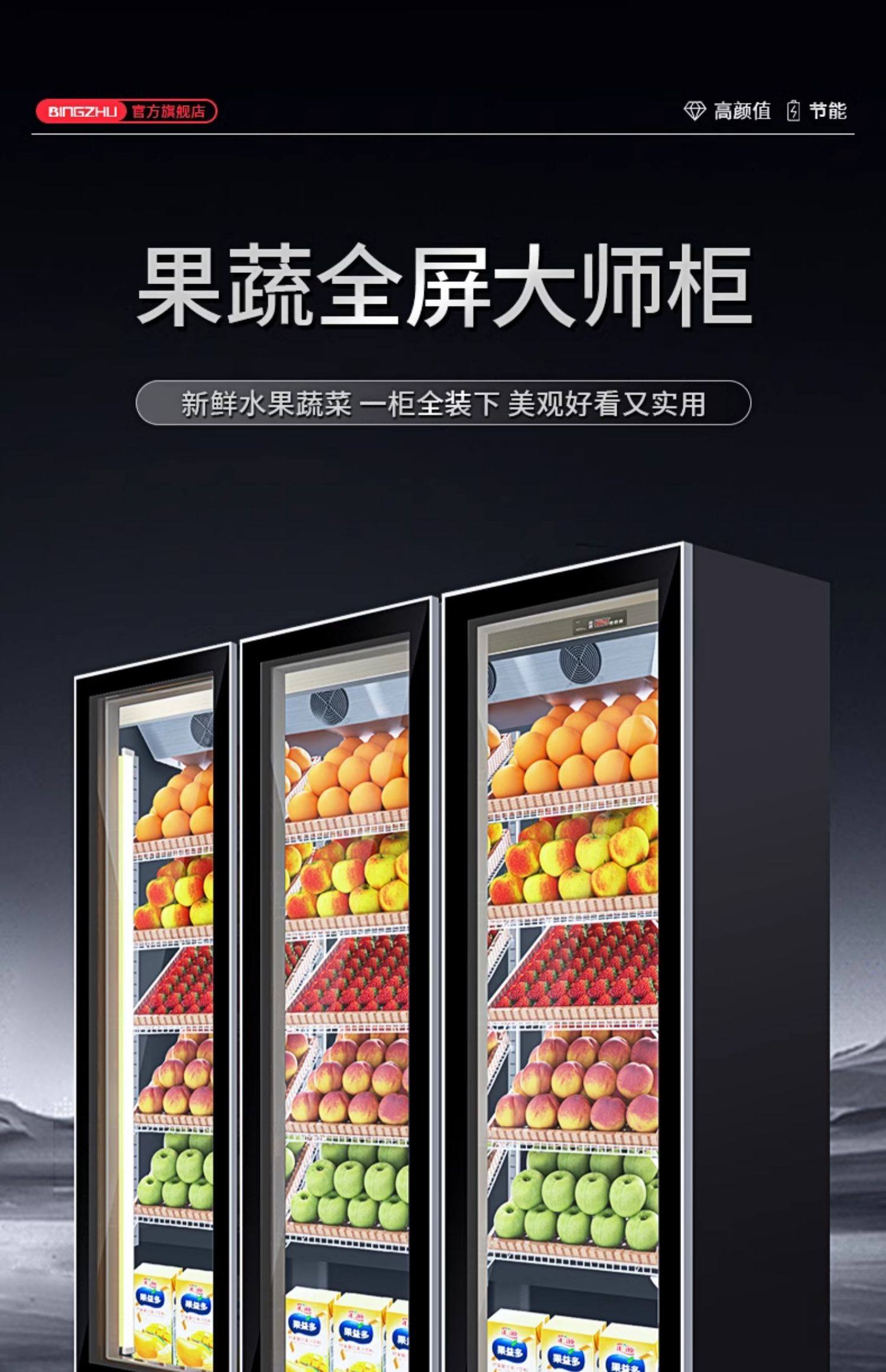 Ice Cast Fruit Preservation Cabinet Commercial Supermarket Wind Curtain Cabinet Vegetable Refrigeration Display Cabinet Air-Cooled Frost-Free Vertical Beverage Cabinet