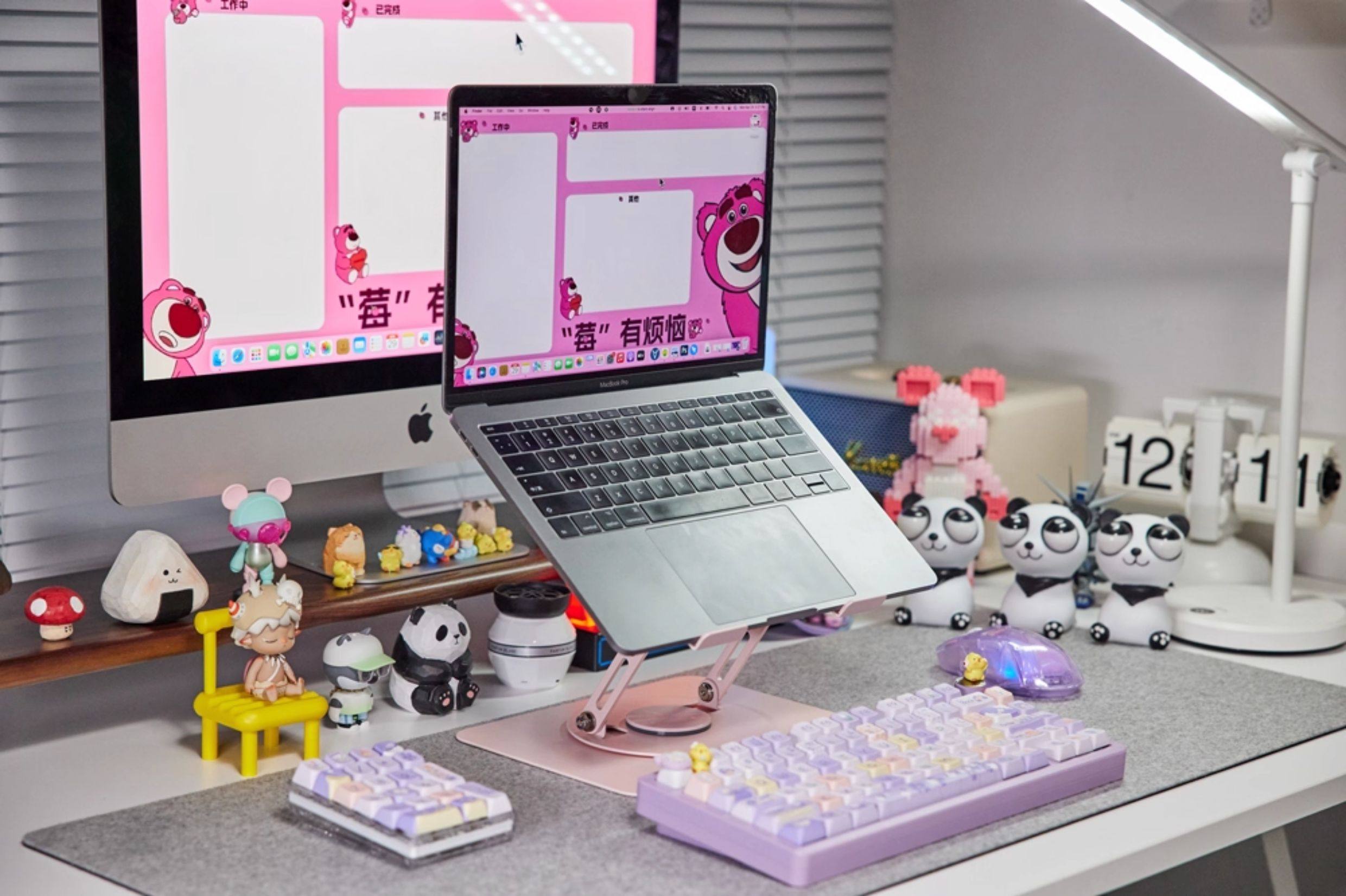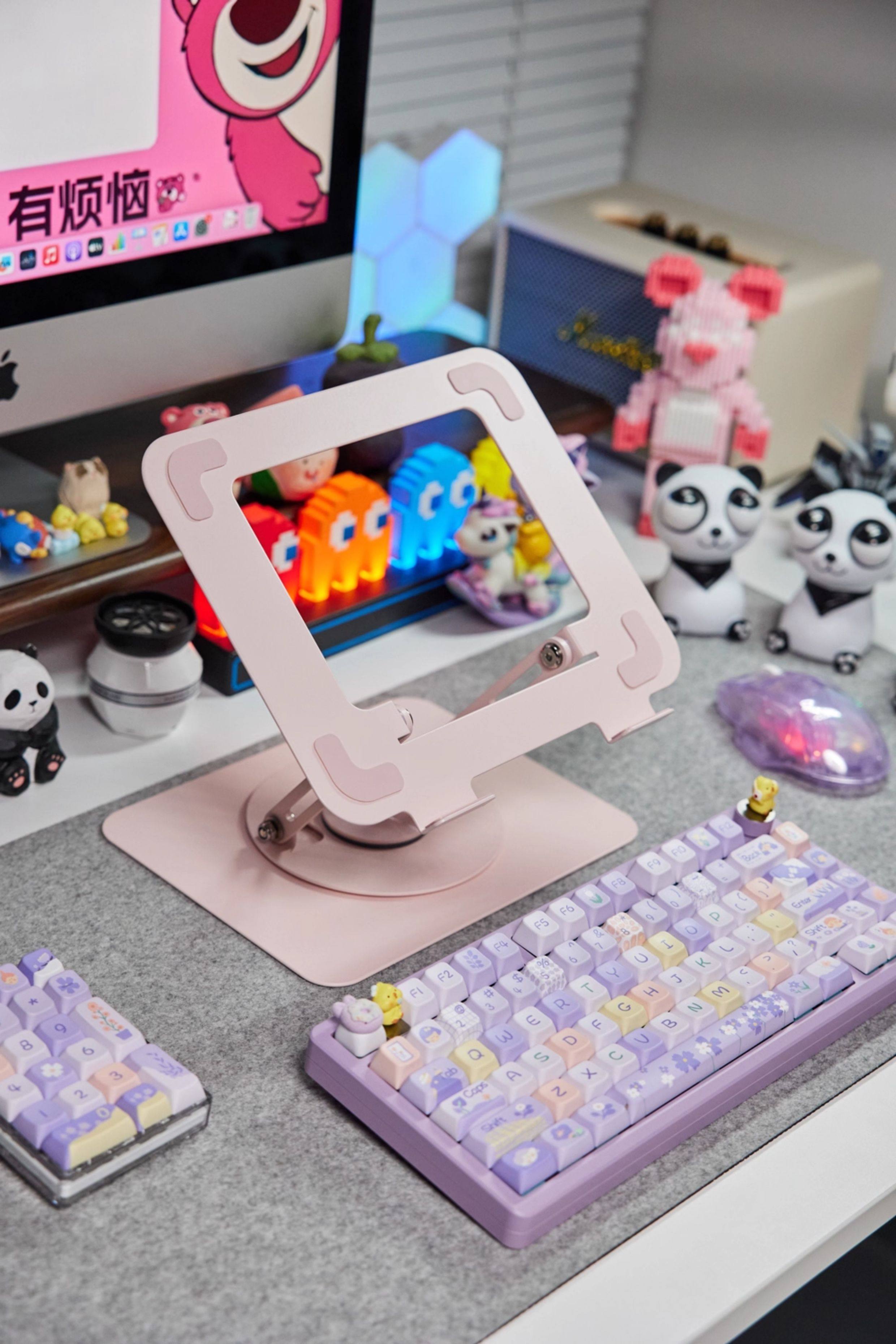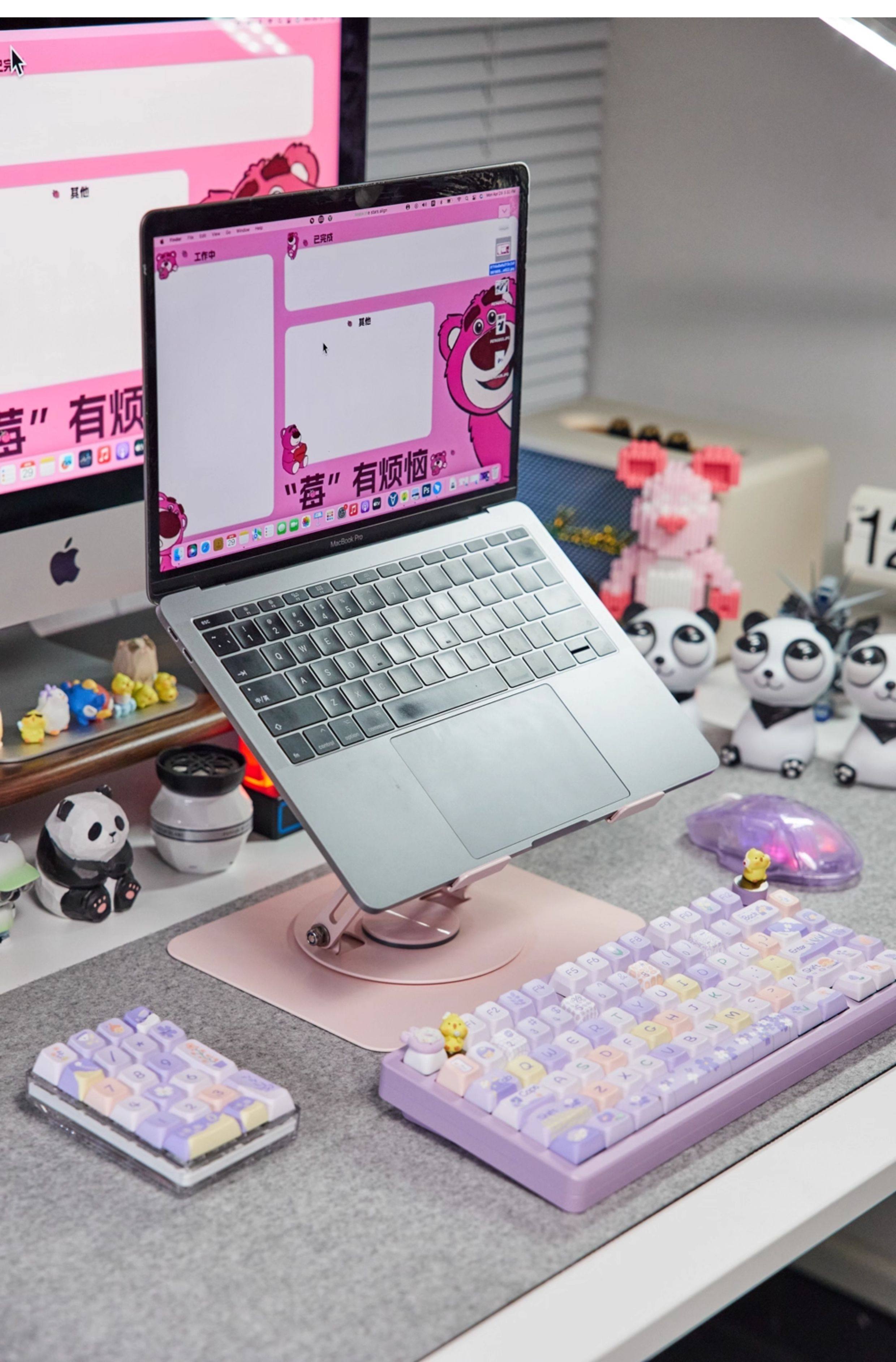 Deer-Themed Pink Notebook Rotating Stand, Fashionable Girly Pink 720 ° Rotating 7-Level Angle and Height Adjustment, Foldable and Portable Laptop Stand, Cooling Aluminum Alloy Elevated Base