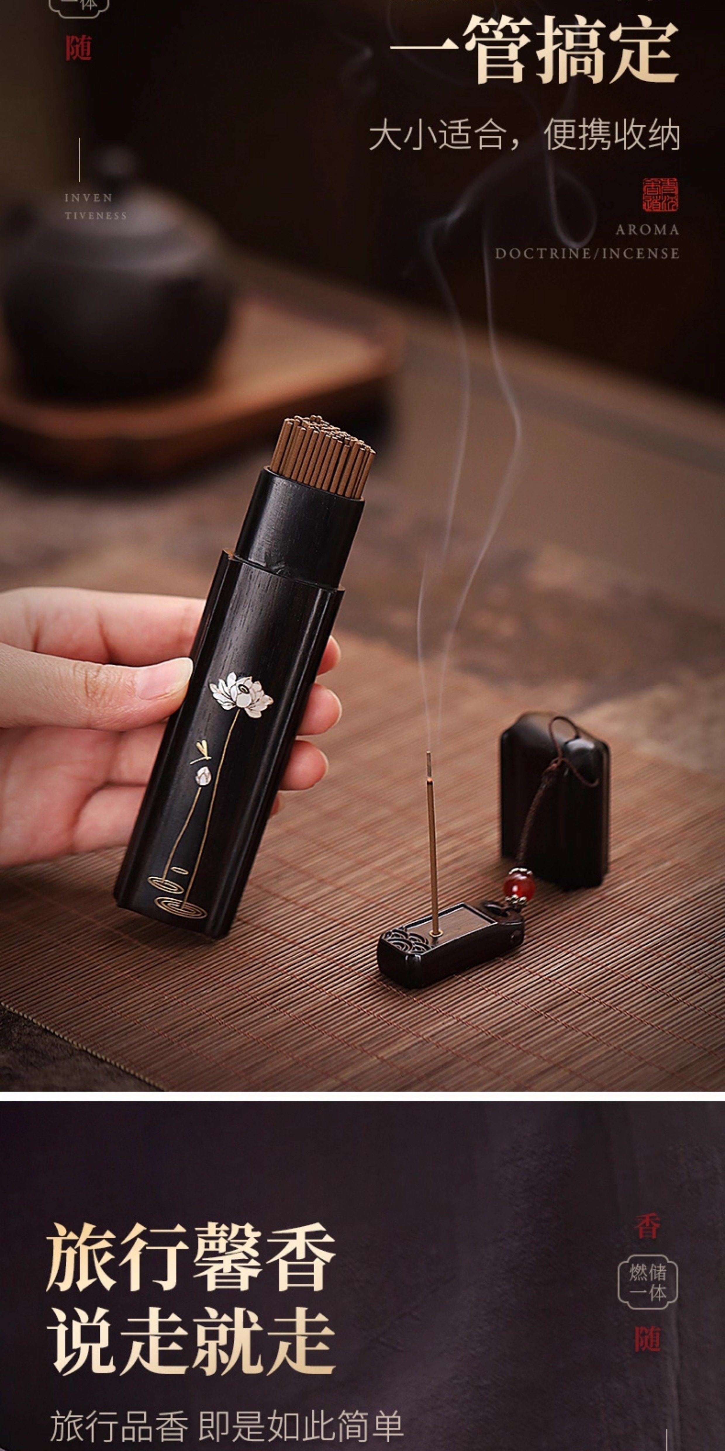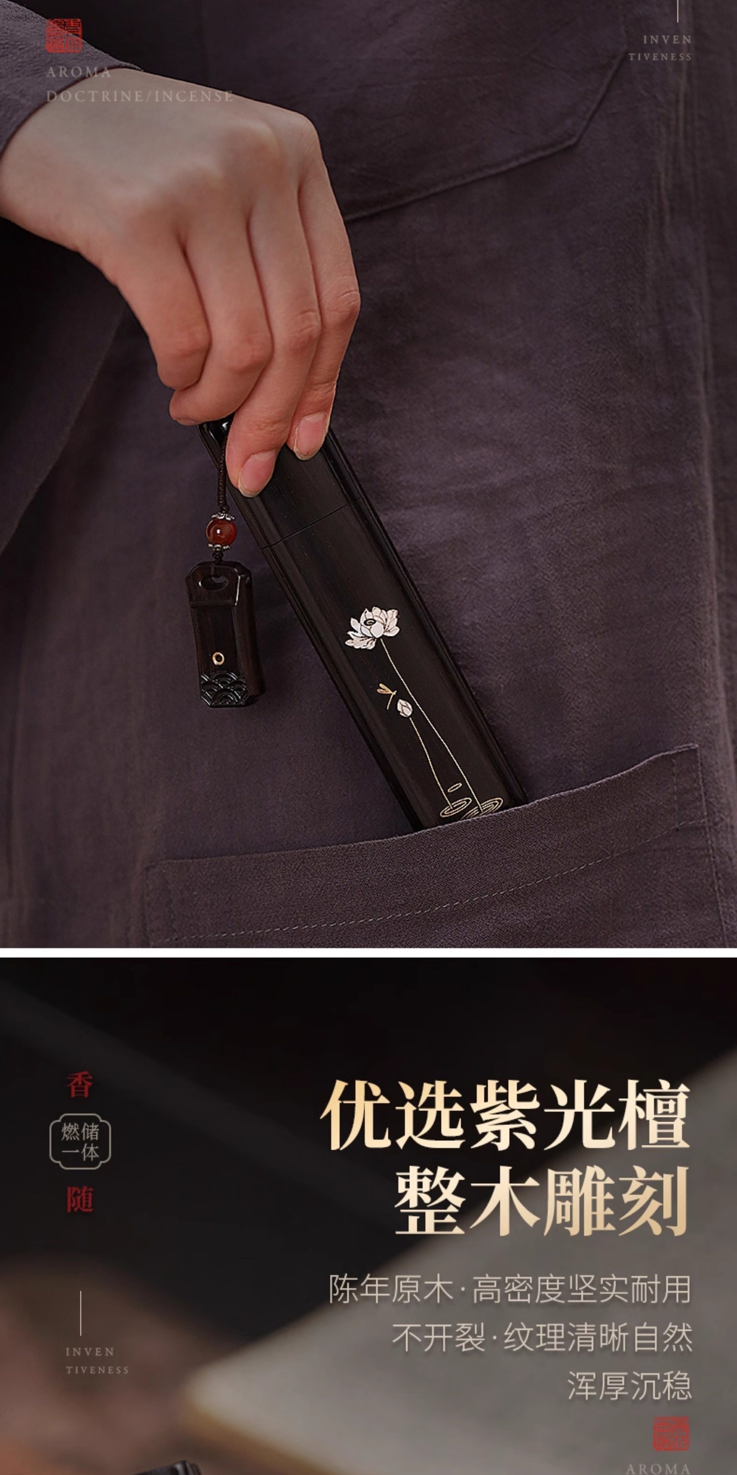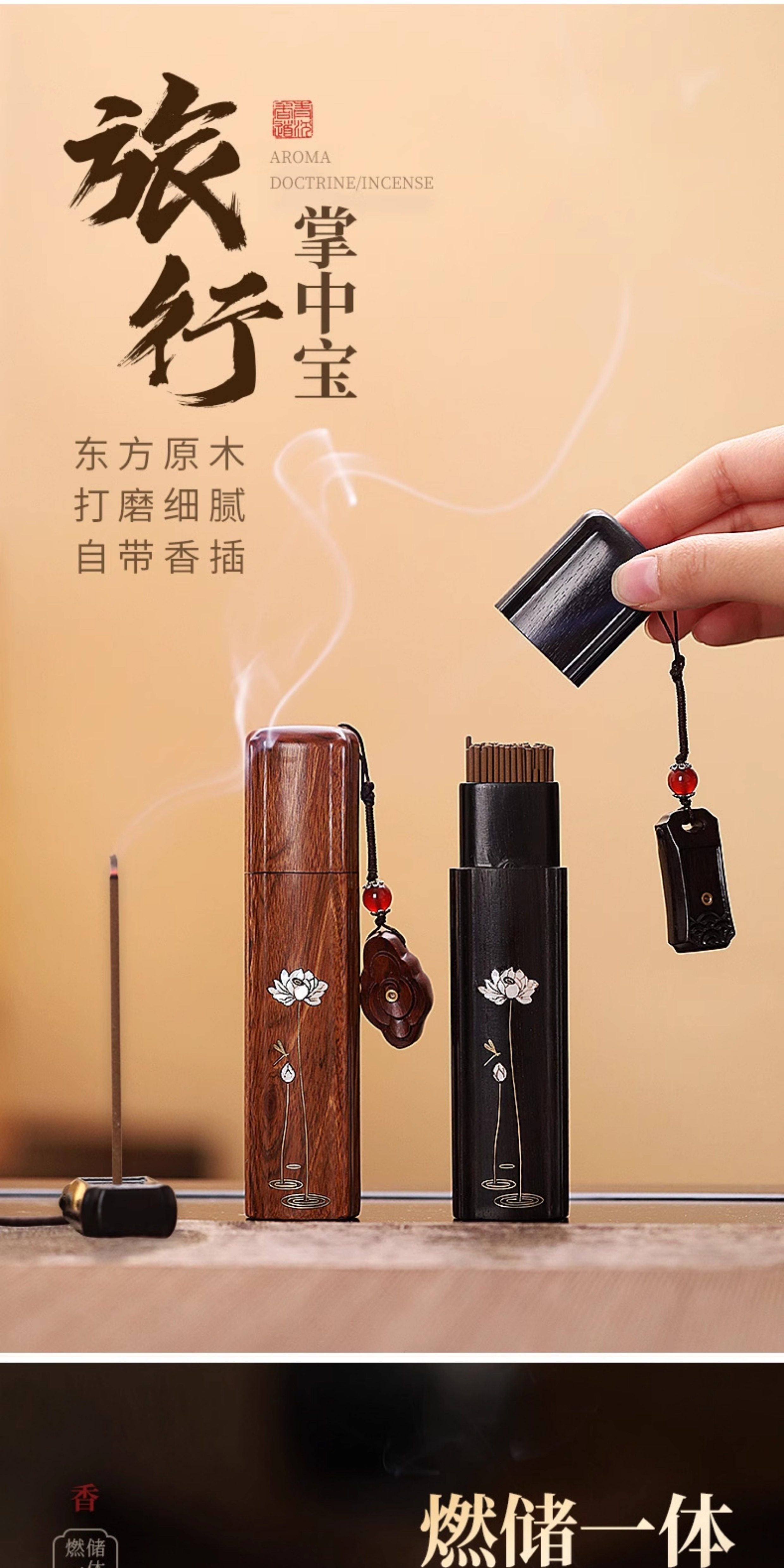 Purple Sandalwood Portable Incense Burner Travel Pocket Storage Incense Box Incense Tube Incense Holder Palm-Sized Incense Burner