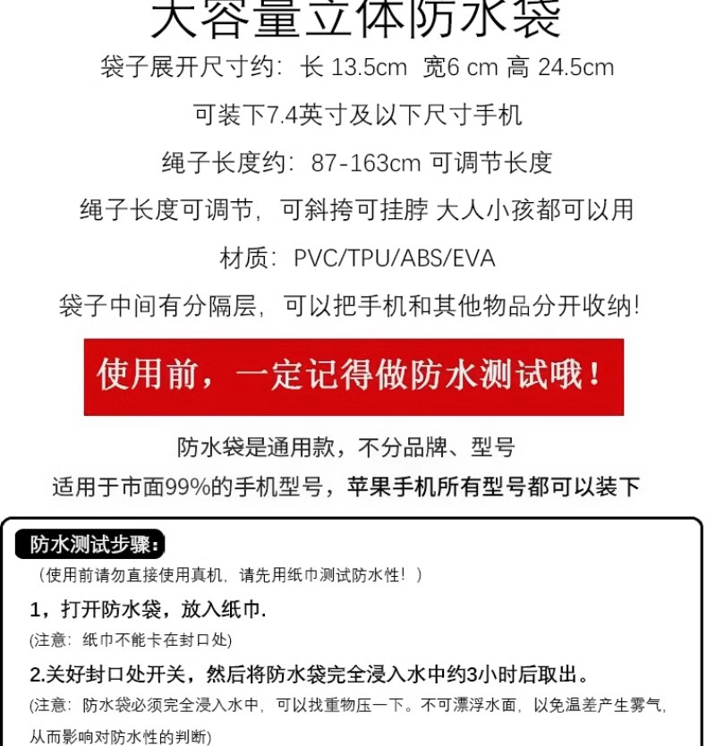 Mobile Phone Waterproof Bag, Touch Screen Photo-Taking Sealed Bag, Special Underwater Equipment for Swimming, Outdoor Rafting, and Seaside Activities