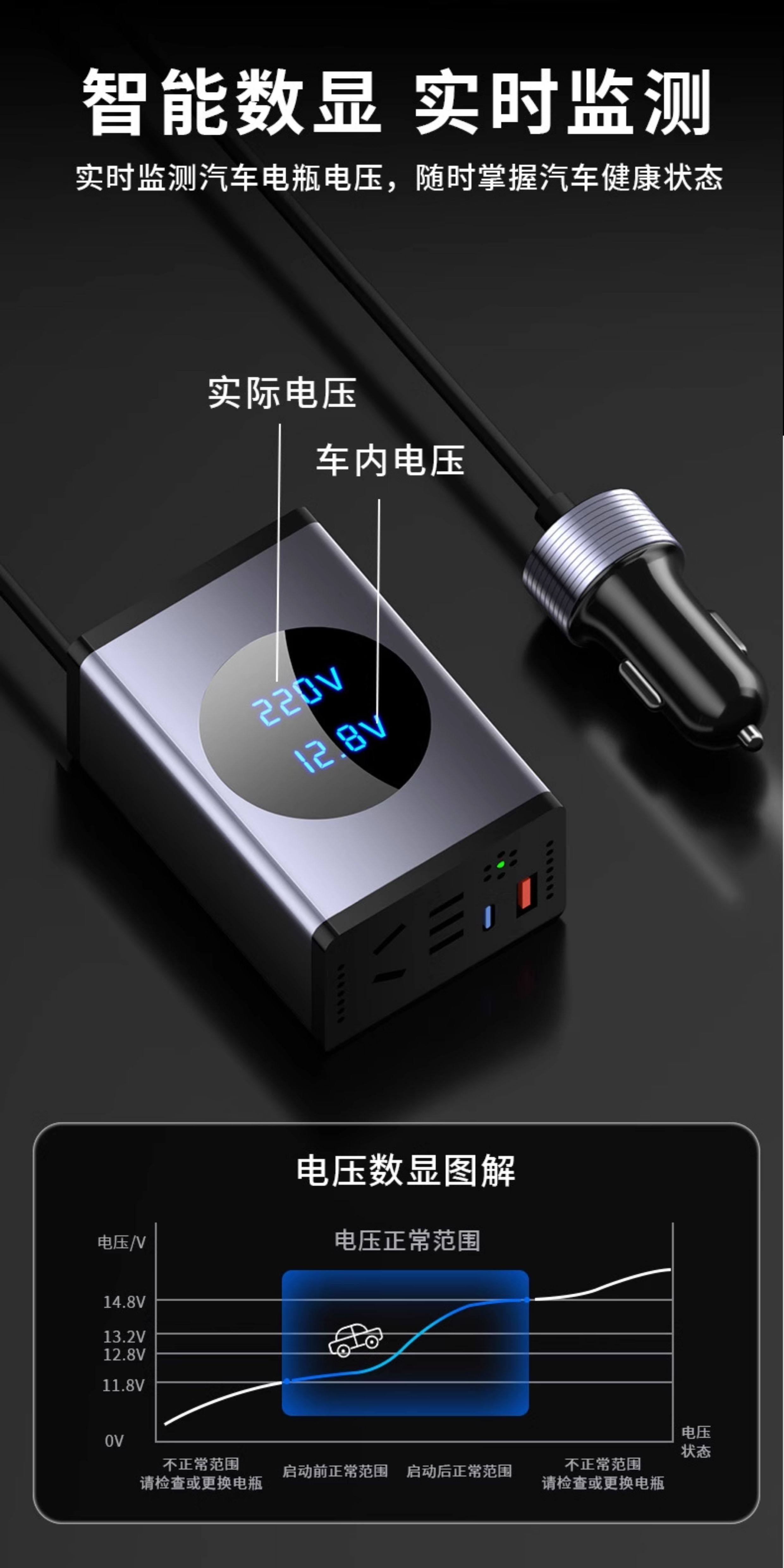 Car Inverter 12V24V to 220V High-Power Charger Car Truck Cigarette Lighter Conversion Plug Fast Charging
