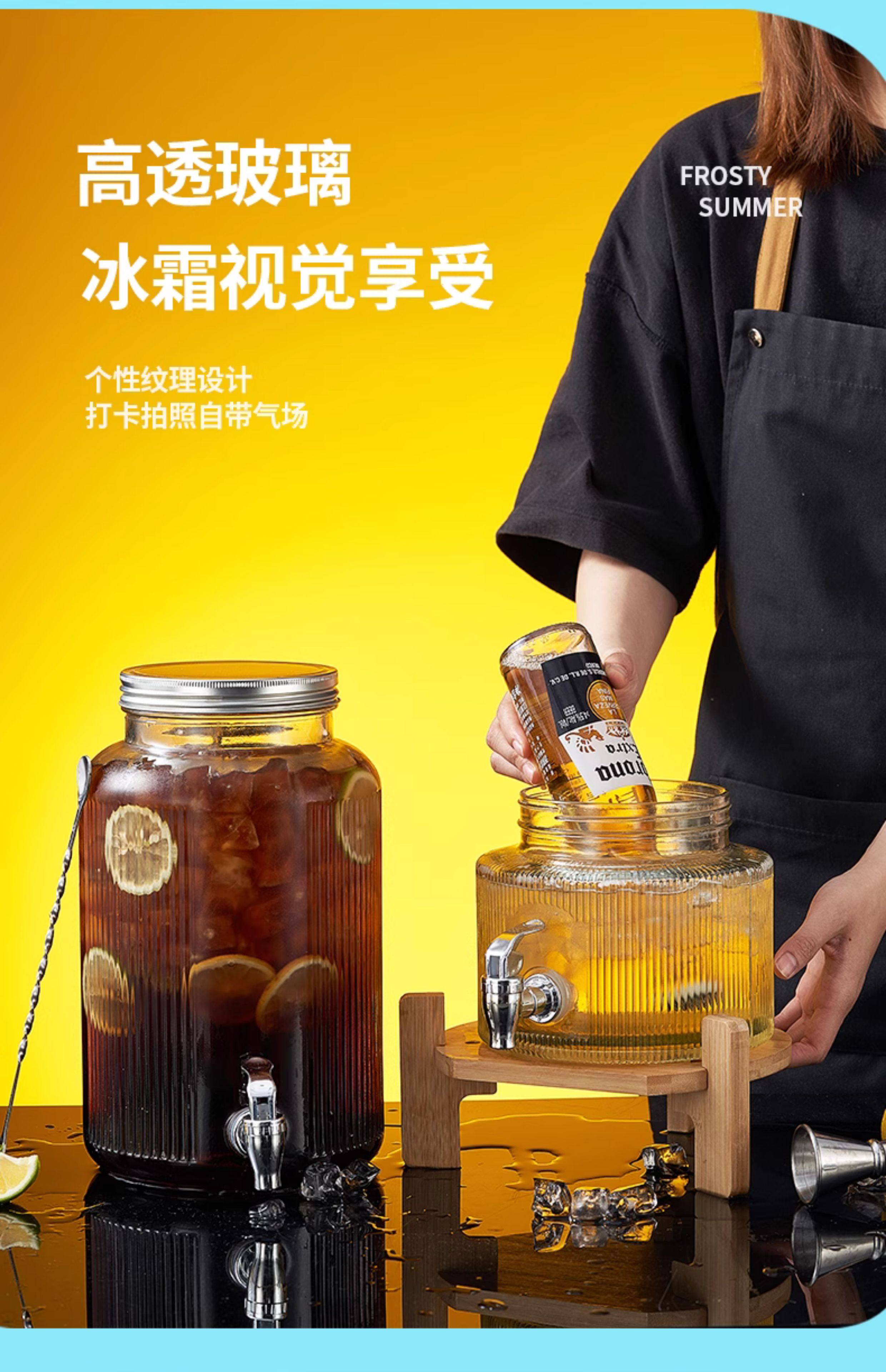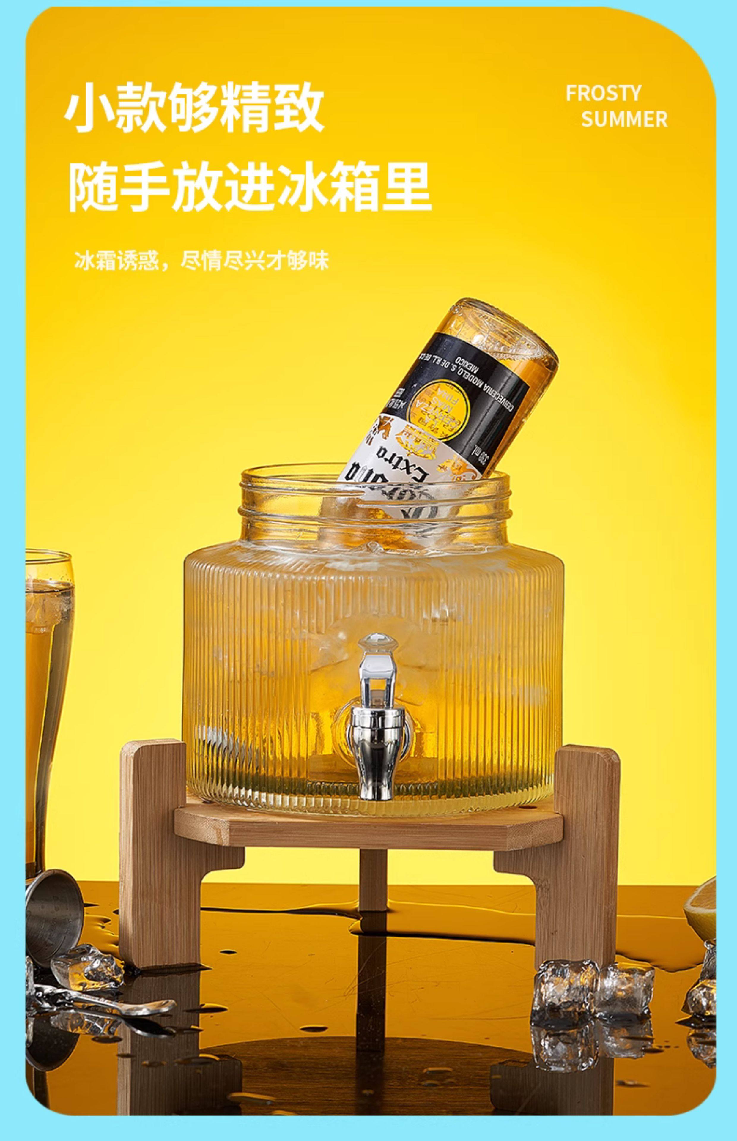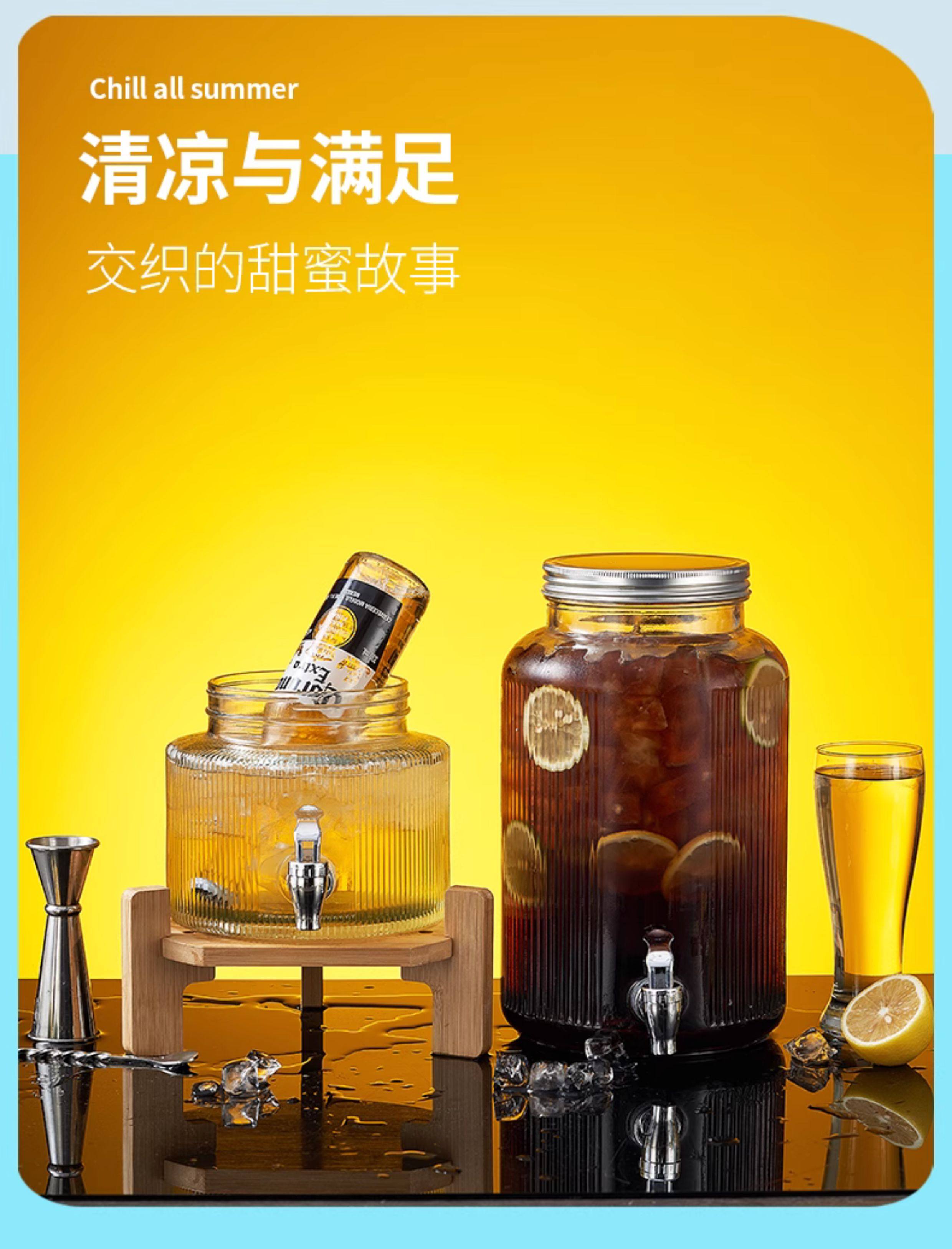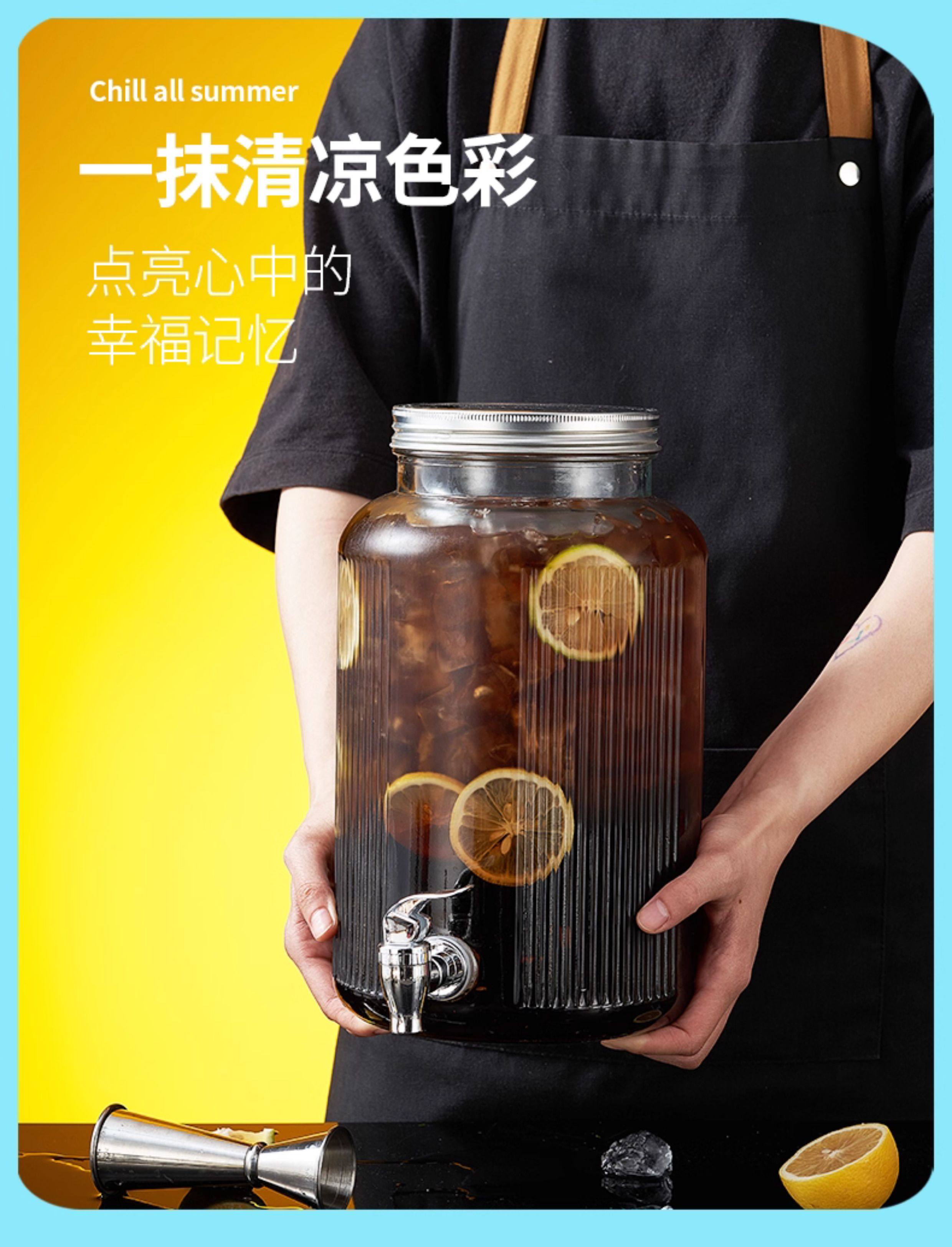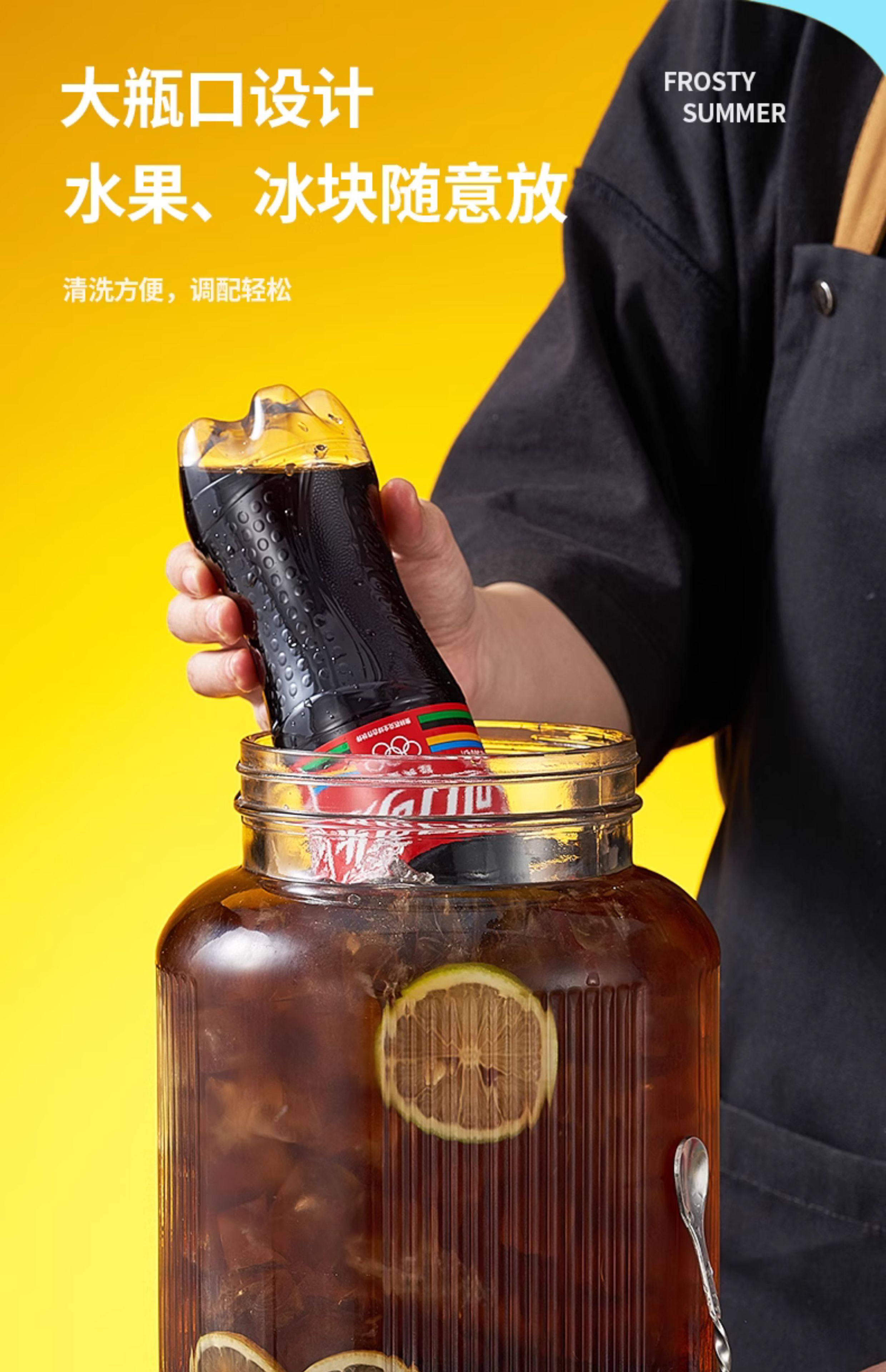 Coke Bucket Glass Cold Water Jug Household Container with Spigot Refrigerator Beverage Bucket Beer Bucket Juice Bucket Fruit Tea Bucket