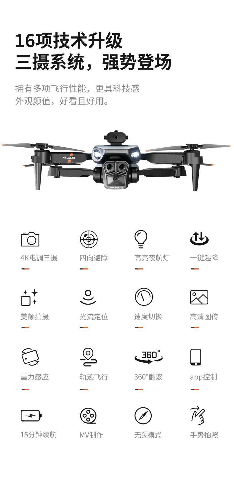 K6Max Three-Lens High-Definition Aerial Photography Drone Obstacle Avoidance Quadcopter Remote Control Aircraft Drone