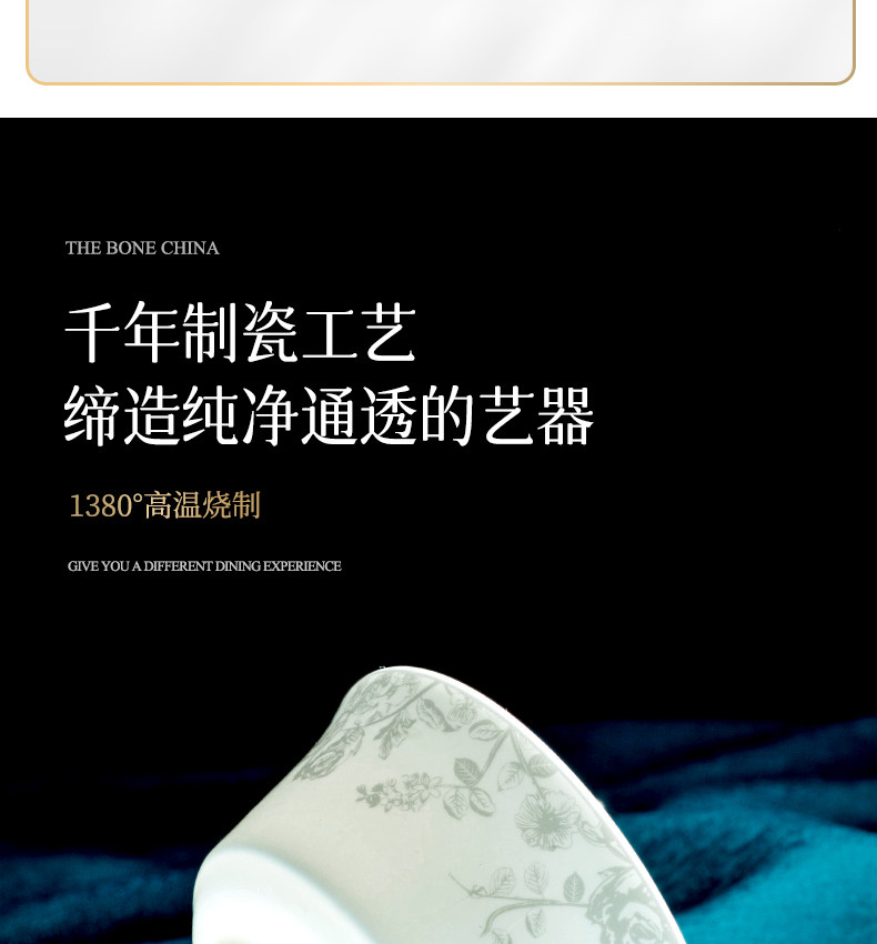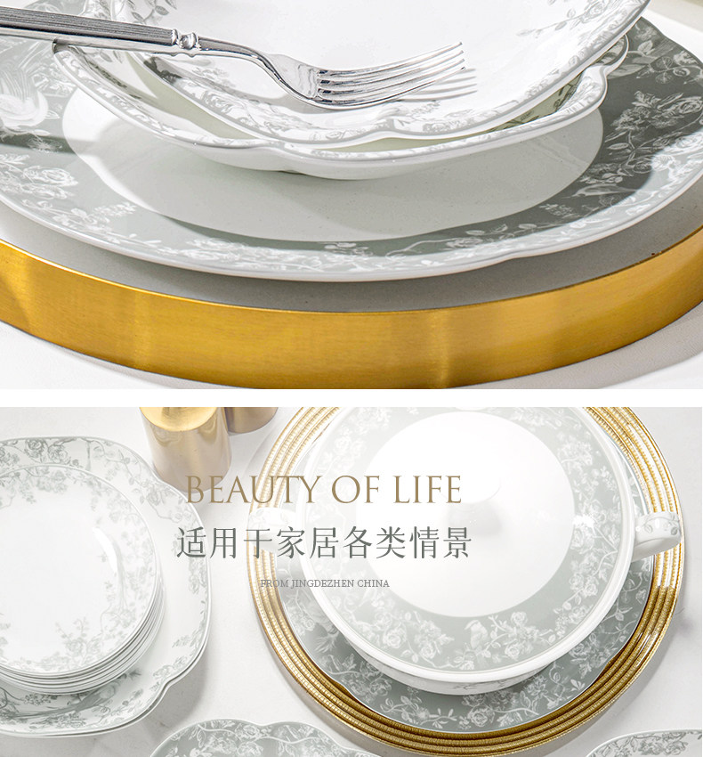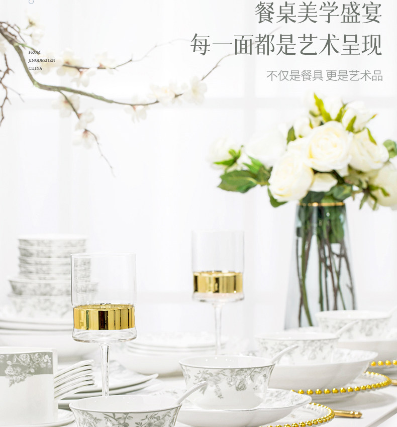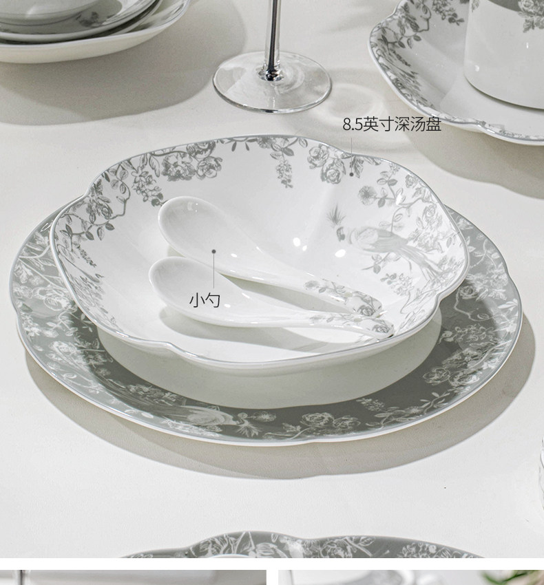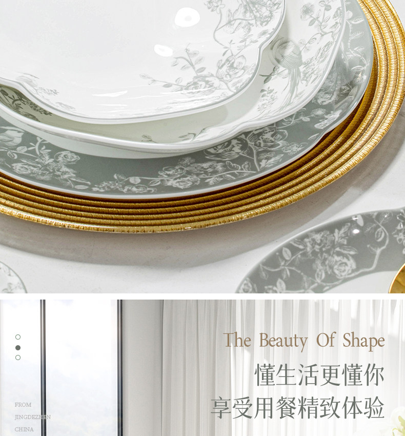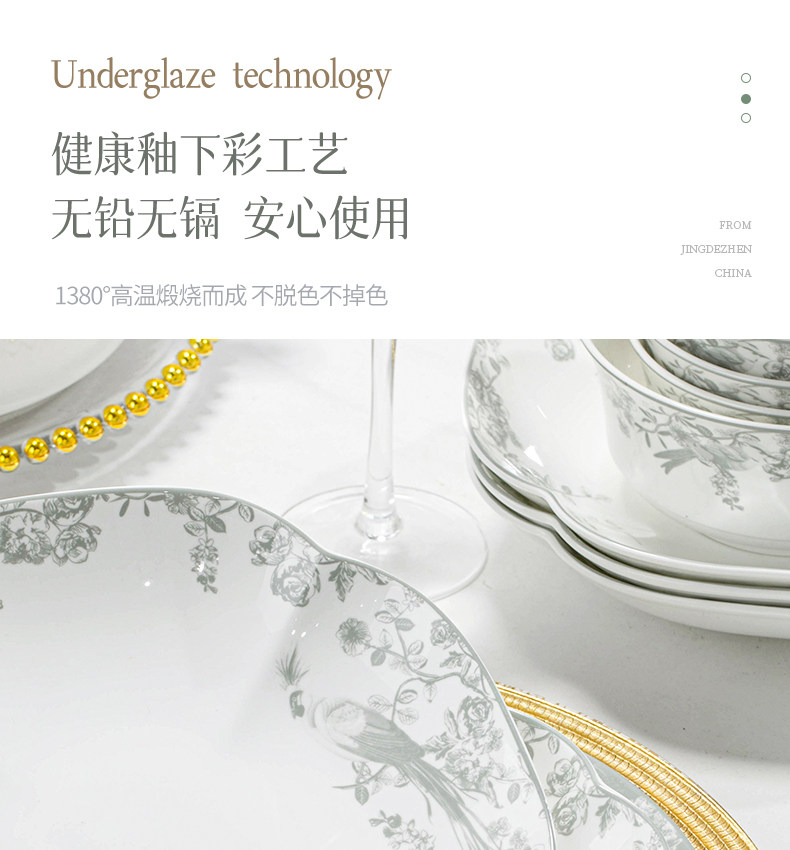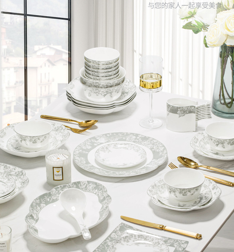 Underglaze Color 2026 High-End Luxury Simple Bowl and Plate Set, High-Value Jingdezhen Bone China Tableware for Newlyweds and Housewarming