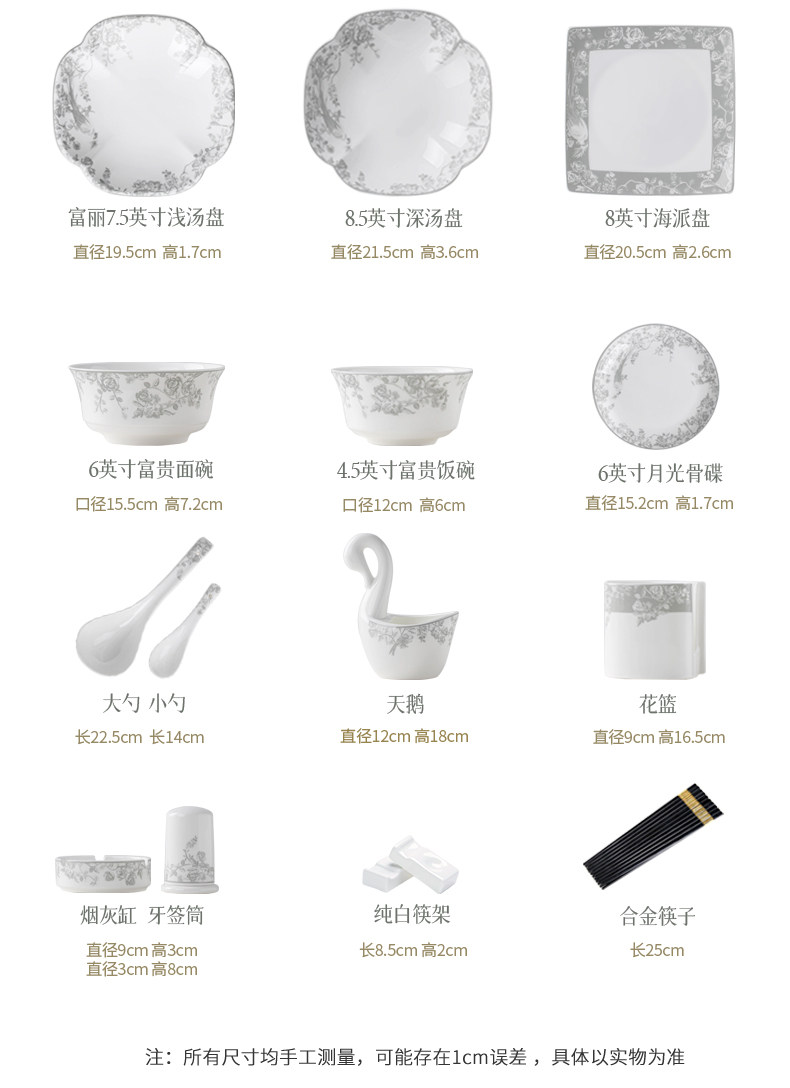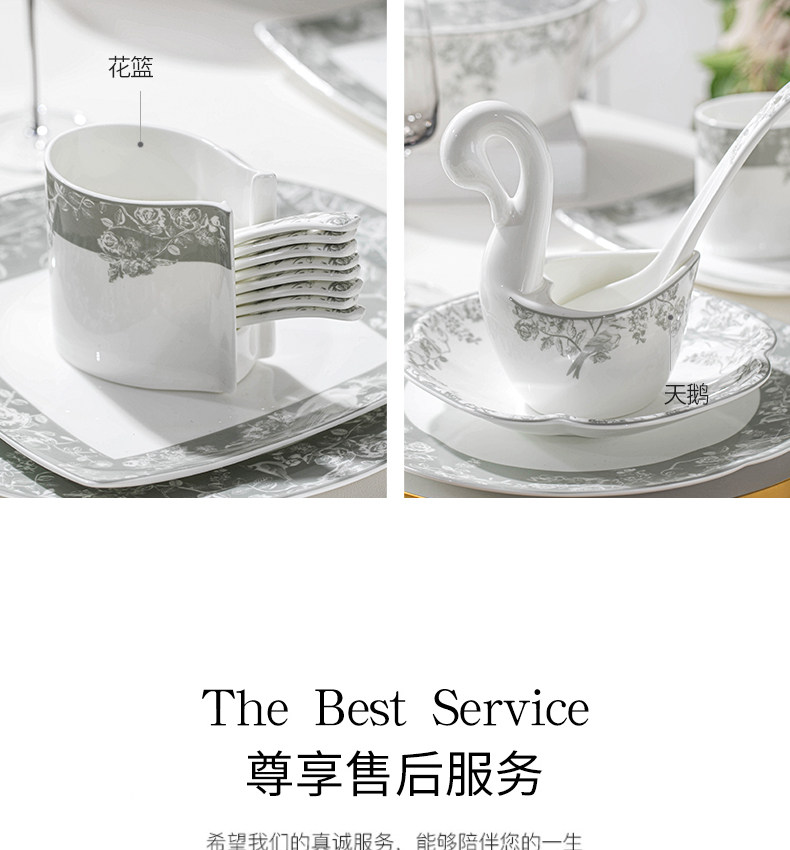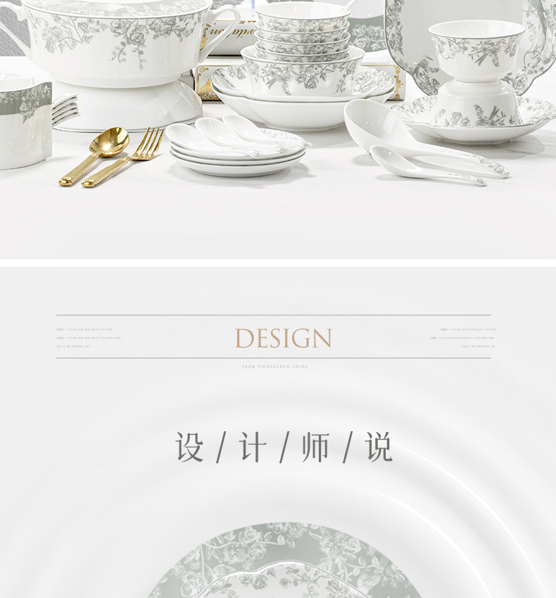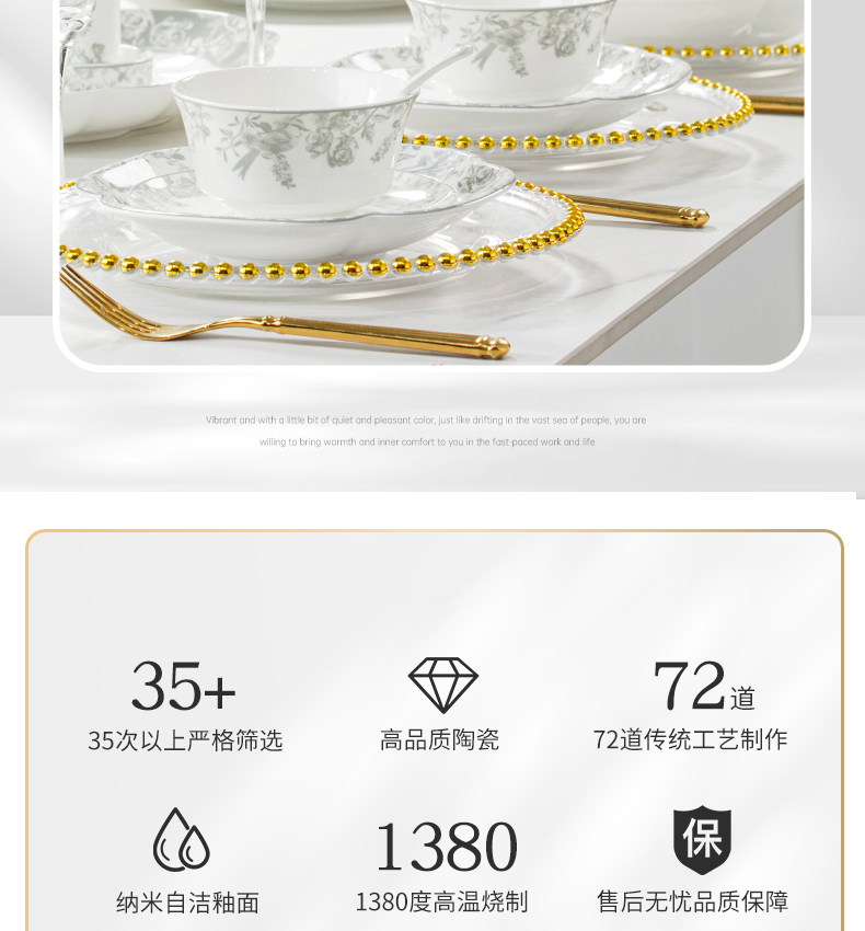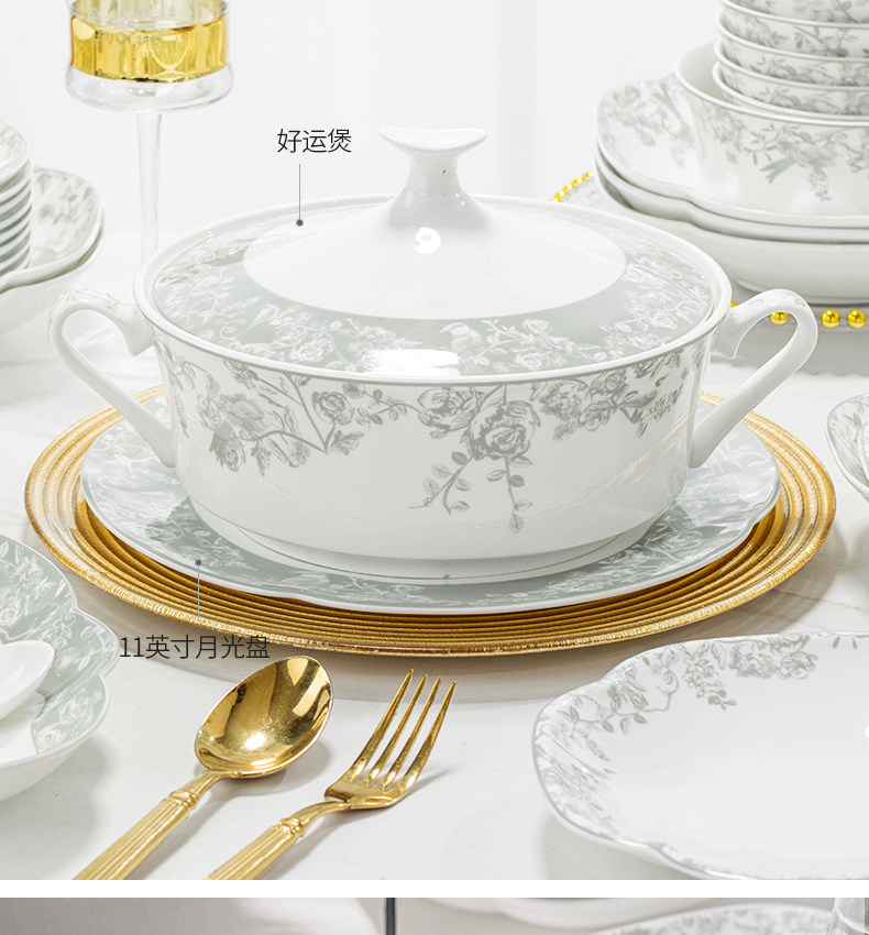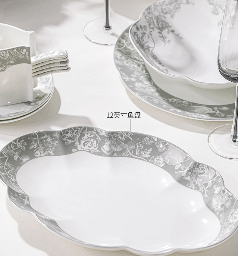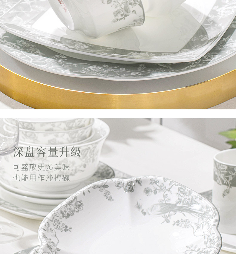 Underglaze Color 2026 High-End Luxury Simple Bowl and Plate Set, High-Value Jingdezhen Bone China Tableware for Newlyweds and Housewarming