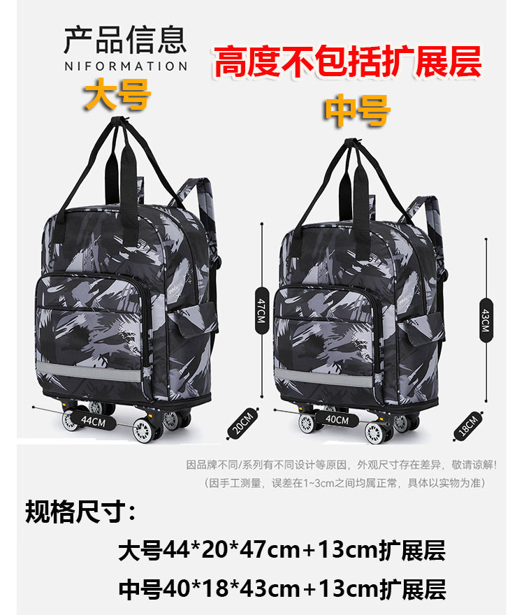 Travel Bag for Men, Small Size, Three Days and Two Nights Trip, Soft Bag with Wheels for Women, Foldable, Multi-Functional, Large Capacity, with Wheels