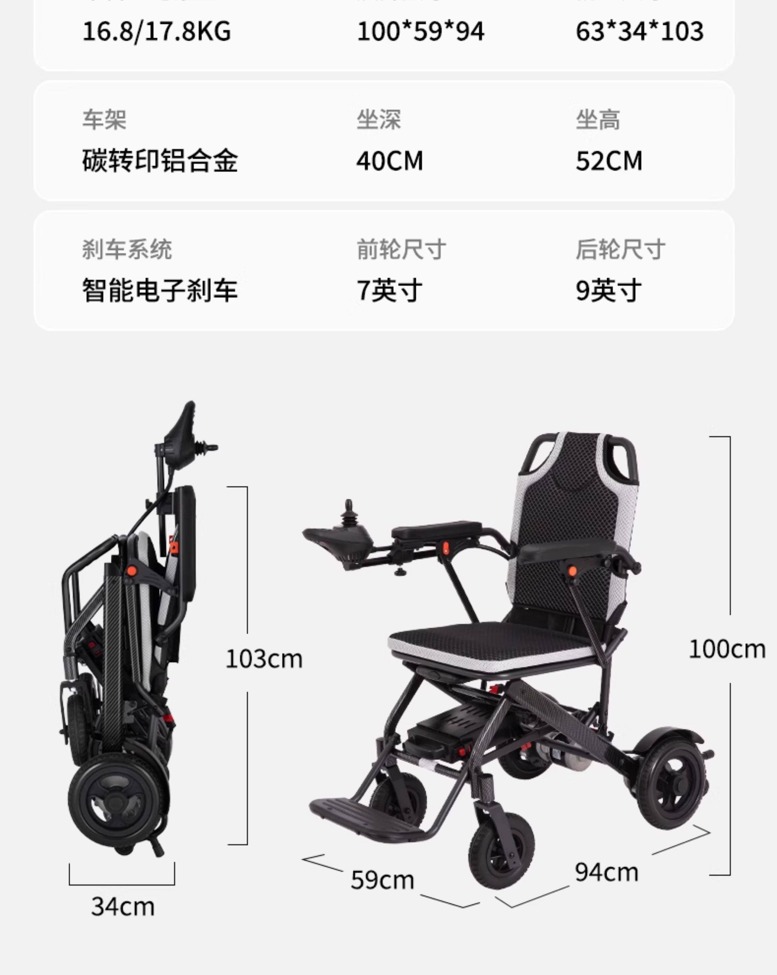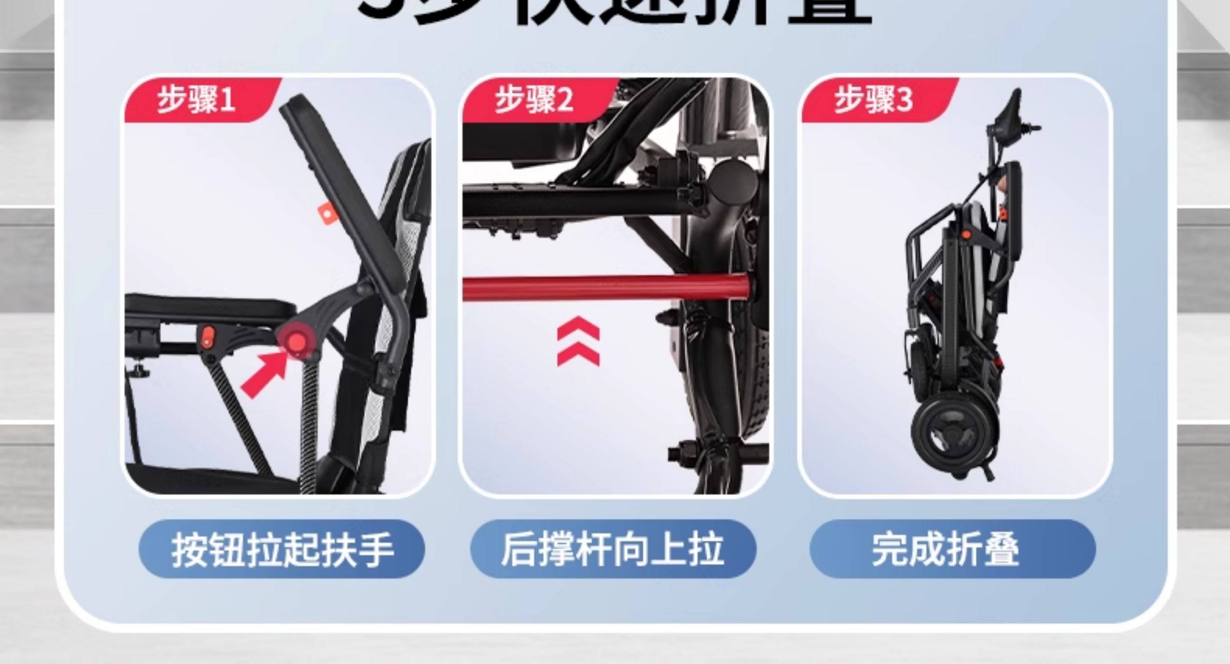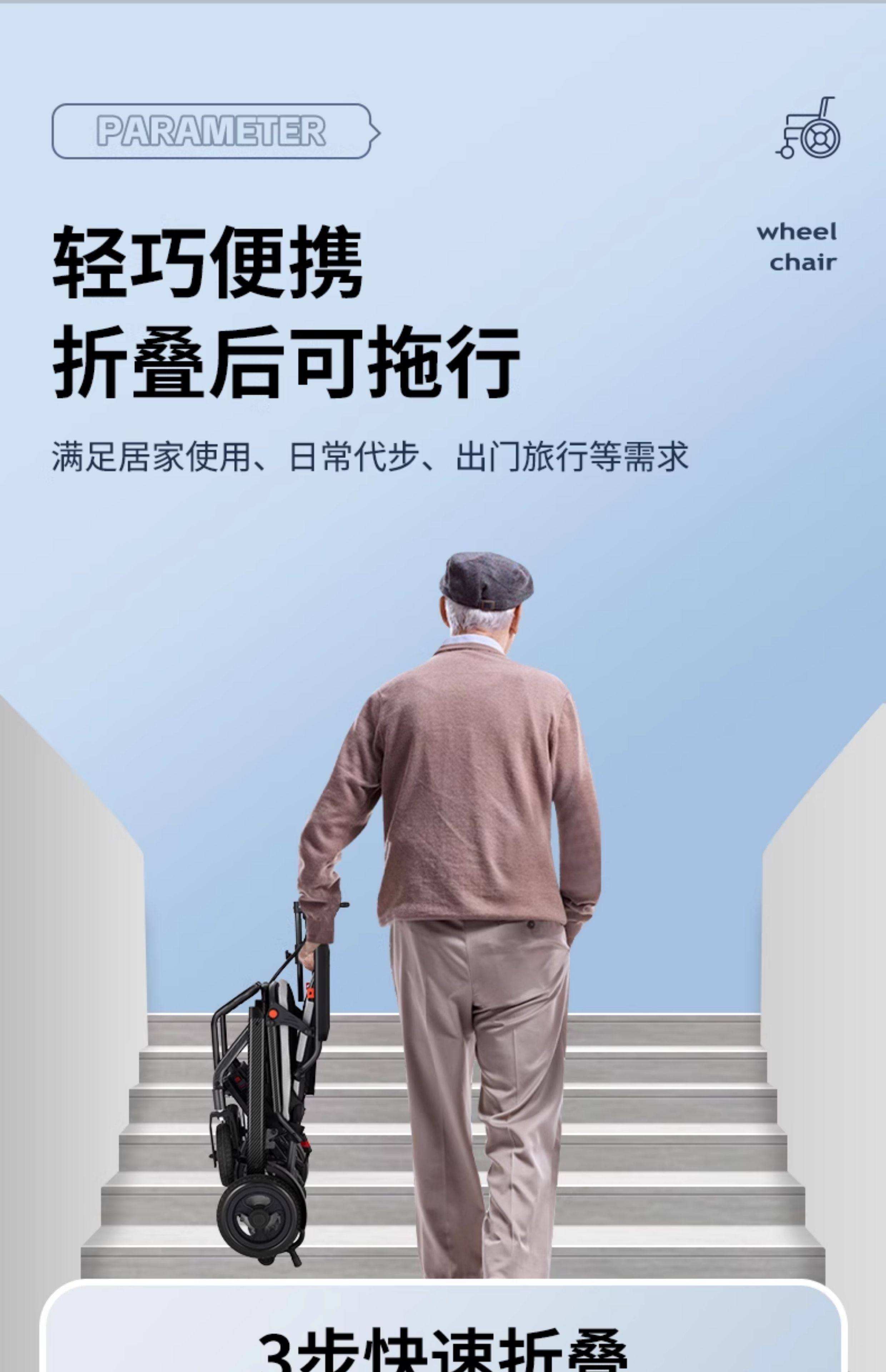 Gangfu Wheelchair Is a Foldable, Lightweight, Intelligent, Fully Automatic Electric Wheelchair for the Elderly, a Four-Wheel Mobility Scooter for the Disabled