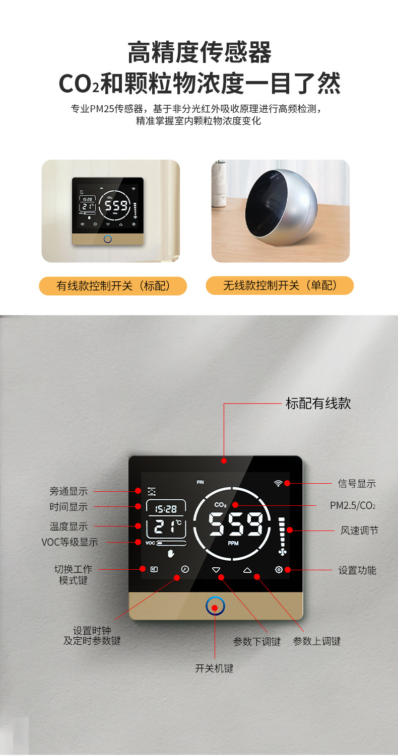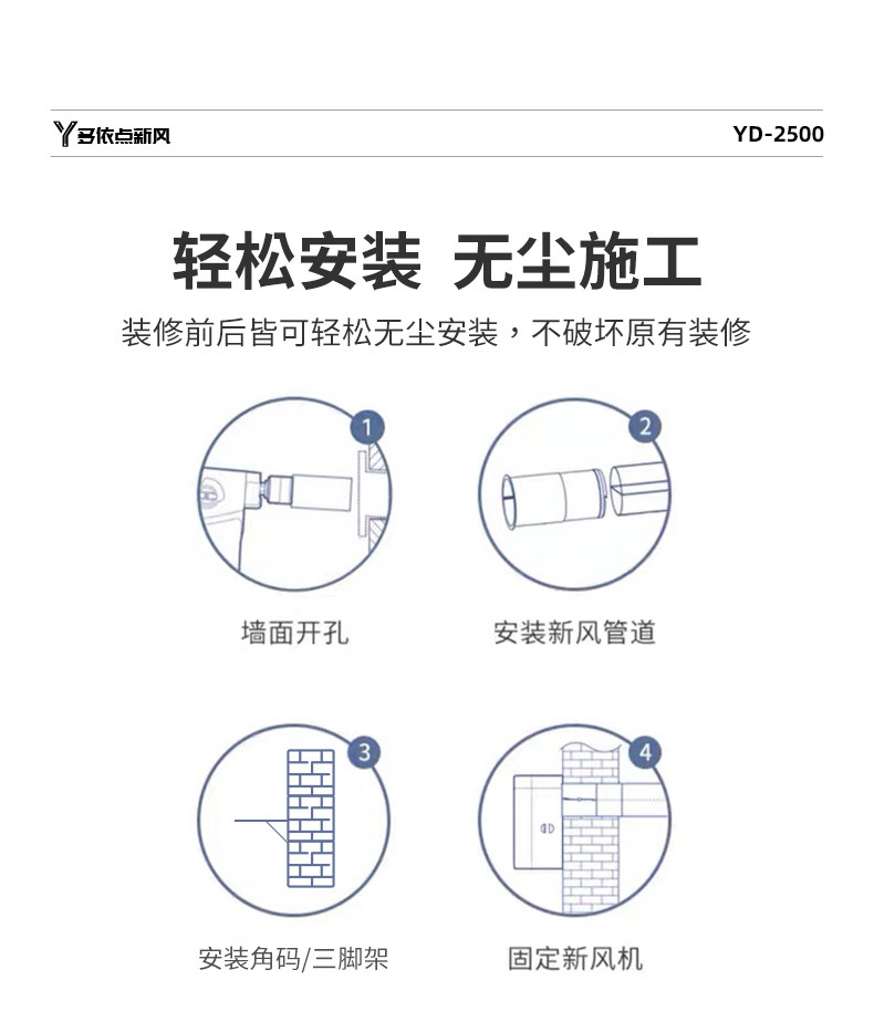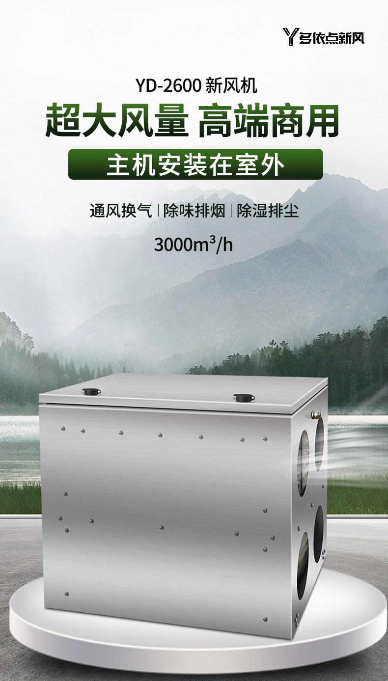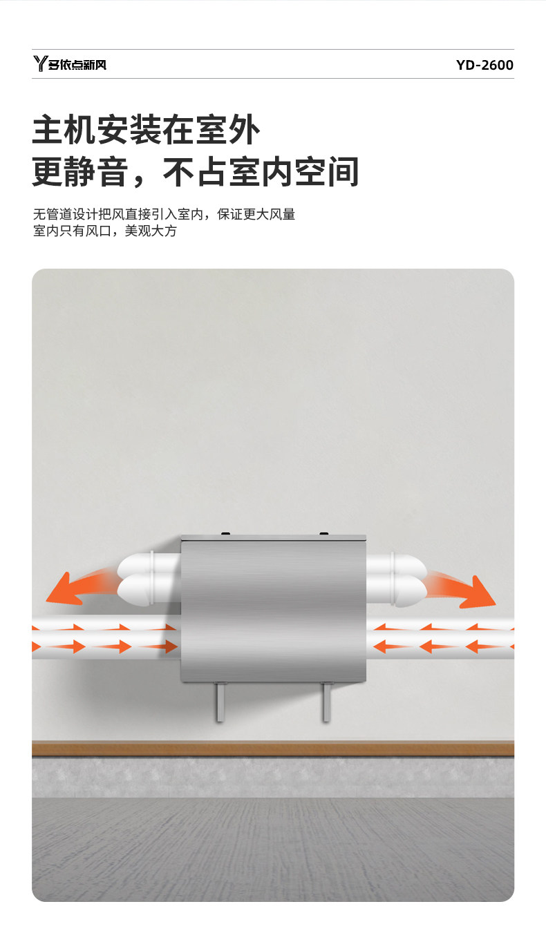 Commercial Fresh Air Fan 2600 Large Air Volume Silent Outdoor Fresh Air System Household Wall-Mounted Fresh Air Exhaust Fan Negative Pressure
