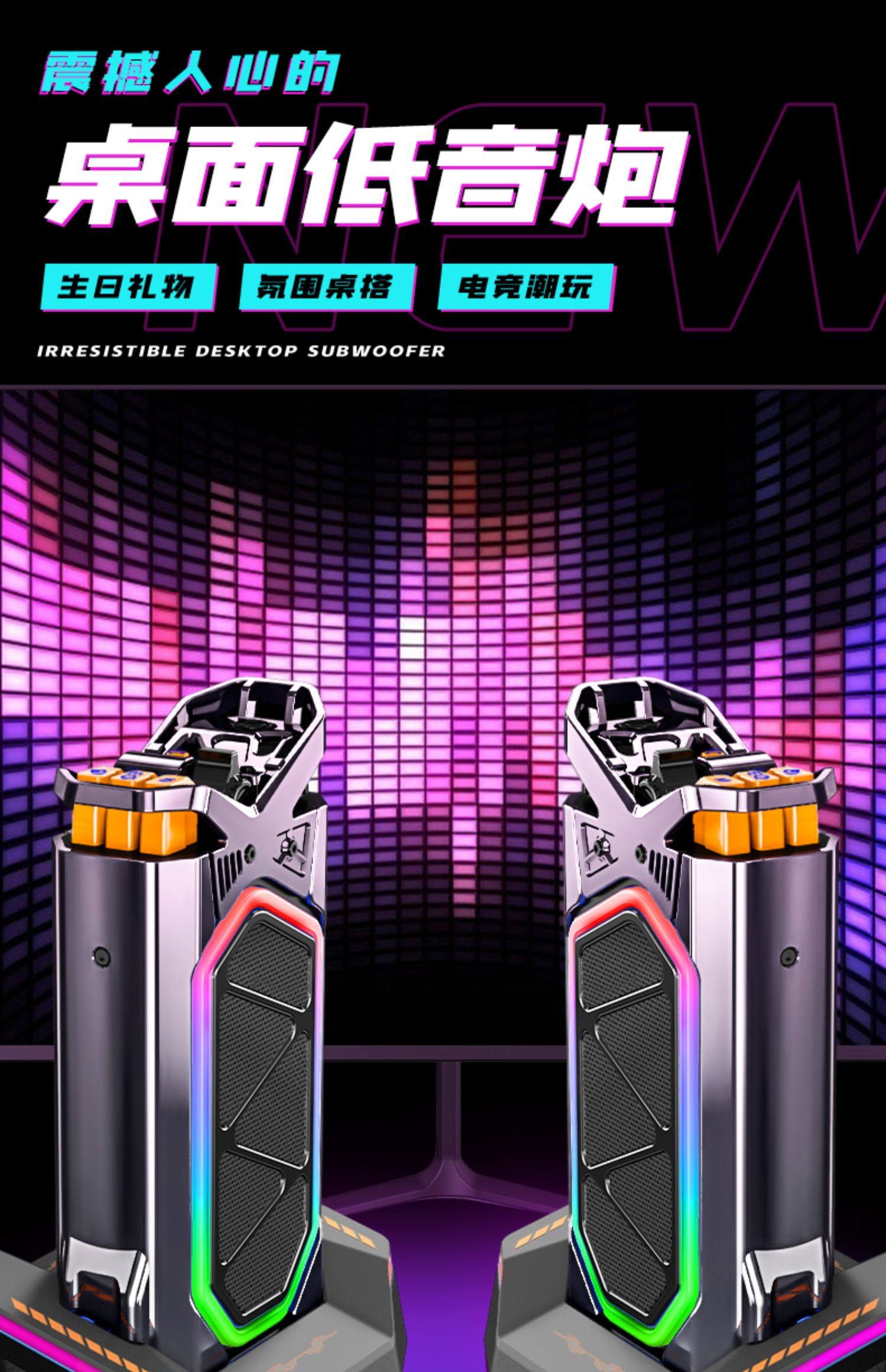 Newman Bluetooth Speaker High-Quality Wireless Desktop Speaker with Cyberpunk Style Subwoofer Outdoor Portable