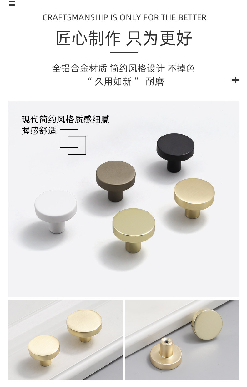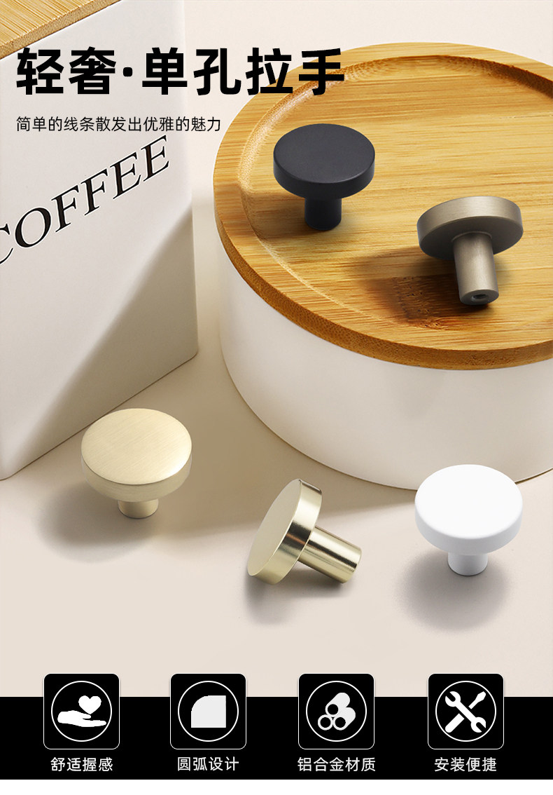 Small Drawer Handle, Light Luxury Wardrobe Door Single-Hole Handle, Gold Round Zinc Alloy Tatami Shoe Cabinet Handle