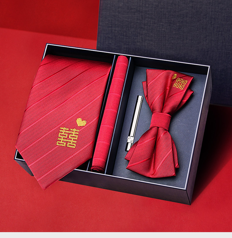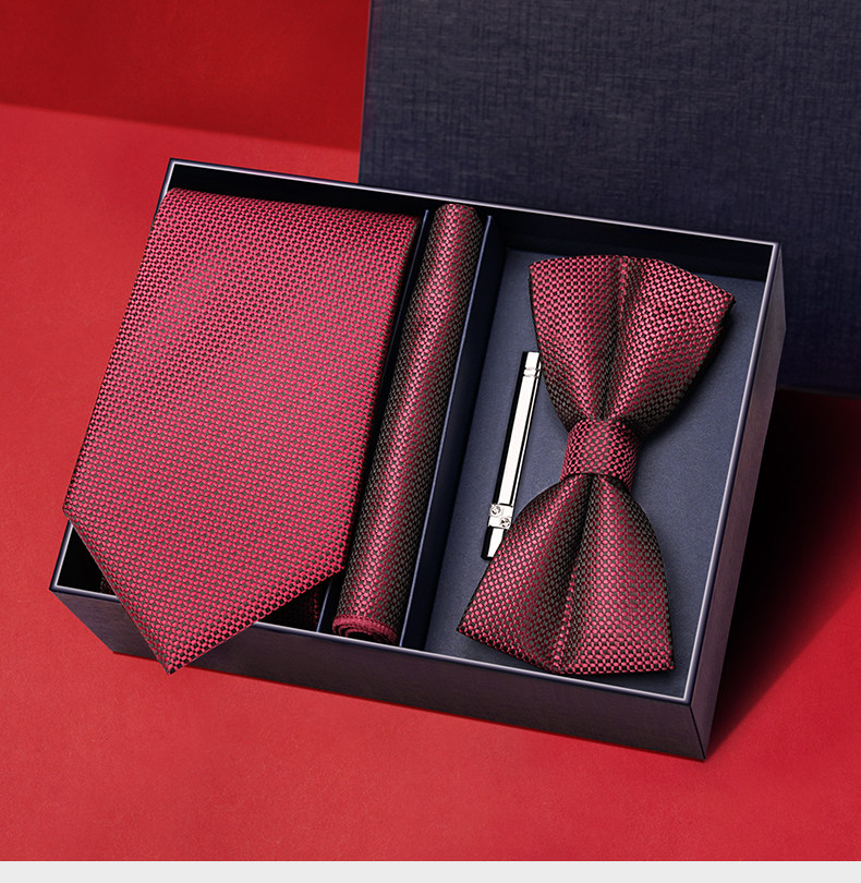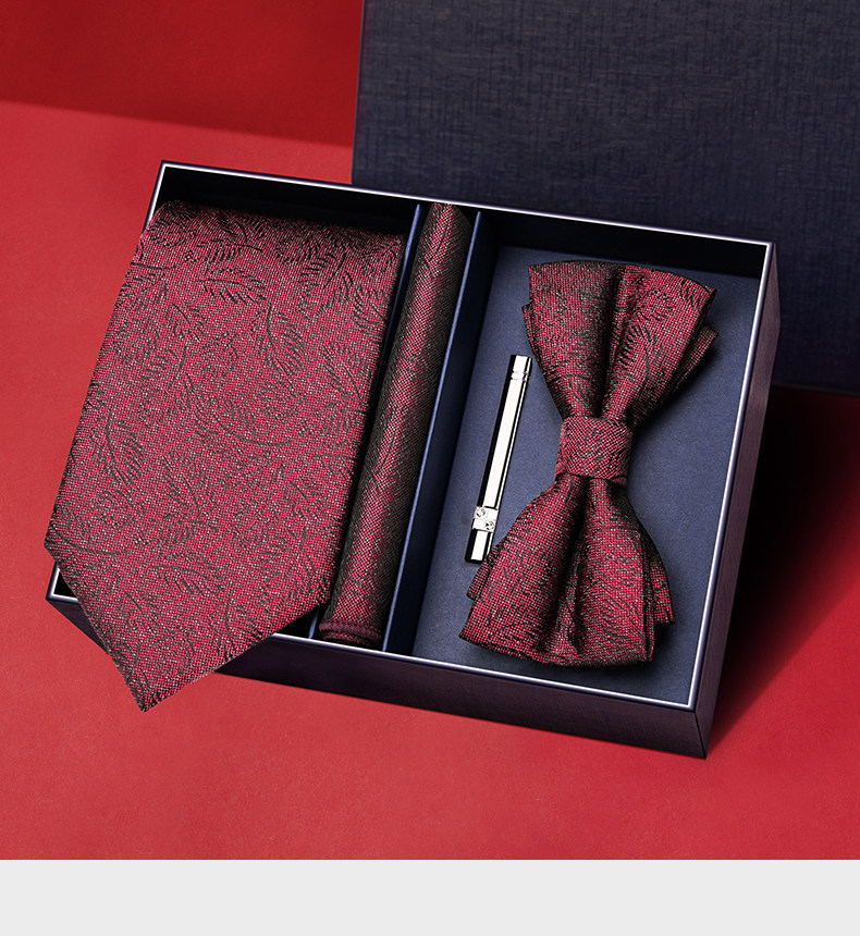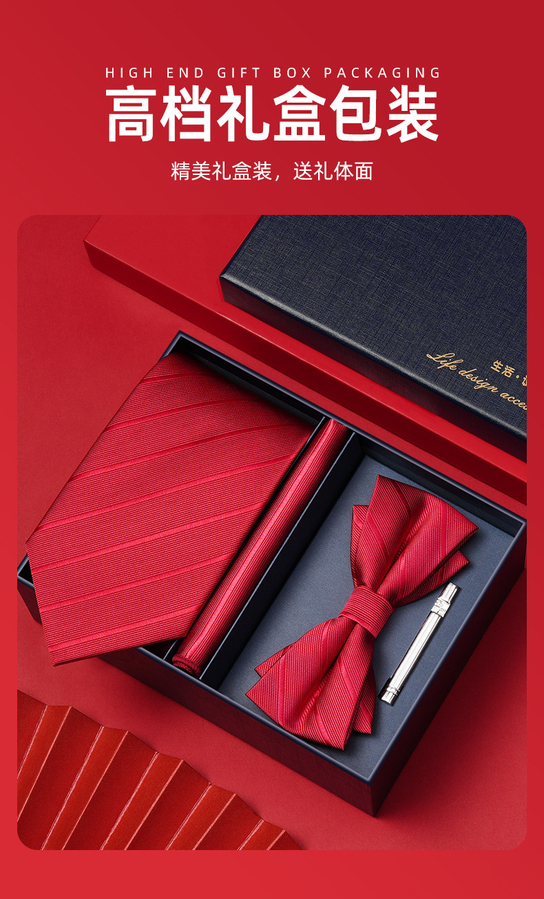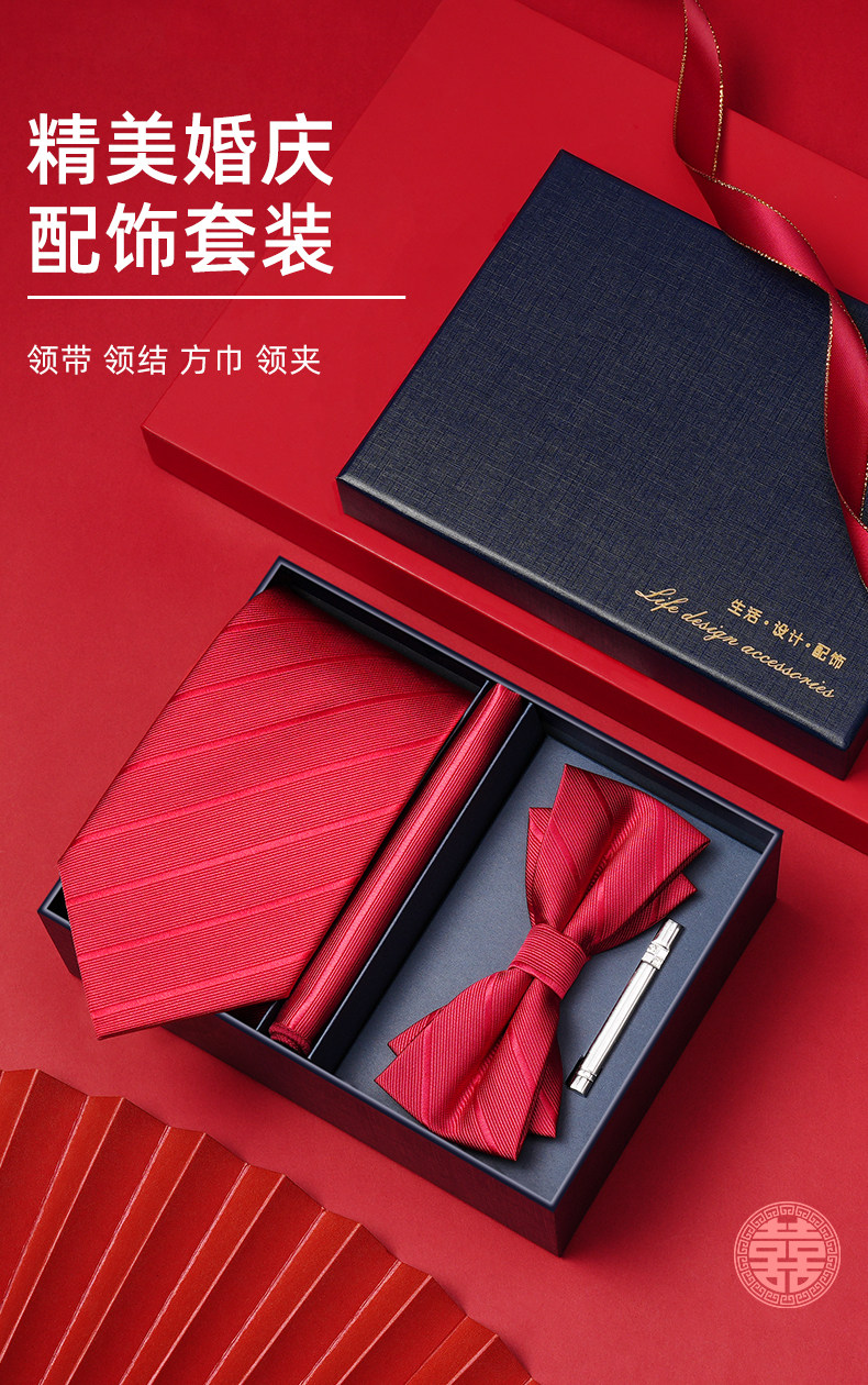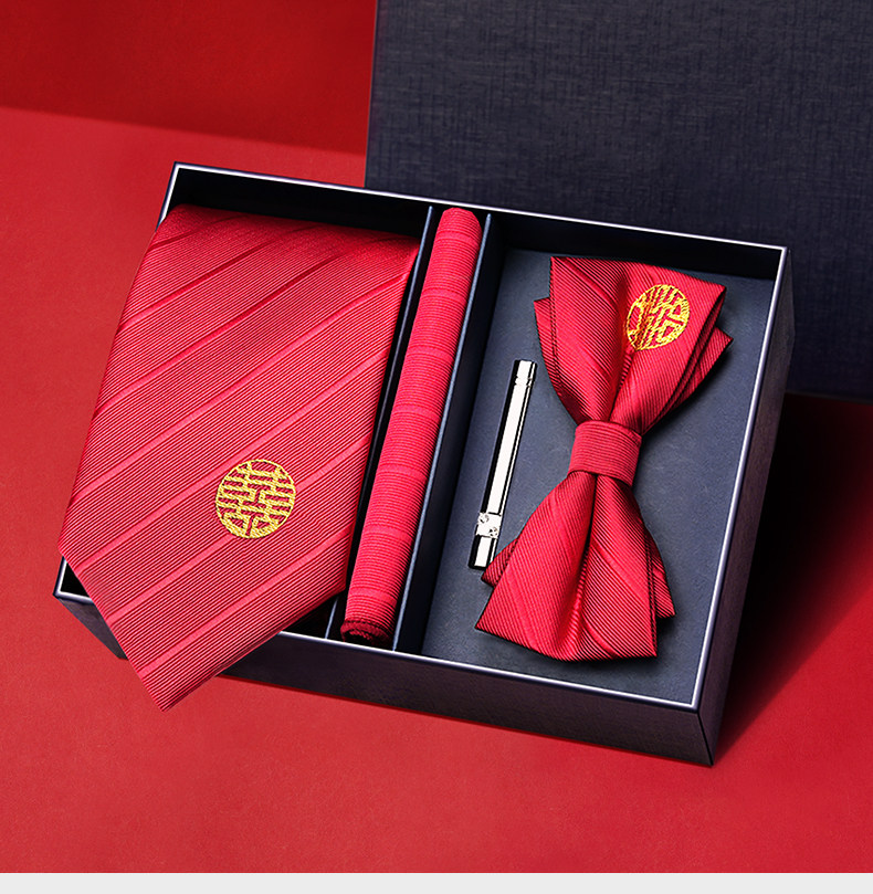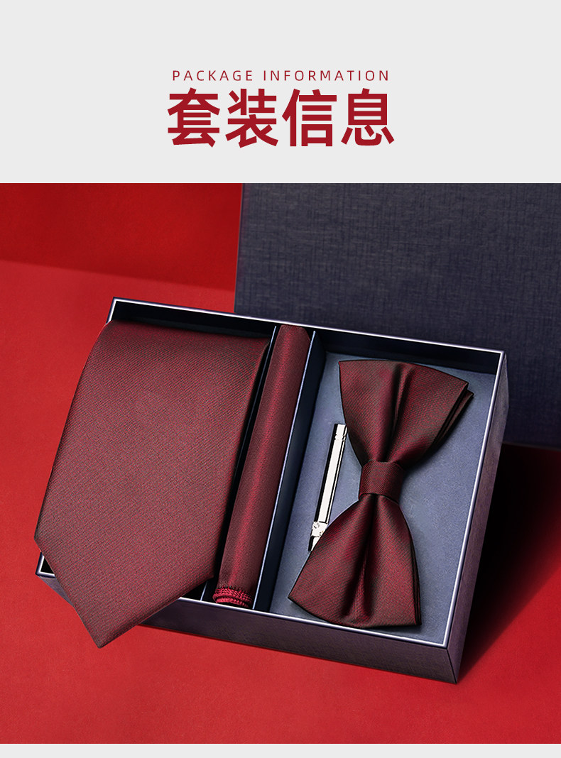 Wine Red Wedding Tie for Groom and Groomsmen, Zipper Style, No Need to Tie, Hand-Tied Formal Suit, Lazy Style