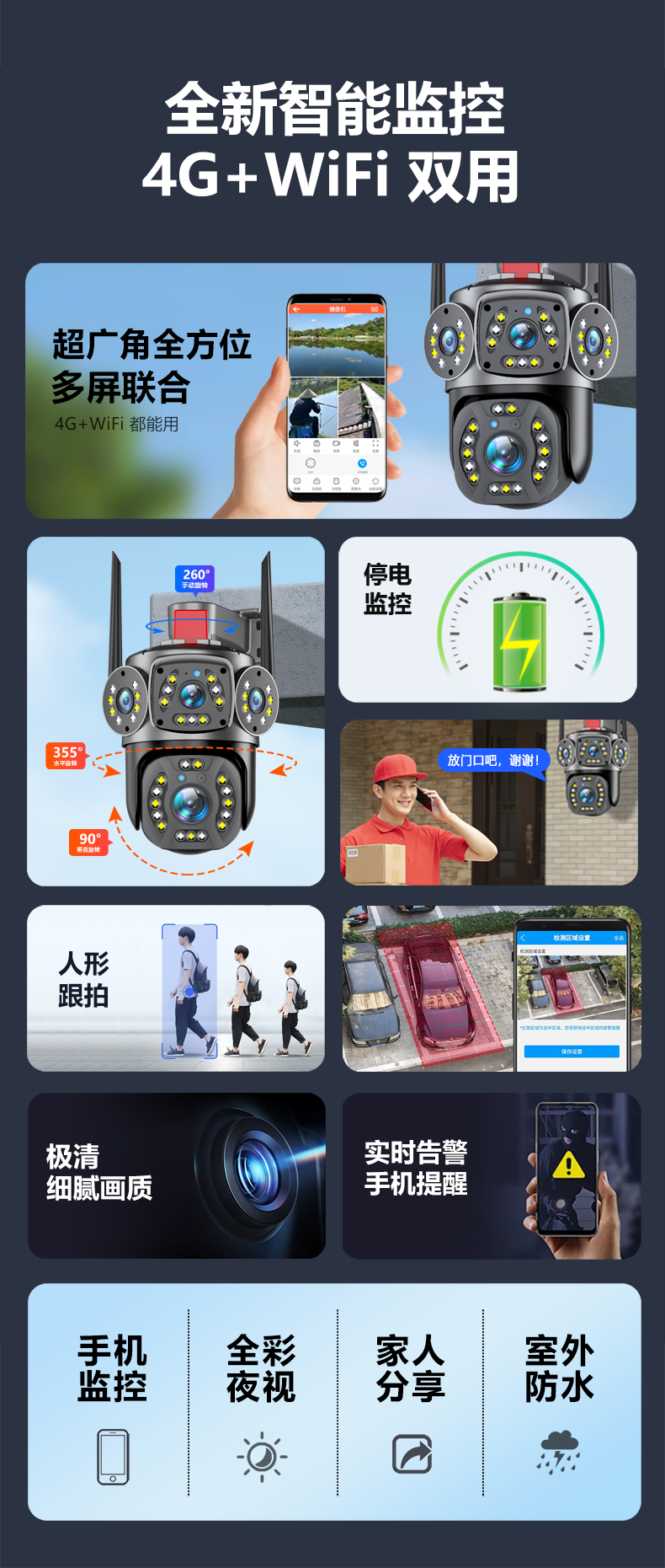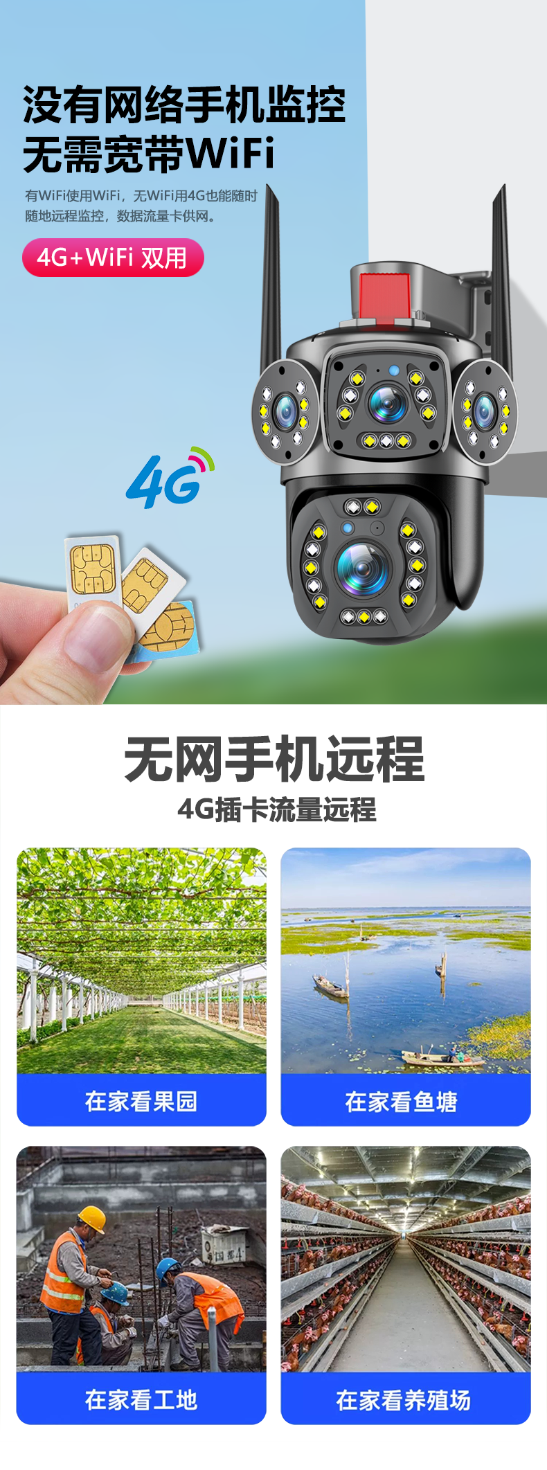| Color Classification | 4G+Wifi Dual-Use Model [99-Year Free Traffic] No Broadband Required/Applicable with or Without Network,4G+Wifi Dual-Use Model + Power Outage Monitoring [99 Years of Free Traffic] No Broadband Required / Suitable for Both Wired and Wireless Networks,4g Multi-Screen Version [Includes 99 Years of Data] - No Broadband Required / Works with Electricity, No Network Connection Needed,4g Multi-Screen + Power Outage Monitoring [Free 99-Year Data] - No Broadband Required / Works with Electricity, No Network Needed,4g Version with Three Lenses and 10X Zoom [99-Year Free Traffic] No Broadband Required/Works with Electricity but No Network,4g Triple-Lens Camera with 10X Zoom + Power Outage Monitoring [Includes 99 Years of Data] - No Broadband Required / Works with Electricity, No Network Connection Needed |