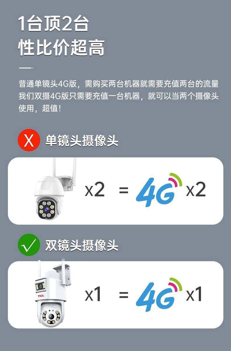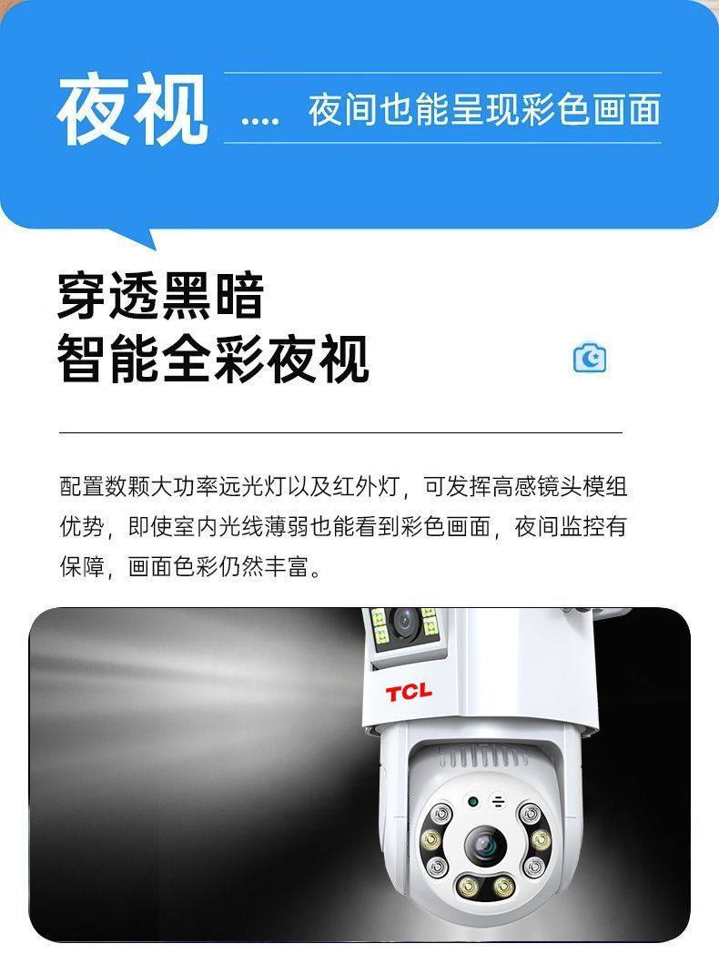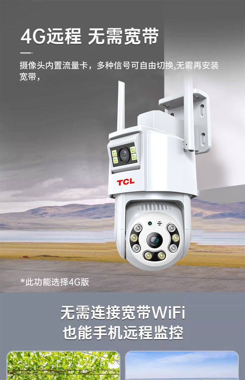 Tcl New Dual-Lens 4g Surveillance Camera for Home Wireless Wifi Mobile Remote Outdoor Ultra-High-Definition 360