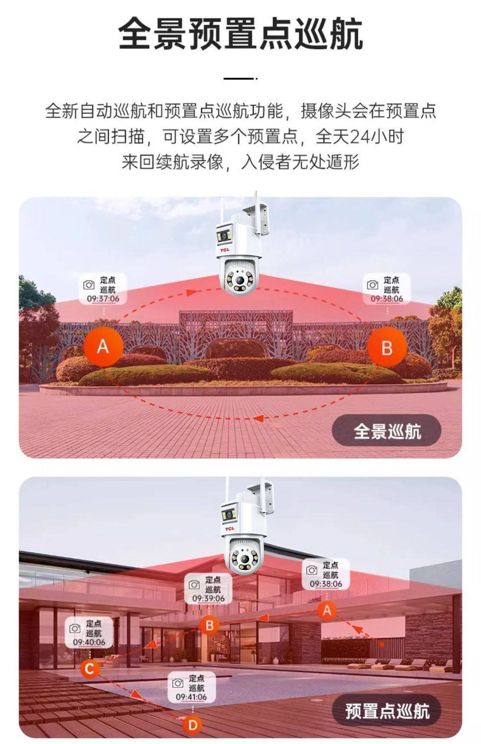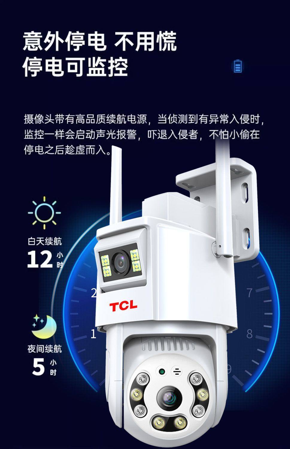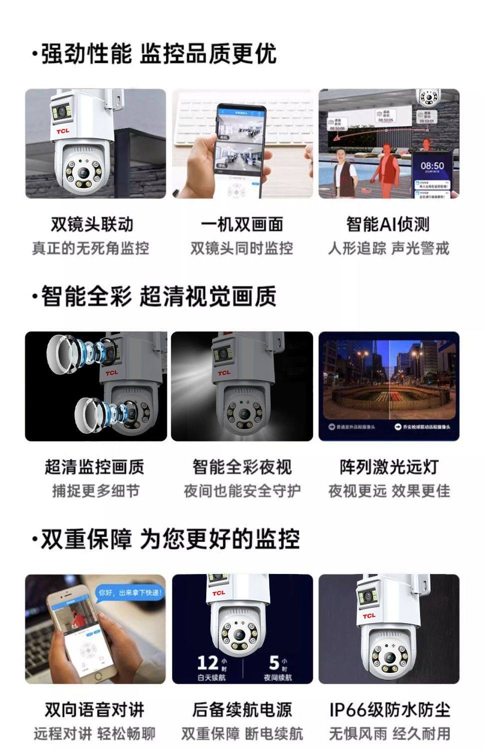 Tcl New Dual-Lens 4g Surveillance Camera for Home Wireless Wifi Mobile Remote Outdoor Ultra-High-Definition 360