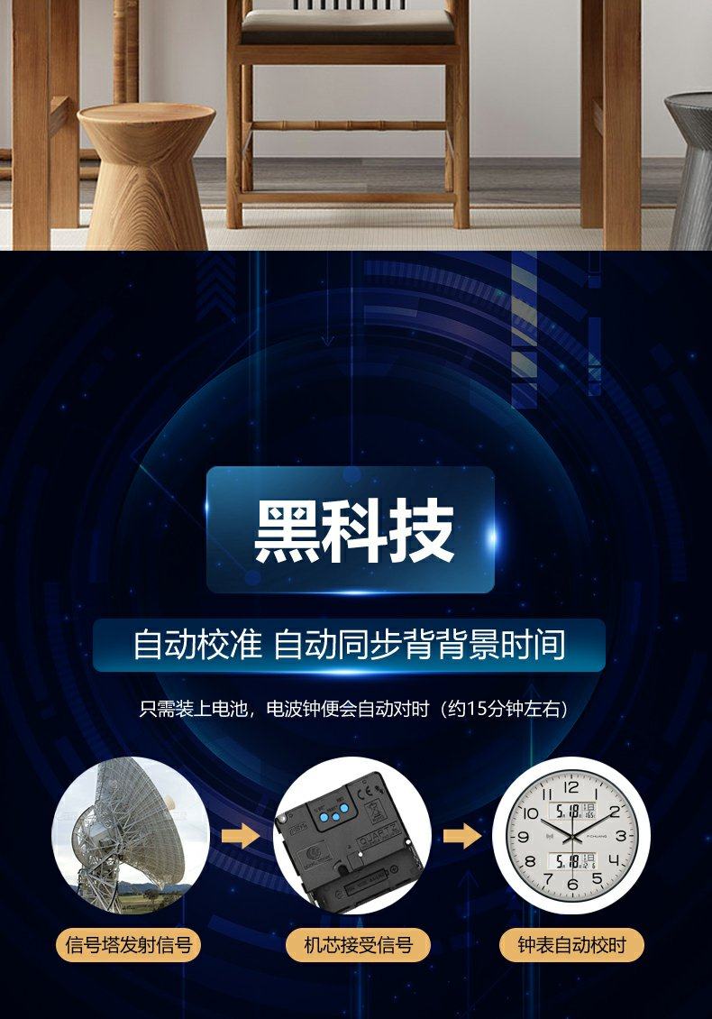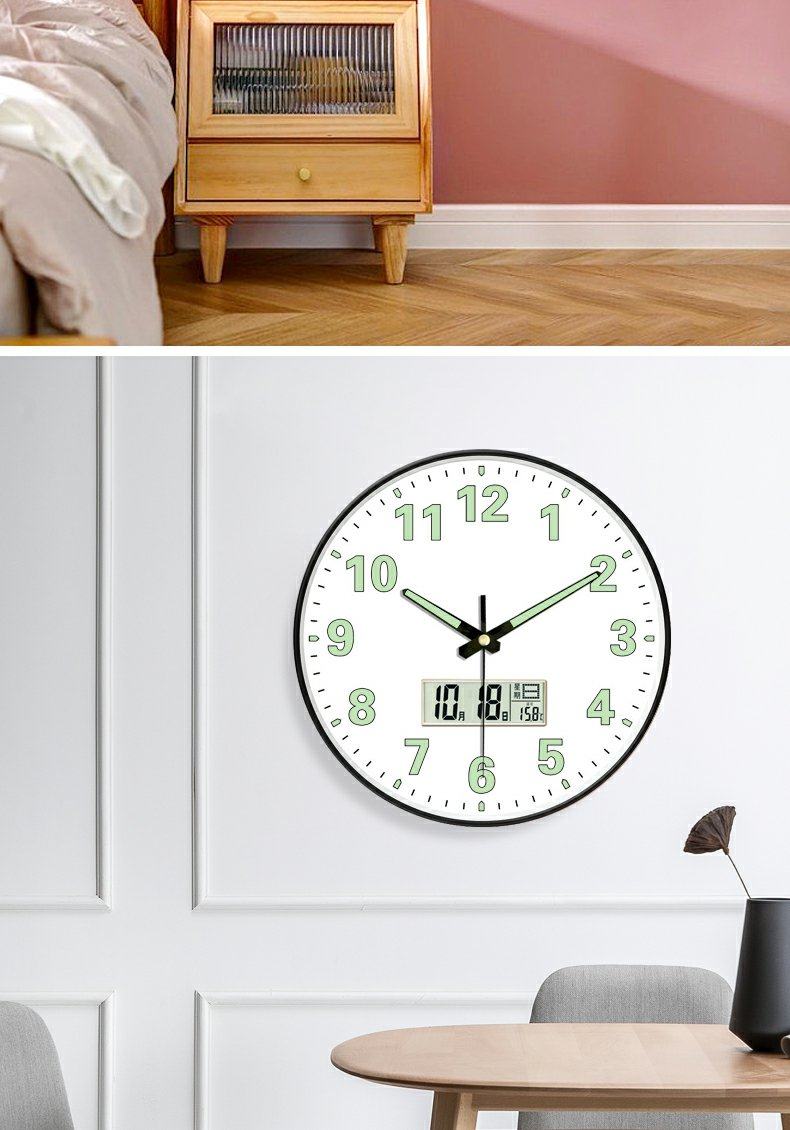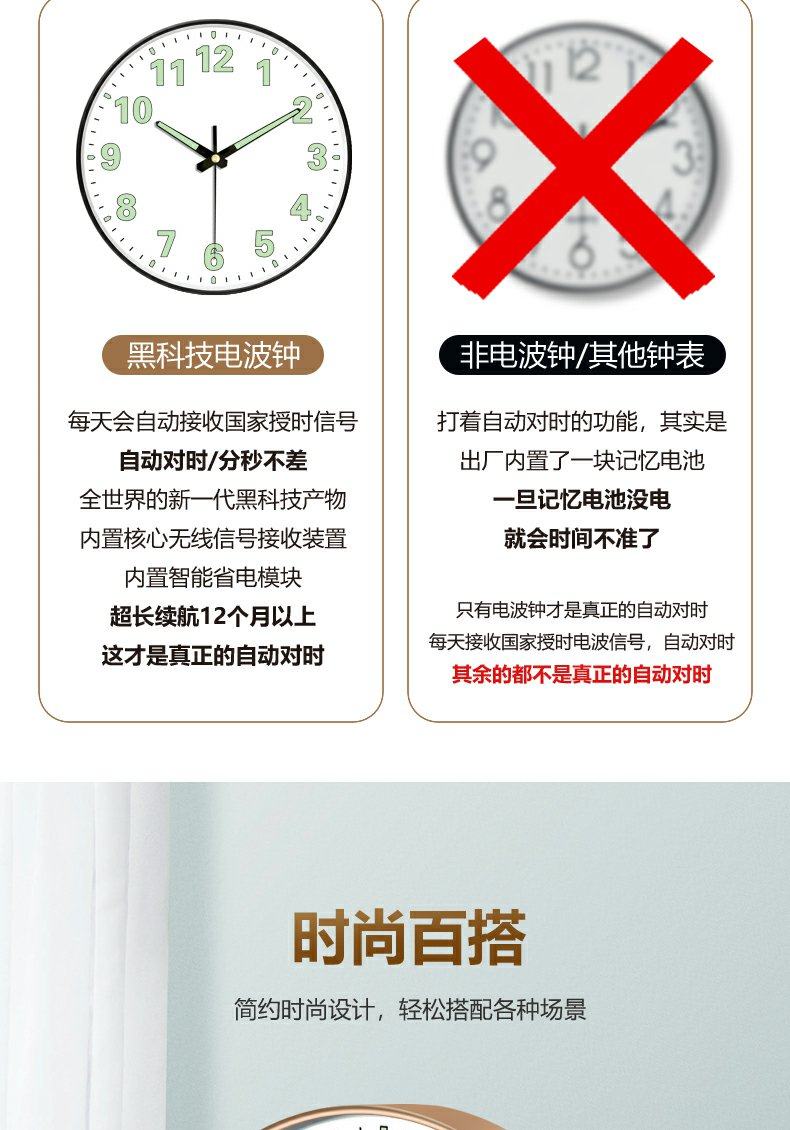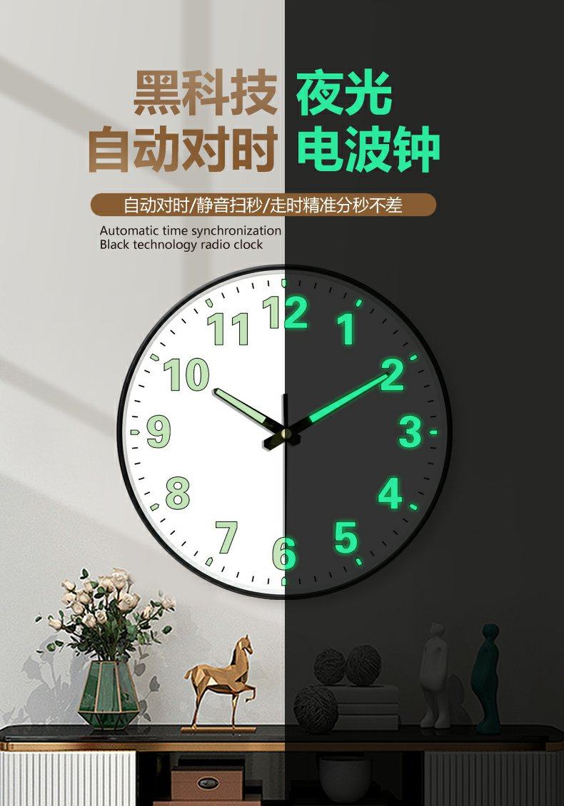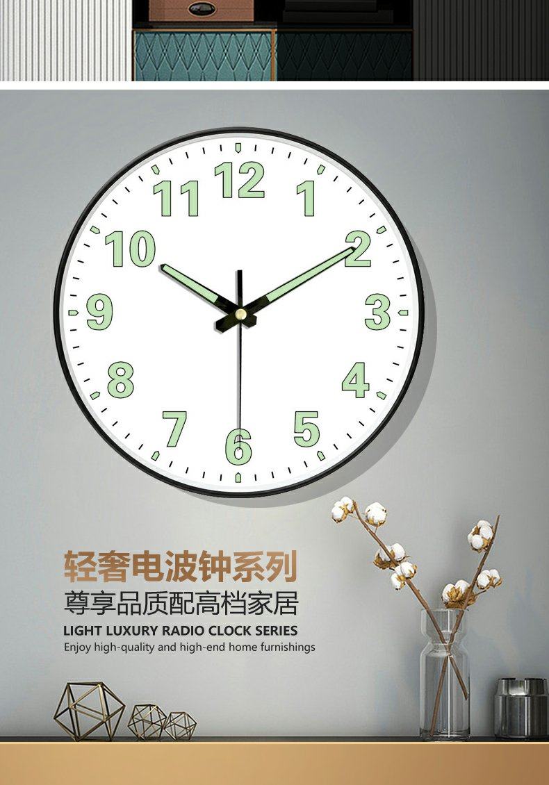 Radio-Controlled Bedroom Clock, Simple and Stylish, Home Calendar Quartz Clock, Automatic Time Setting, Luminous Clock, Living Room Wall Clock