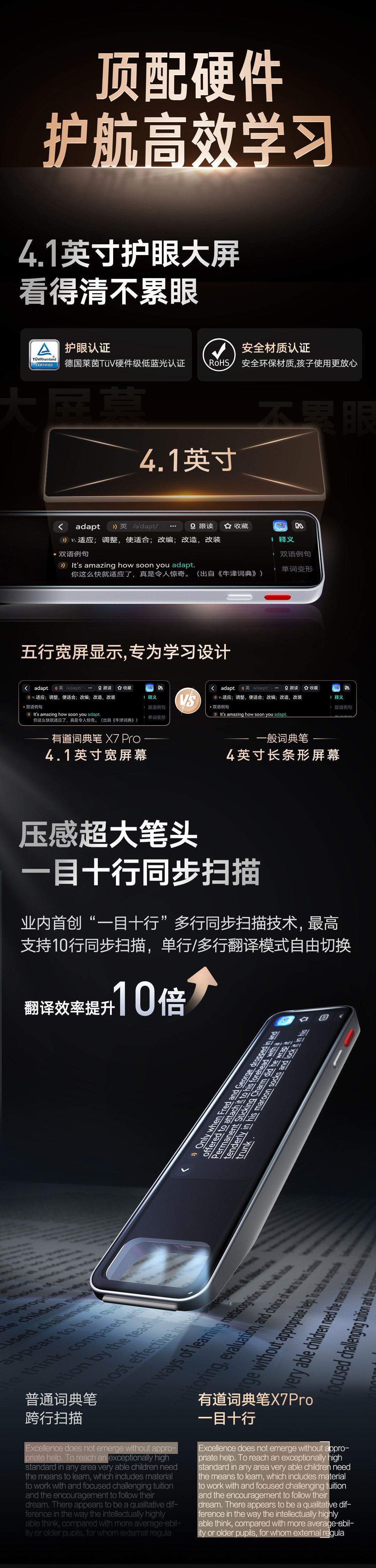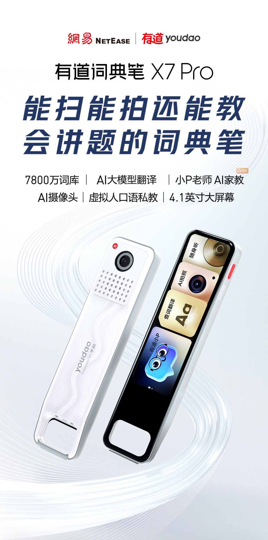 [National Subsidy 10% Off]Youdao Dictionary Pen X7/X7Pro Long Battery Life Reading and Translation Universal English Word Electronic Dictionary Pen Official official store Learning Translation Color Screen Parental Monitoring