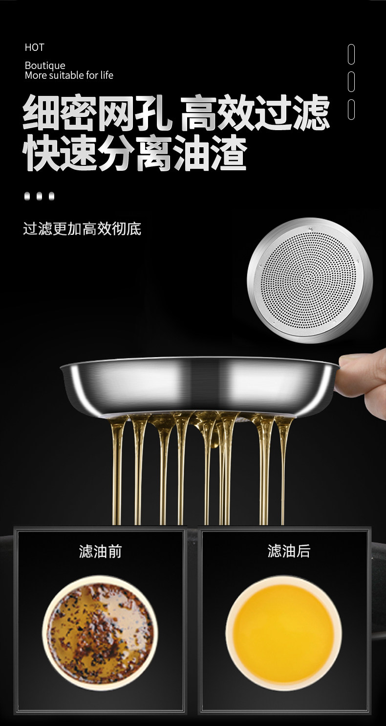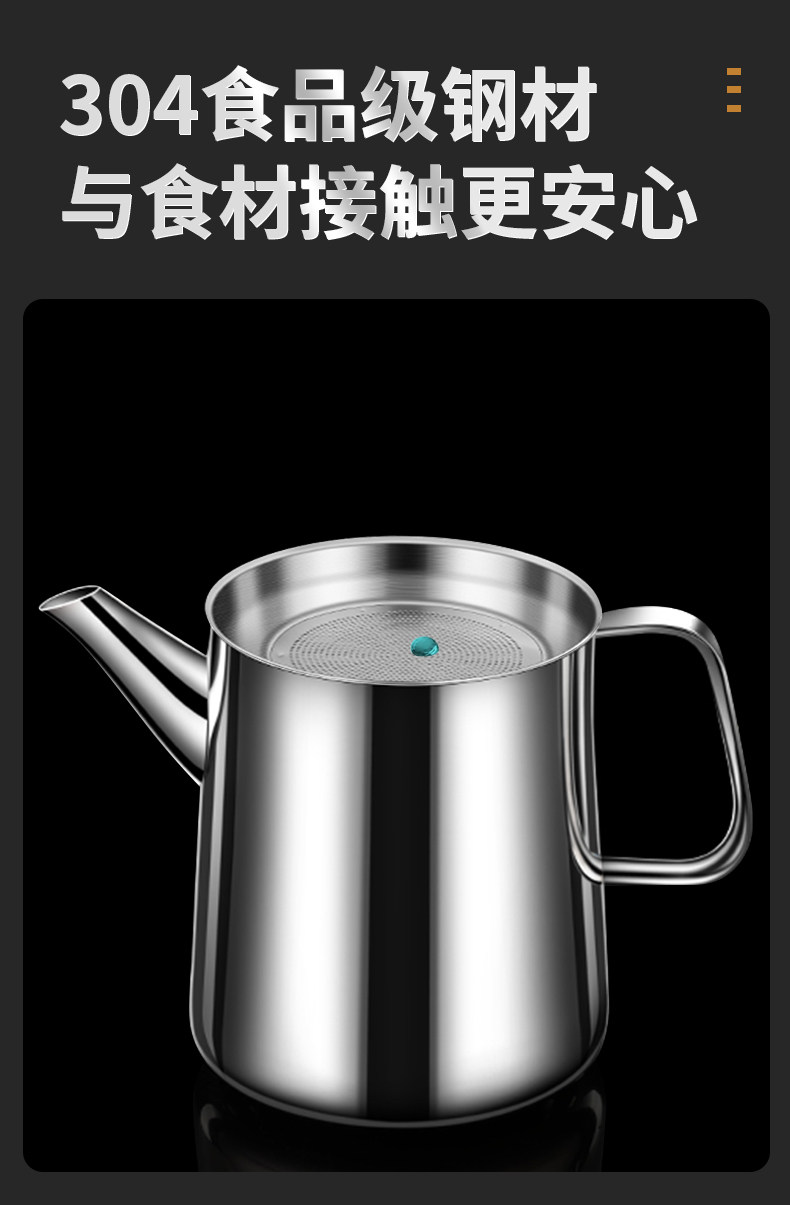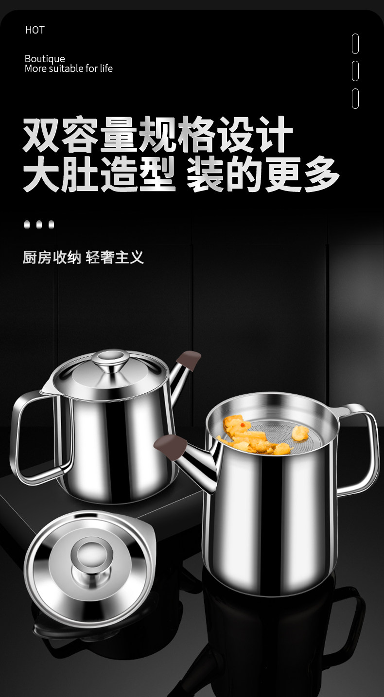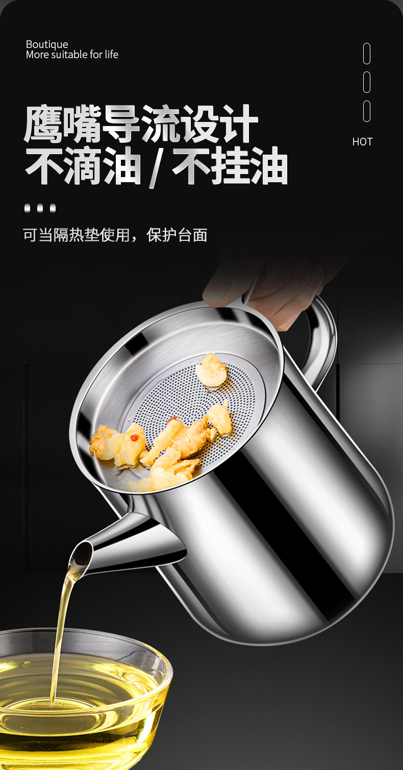 Leak-Proof Oil Filter Pot 304 Stainless Steel Household Large-Capacity Oil Storage Tank with Filter Mesh, Oil Residue Filtering Tool, Oil Bottle