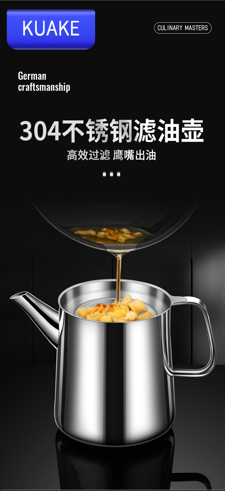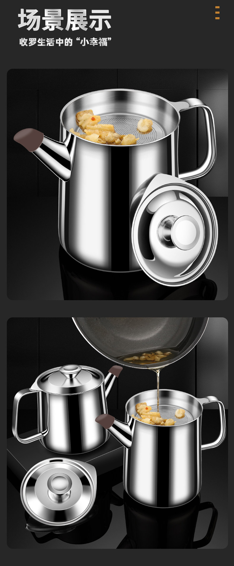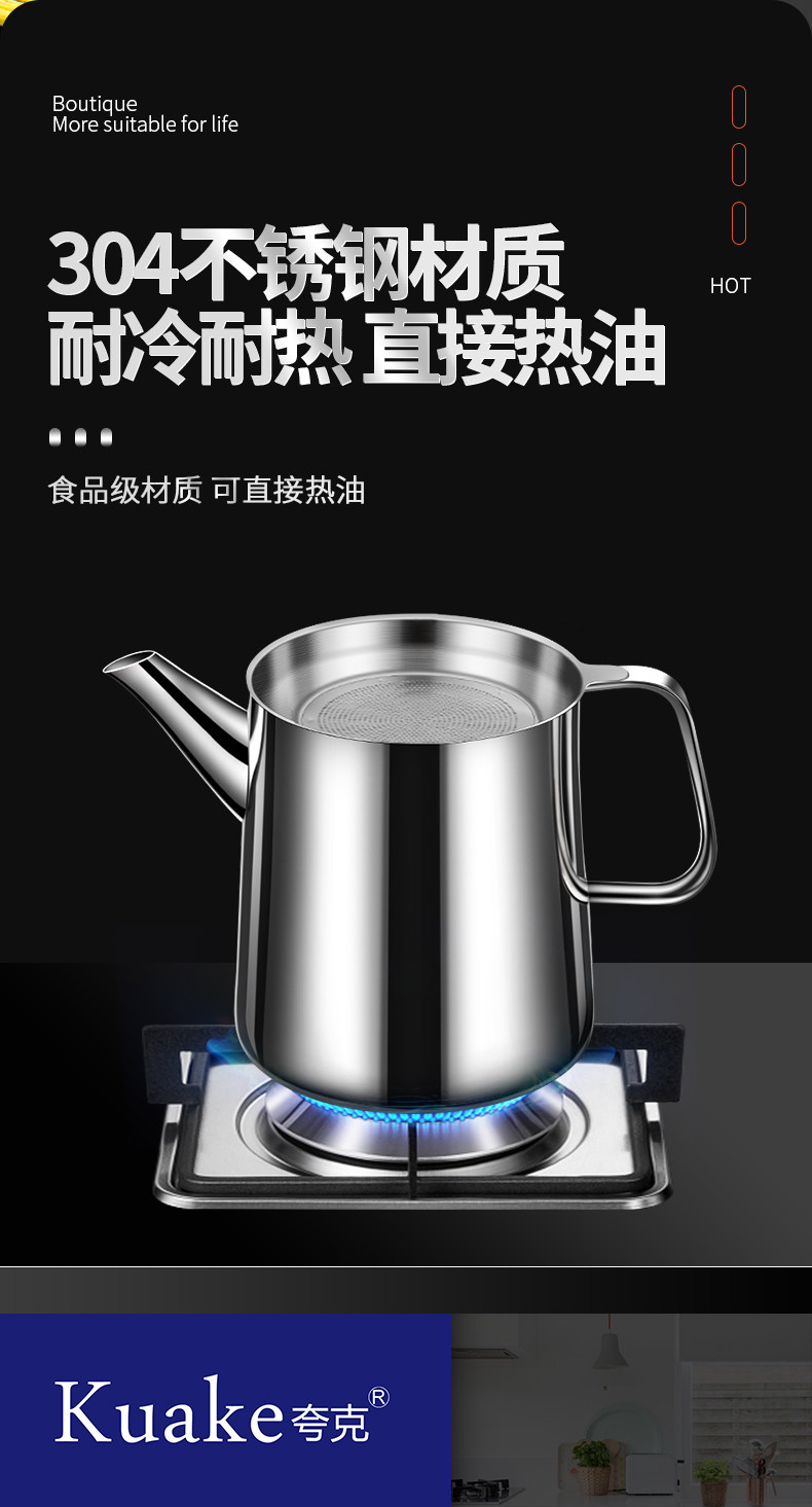 Leak-Proof Oil Filter Pot 304 Stainless Steel Household Large-Capacity Oil Storage Tank with Filter Mesh, Oil Residue Filtering Tool, Oil Bottle