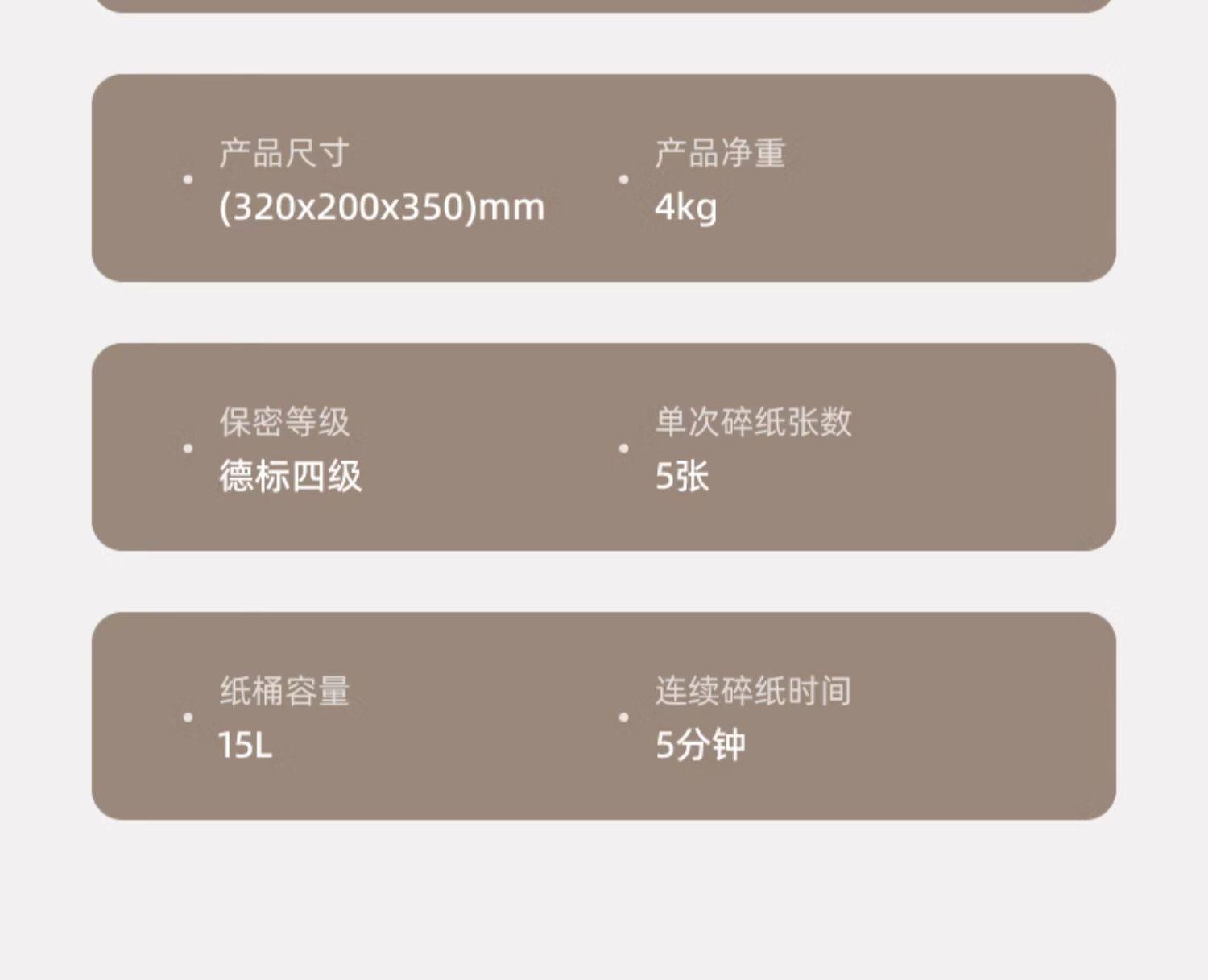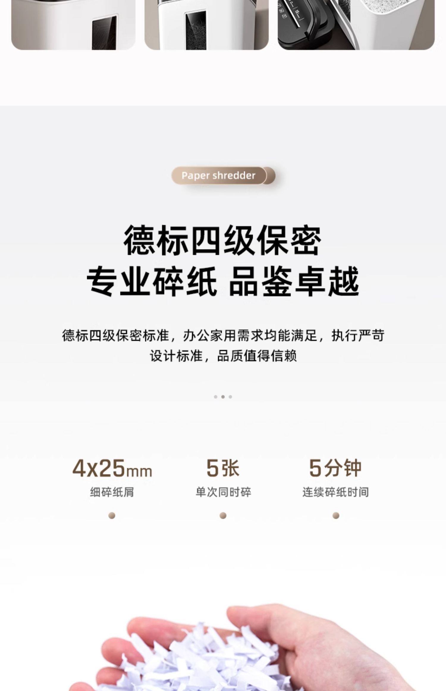 | Color Classification | 9939 White/Level 4 Confidentiality/5 Minutes of Continuous Shredding/5 Sheets of the Same Shredding/15L Capacity,9939 Black / Level 4 Security / 5-Minute Continuous Shredding / 5 Sheets at a Time / 15L Capacity,2025 Fashion Mini Shredder / Ga150 / Level 4 Security / 5-Minute Continuous Shredding / 6 Sheets at a Time / 15L Capacity,Ga191/Level 4 Confidentiality/10 Minutes of Continuous Shredding/5 Sheets of the Same Shredding/20L Capacity,Ga390/Level 4 Confidentiality/10 Minutes of Continuous Shredding/8 Sheets of the Same Shredding/23L Capacity/Can Shred Staples,Ga590/Level 5 Confidentiality/20 Minutes of Continuous Shredding/8 Sheets of the Same Shredding/23L Capacity/Can Shred Staples,Ga580/Level 5 Confidentiality/30 Minutes of Continuous Shredding, 8 Sheets of the Same Shredding/23L Capacity/Can Shred Staples,Ga581/Level 5 Confidentiality/60 Minutes of Continuous Shredding/6 Sheets of the Same Shredding/20L Capacity/Can Shred Staples,27530/Level 5 Confidentiality/10 Minutes of Continuous Shredding/8 Sheets of the Same Shredding/23L Capacity/Can Be Shredded Cards/Discs/Book Staples |