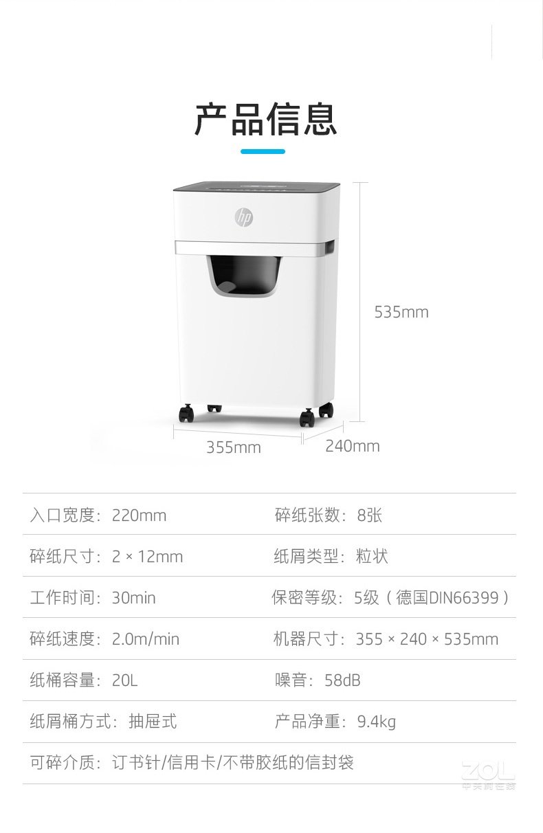 Hp W2008Mc Shredder, Level 5 Security, Office Paper Document Shredder, Can Shred Cards and Staples