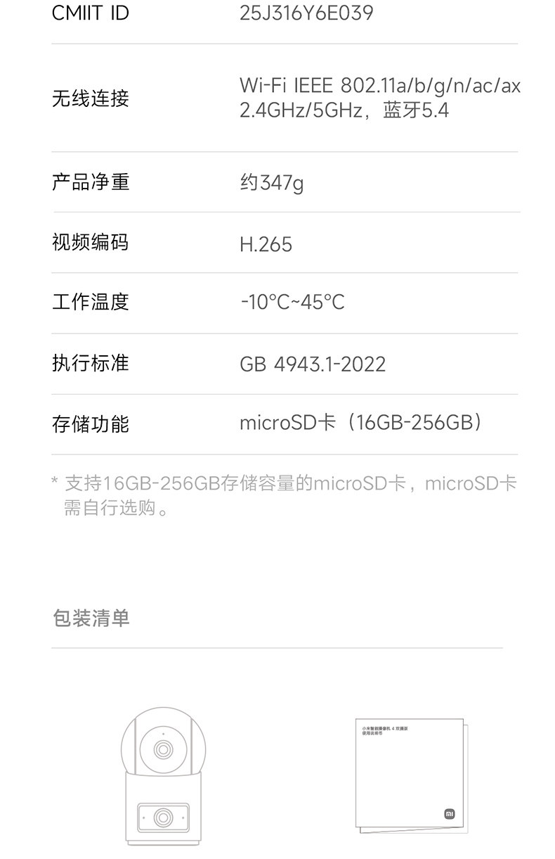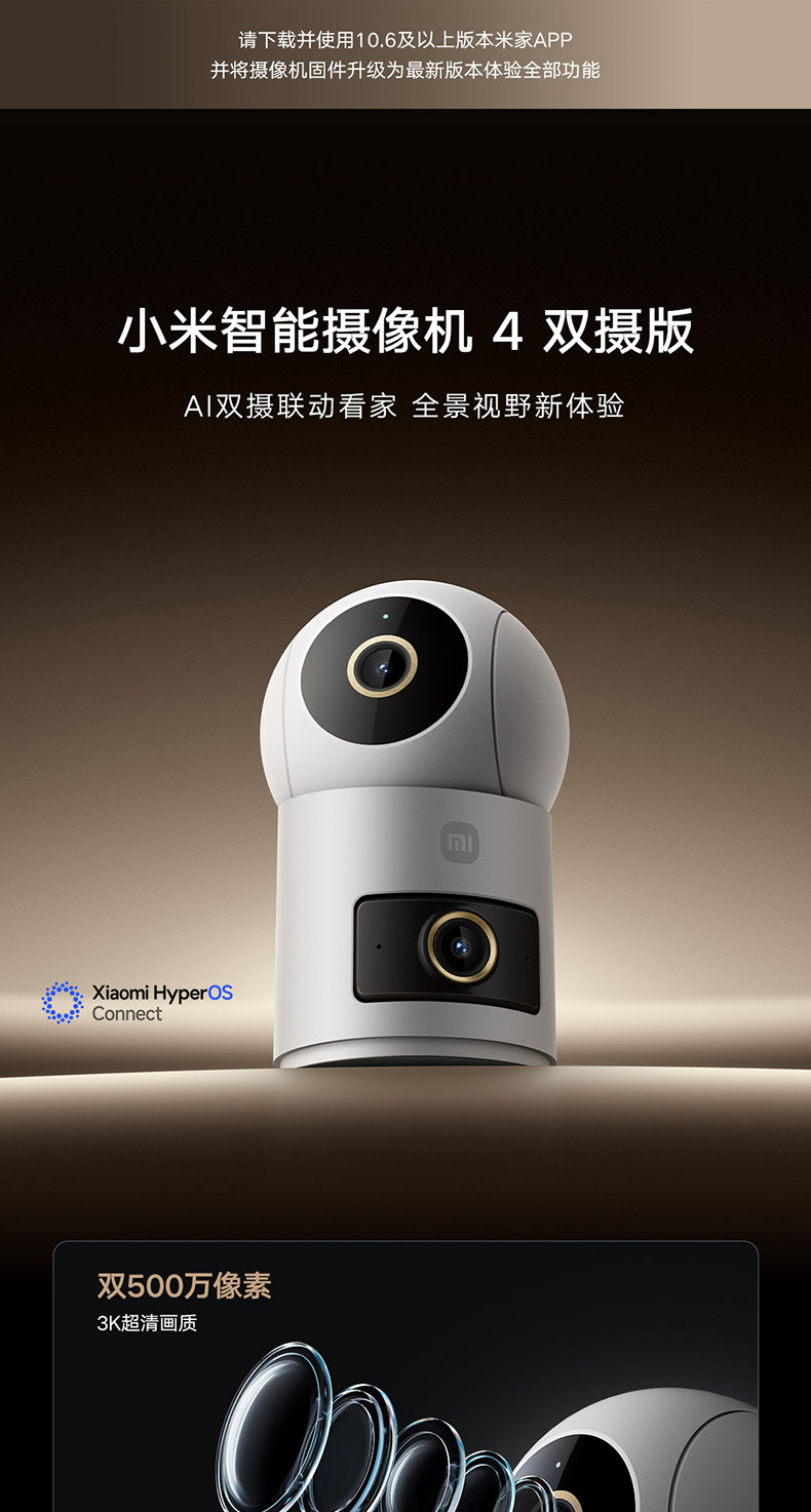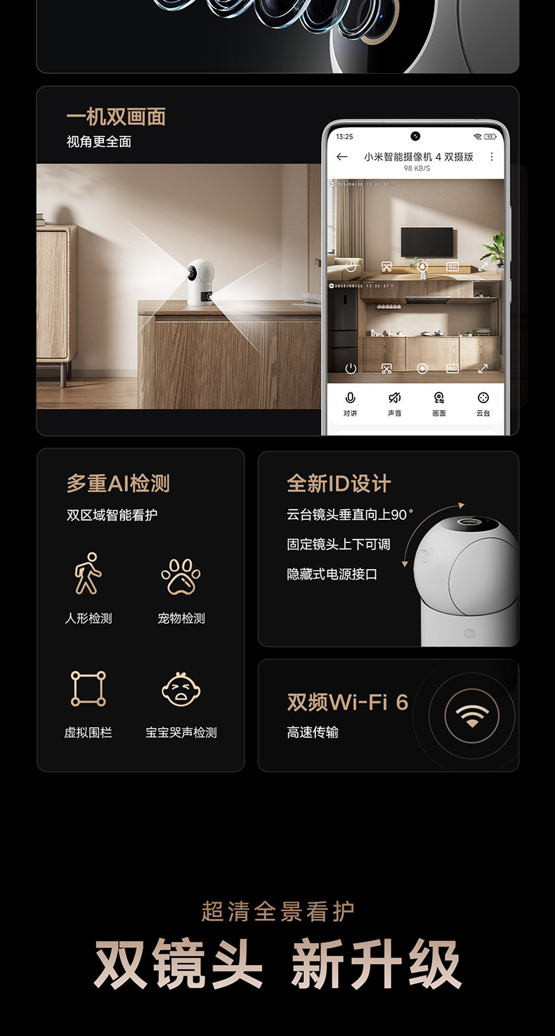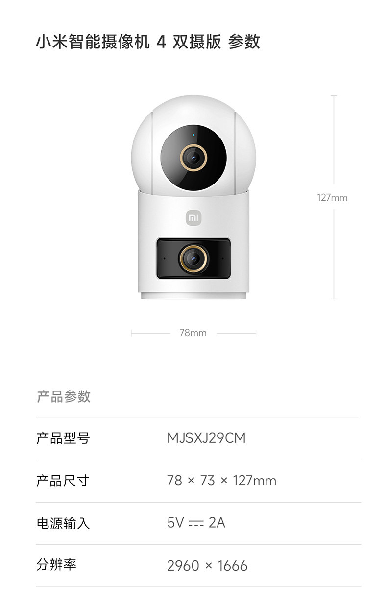 Xiaomi Camera 4 Dual Camera Surveillance Camera for Home Mobile Remote 360 ° Panoramic Smart Camera