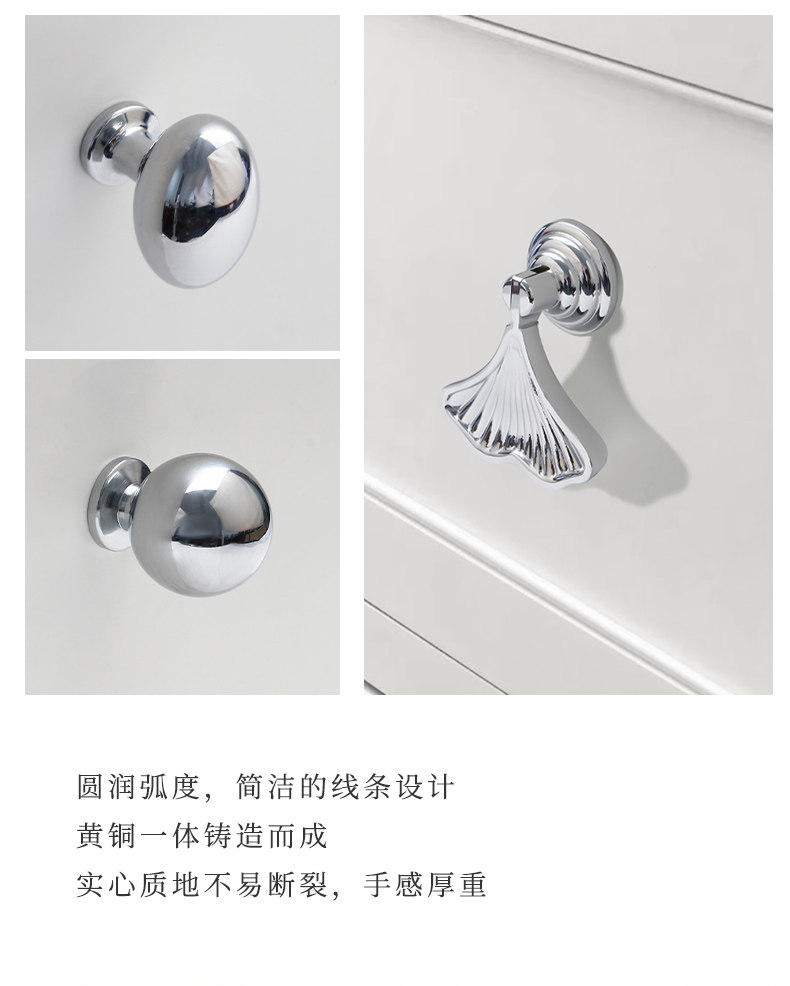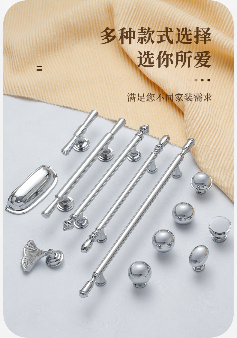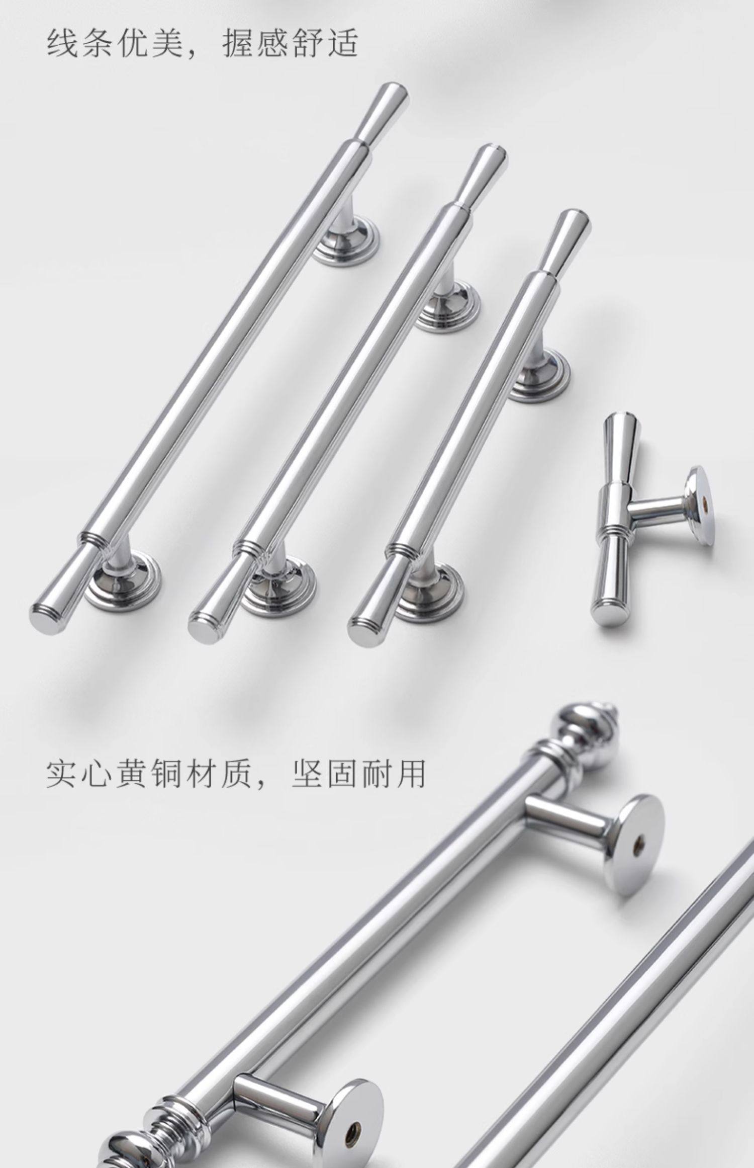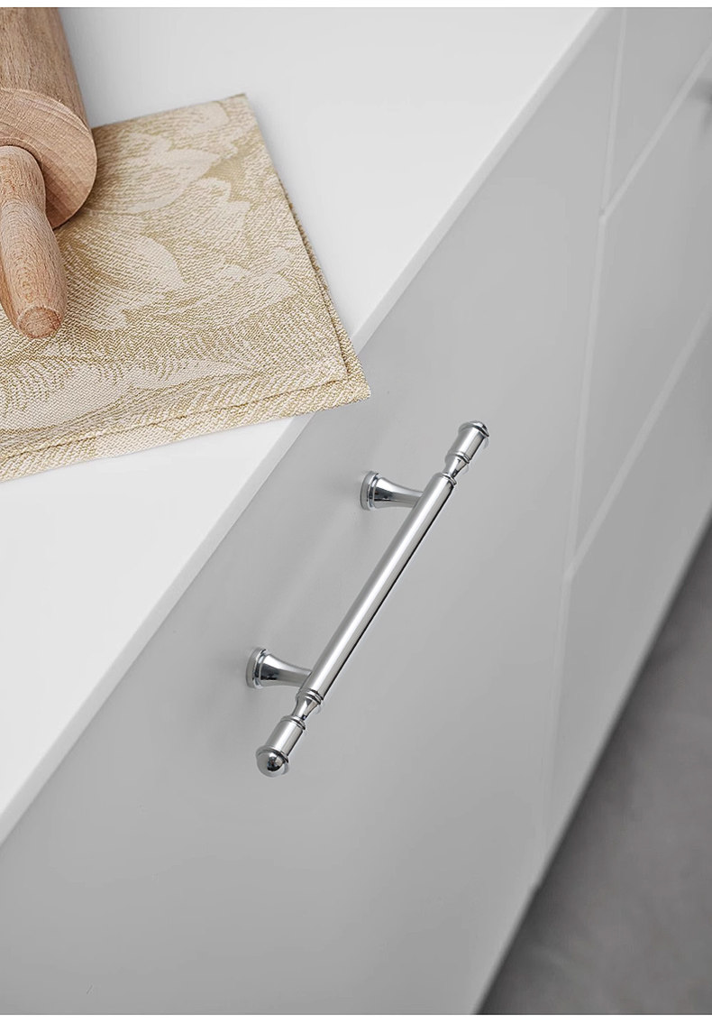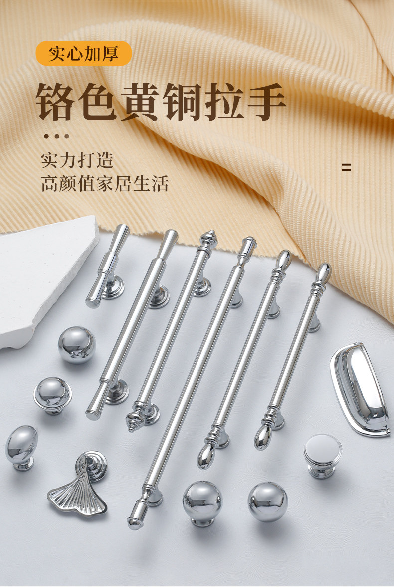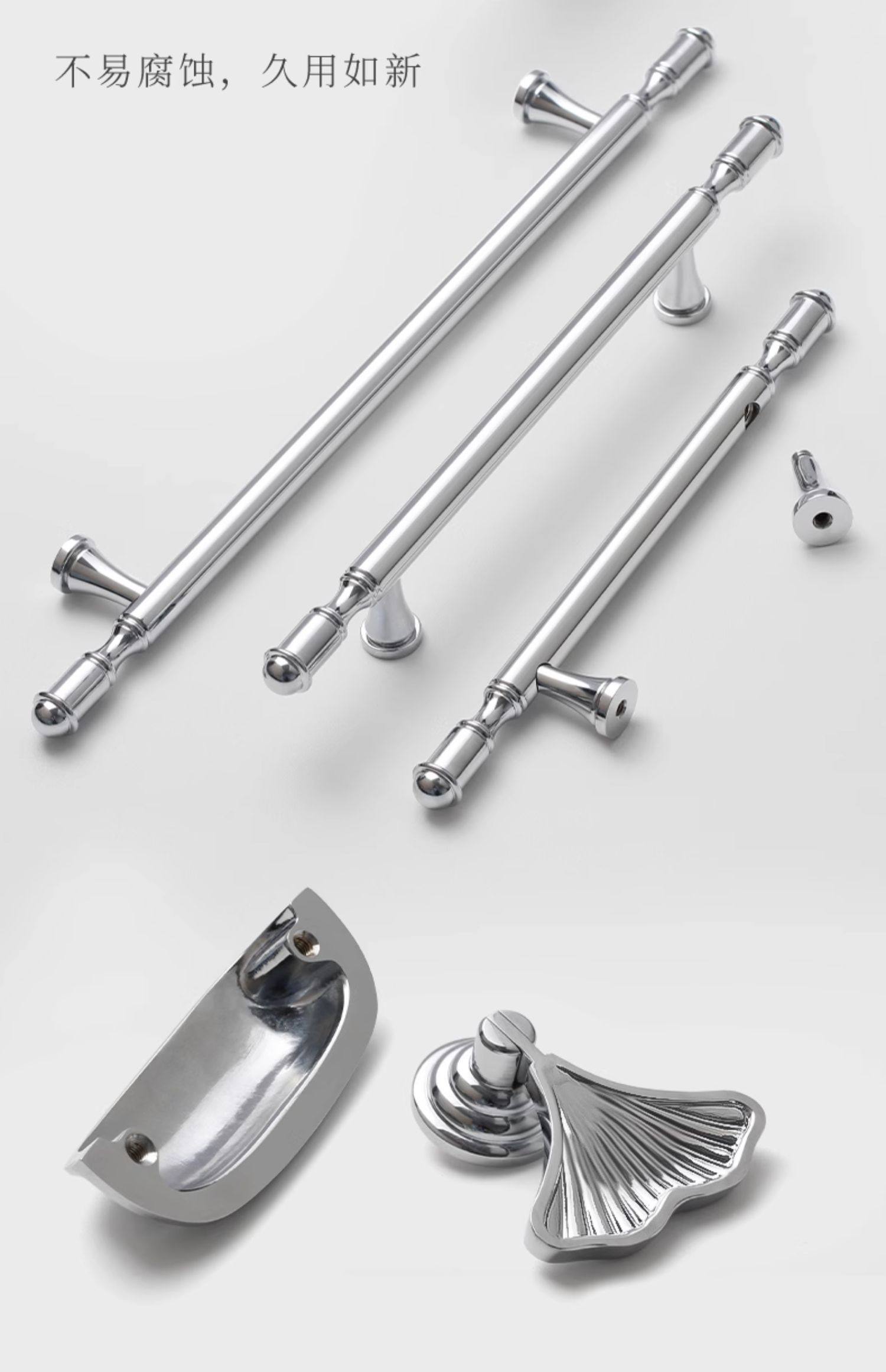 French-Style Chrome-Plated Cream-Colored Brass Cabinet Door Wardrobe Handle, Modern Minimalist Light Luxury Silver Cabinet Drawer Door Handle