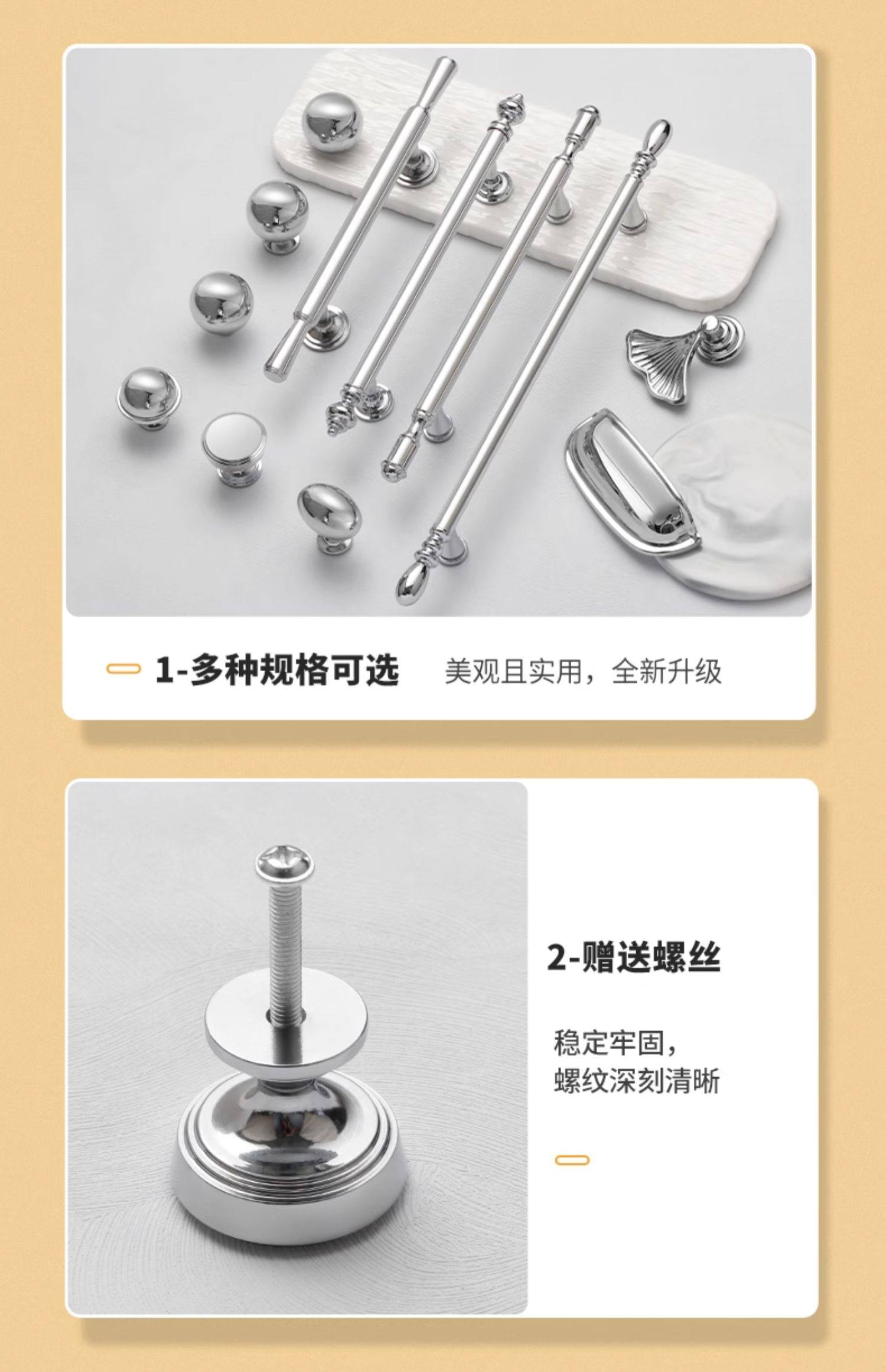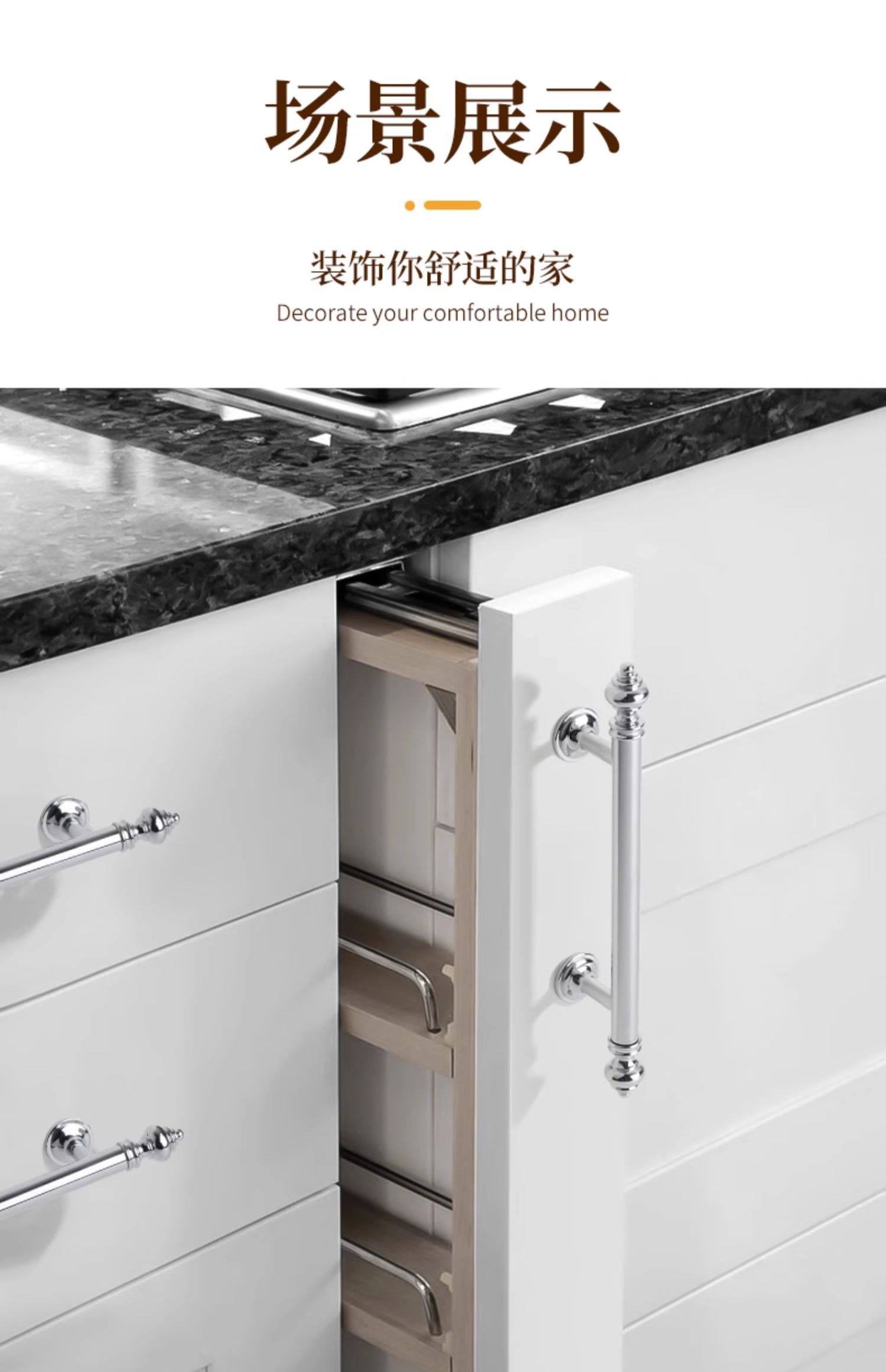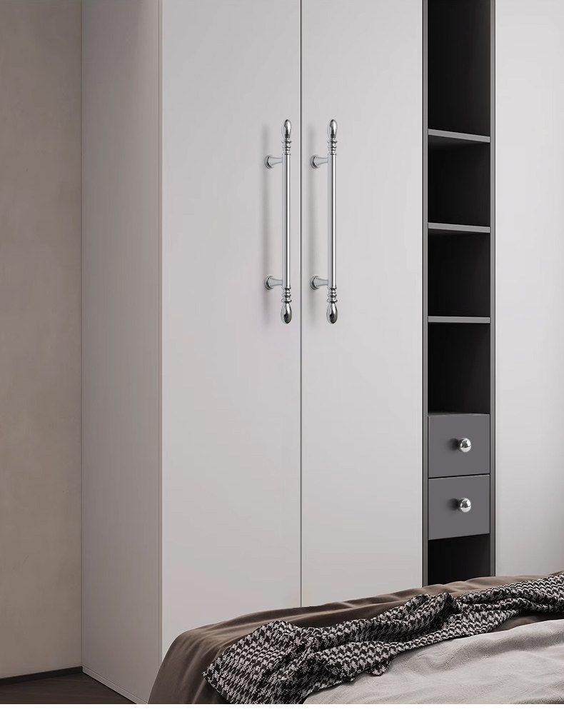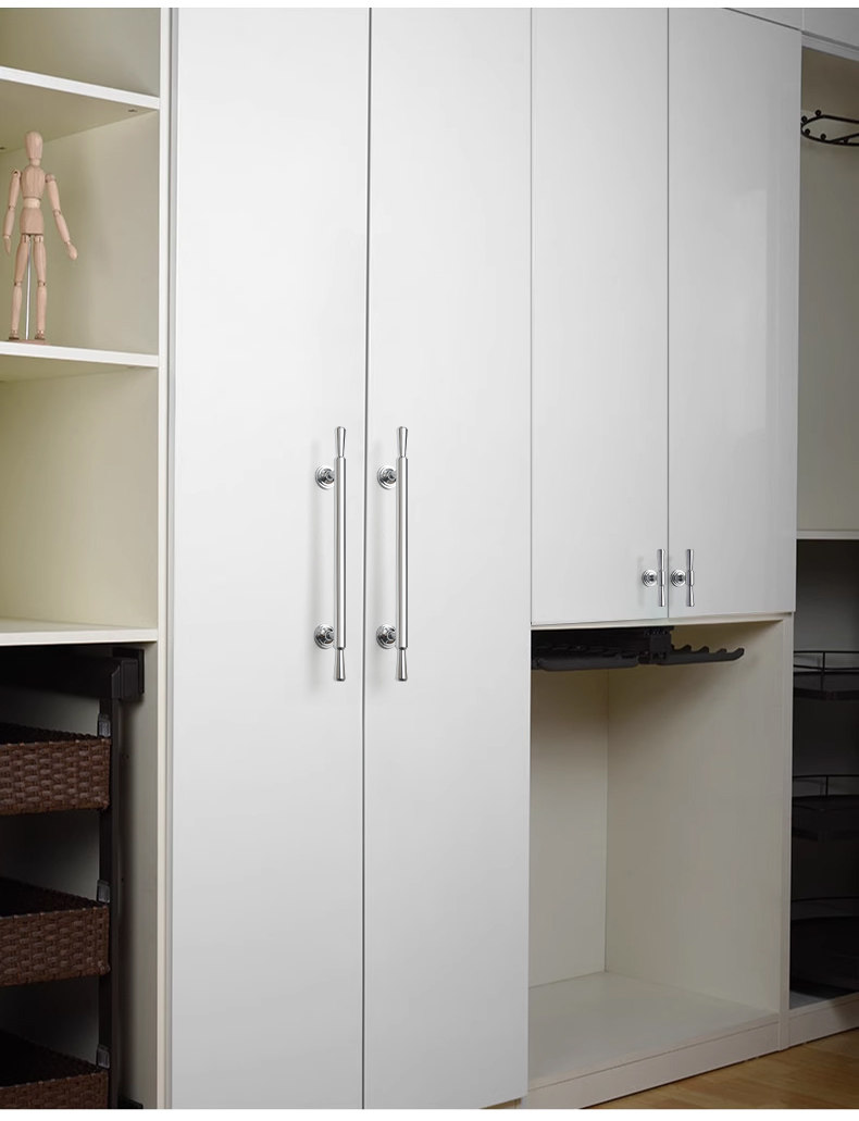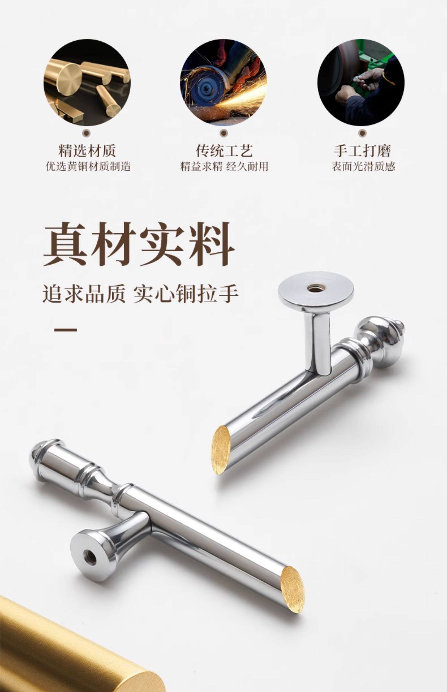 French-Style Chrome-Plated Cream-Colored Brass Cabinet Door Wardrobe Handle, Modern Minimalist Light Luxury Silver Cabinet Drawer Door Handle