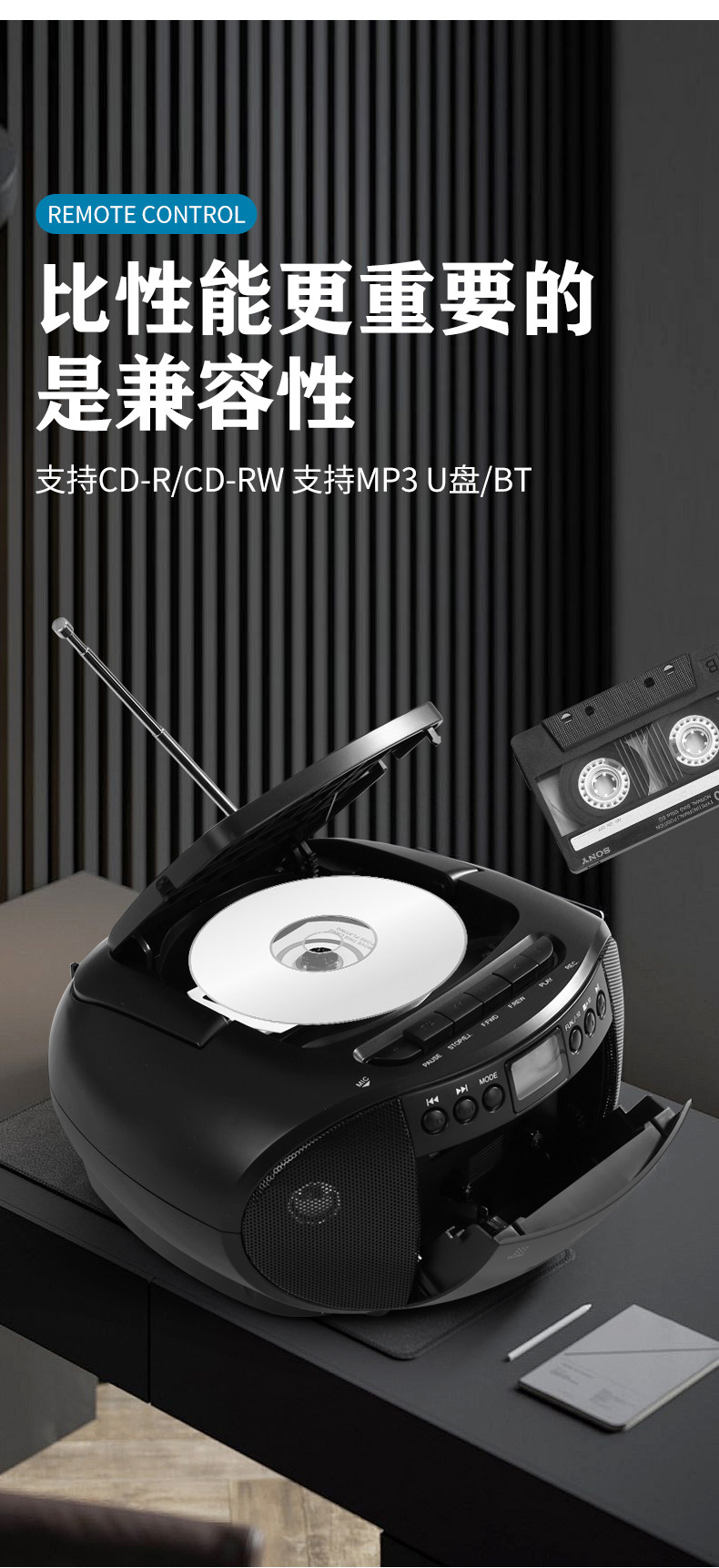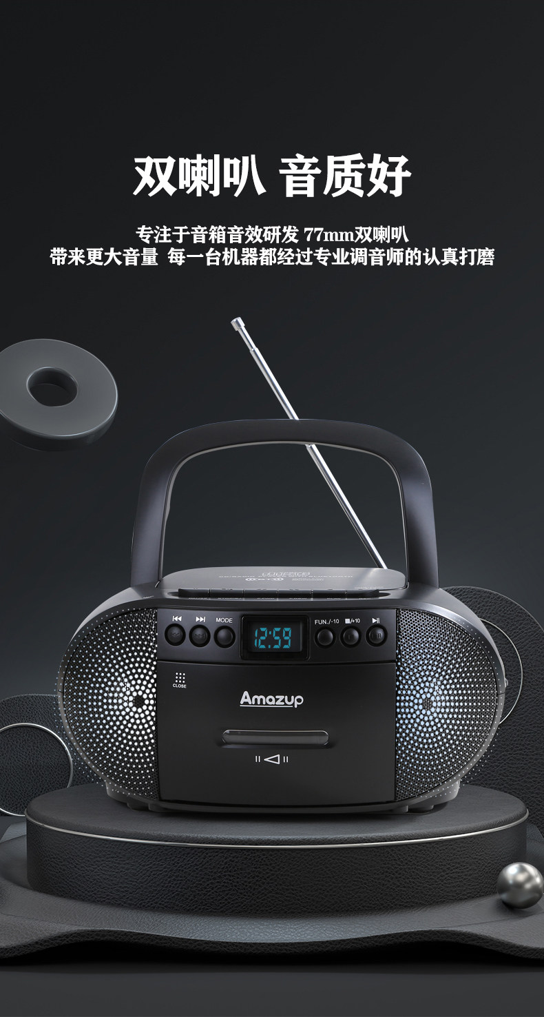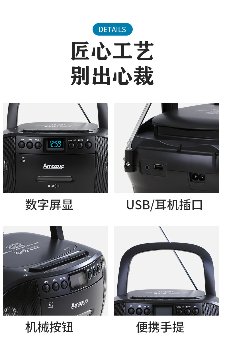 Portable Bluetooth Cd Mp3 Player Fm Radio Tape Recorder Cassette Can USB Flash Drive English Disc Learning