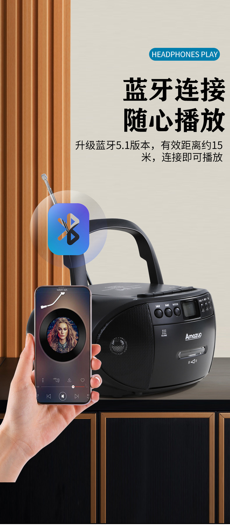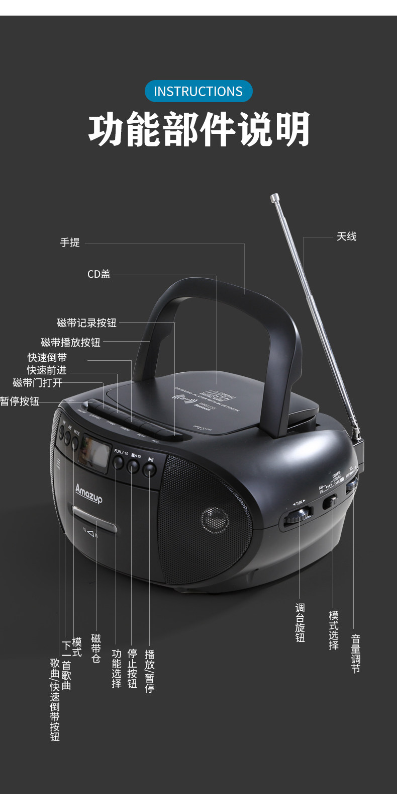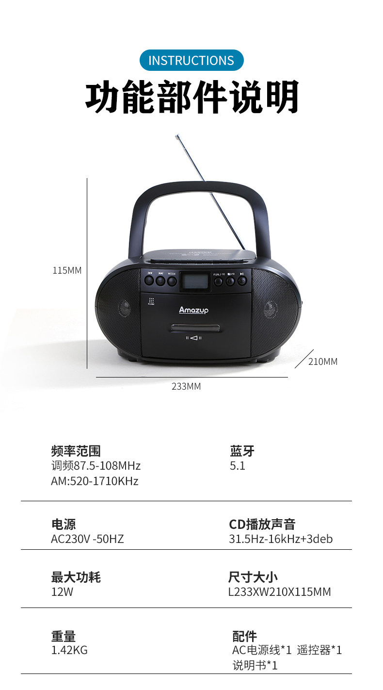 Portable Bluetooth Cd Mp3 Player Fm Radio Tape Recorder Cassette Can USB Flash Drive English Disc Learning