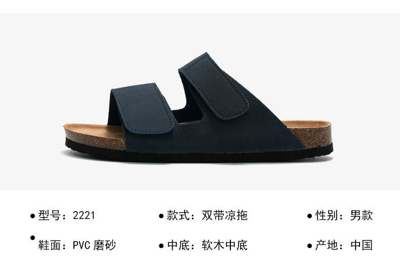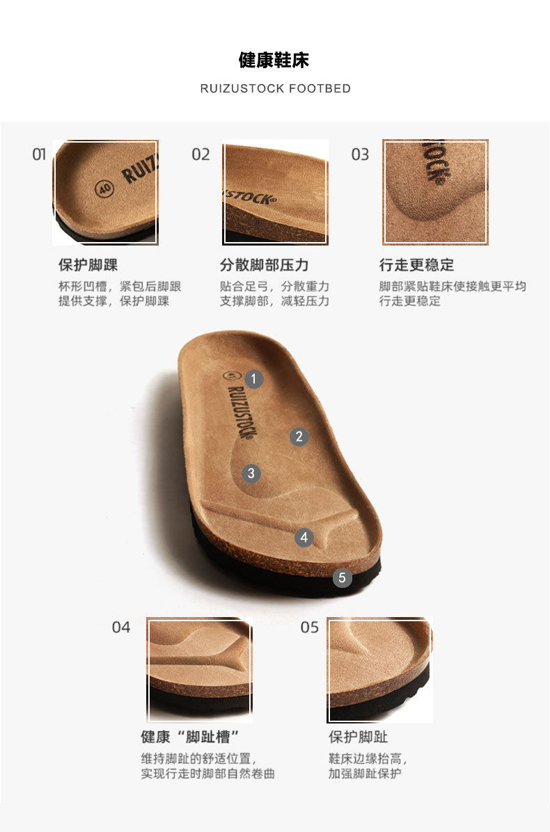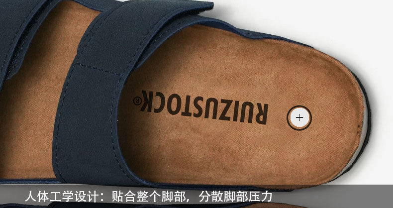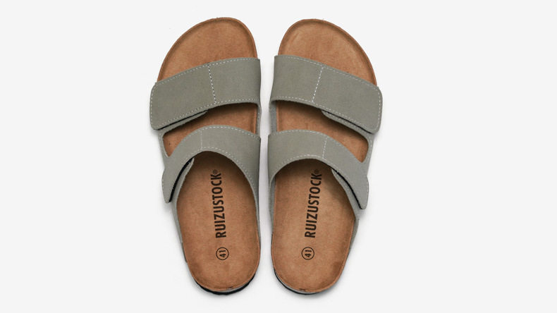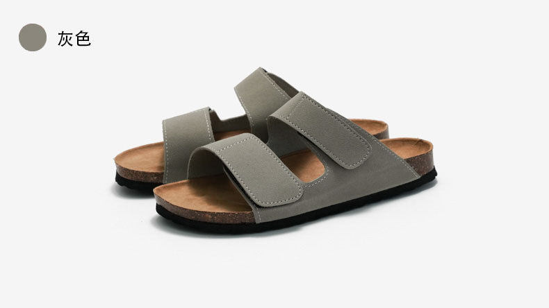 2025 Summer Men's Cork Slippers Trendy Student Flip-Flops Double Strap Men's Birkenstock Shoes Beach Shoes Suede Leather