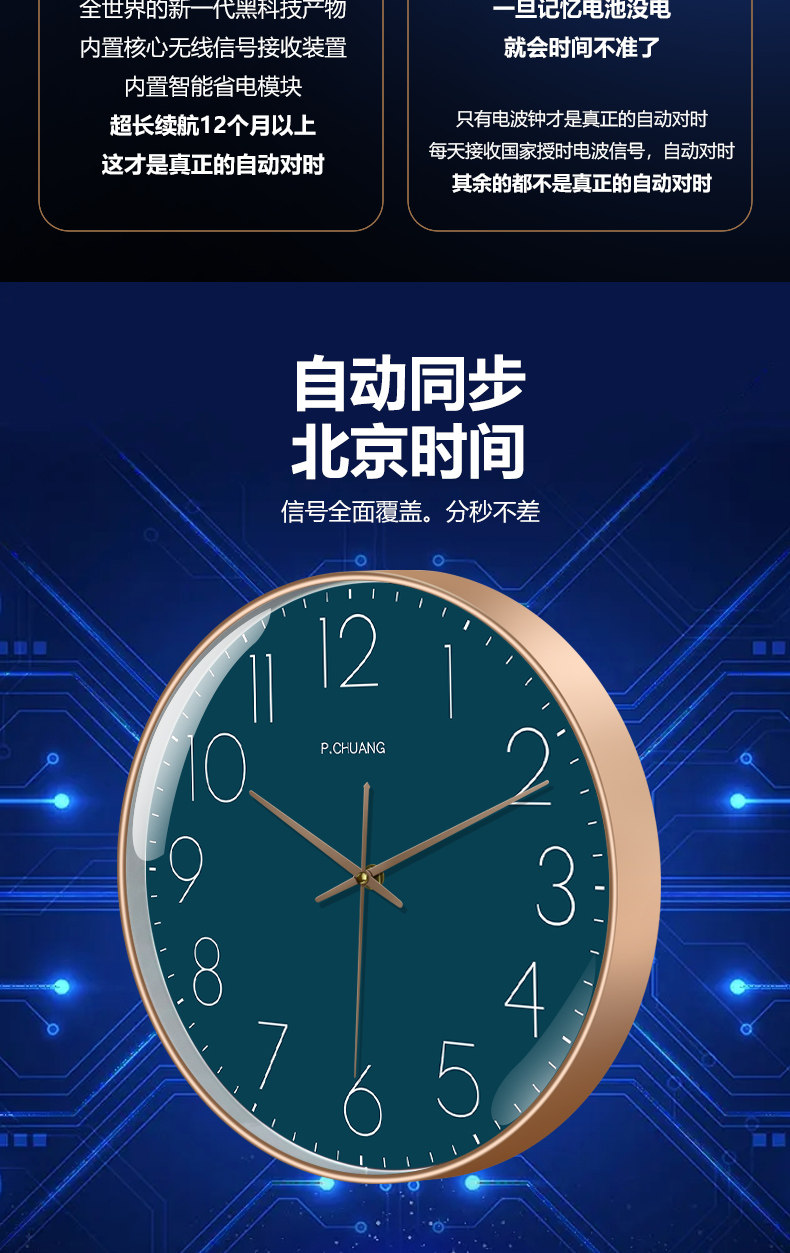 Suning.Com Radio Wave Clock Living Room Automatic Time Clock Clock Wall Hanging Home Simple Quartz Clock 2129