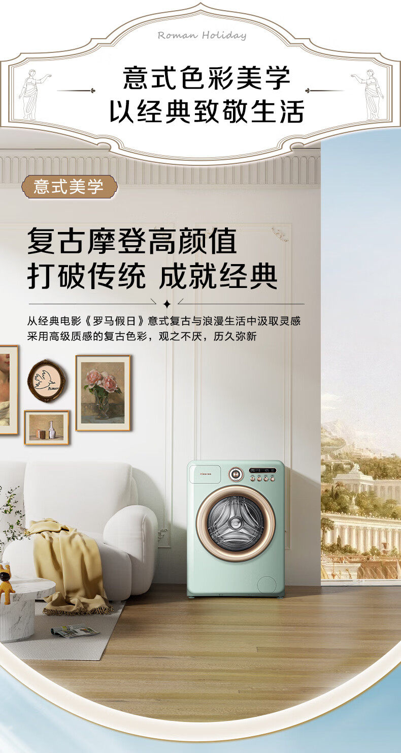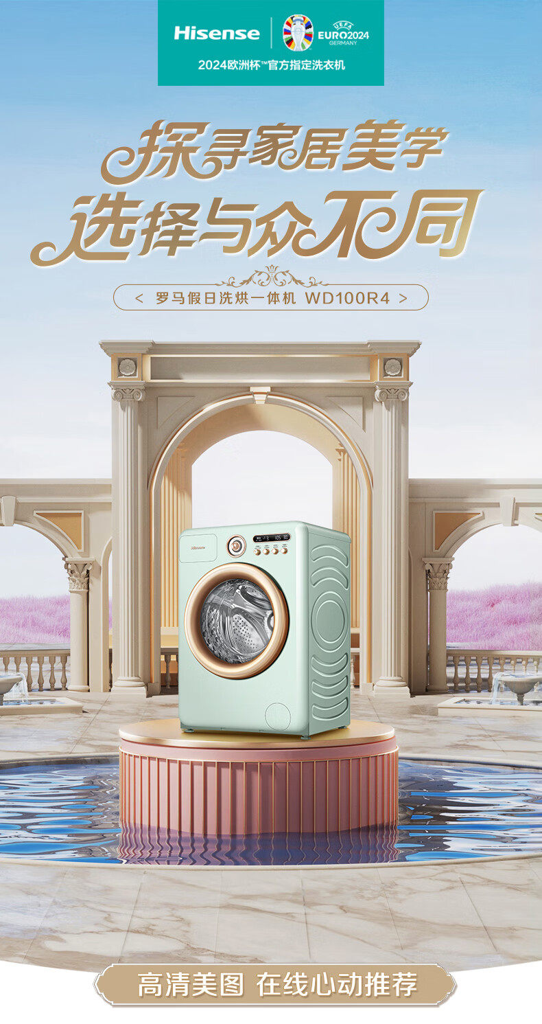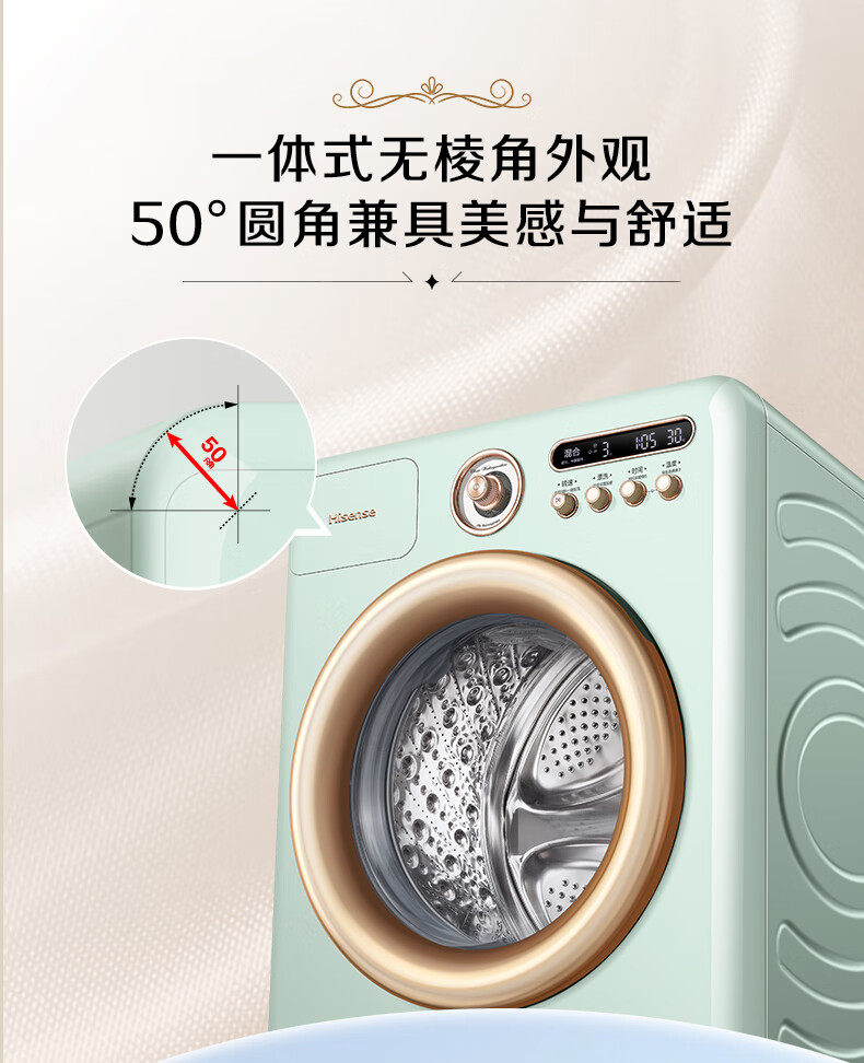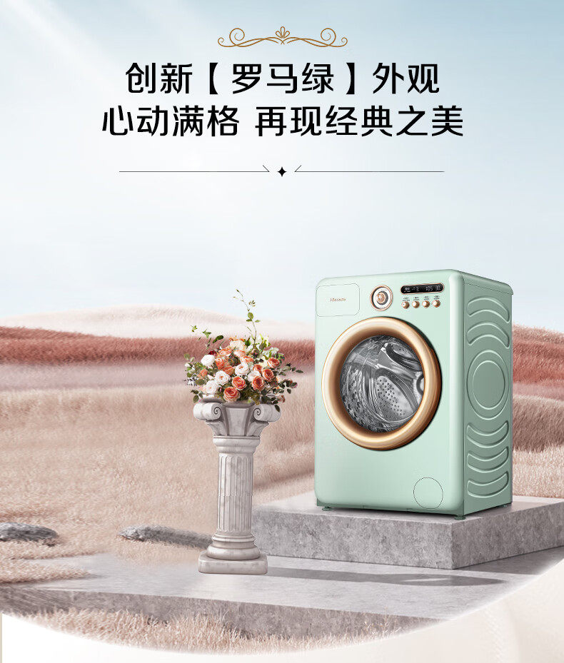 Hisense Washing Machine Fully Automatic Drum Dryer 10kg Roman Holiday Retro Washing and Drying Integrated Machine Wd100R4