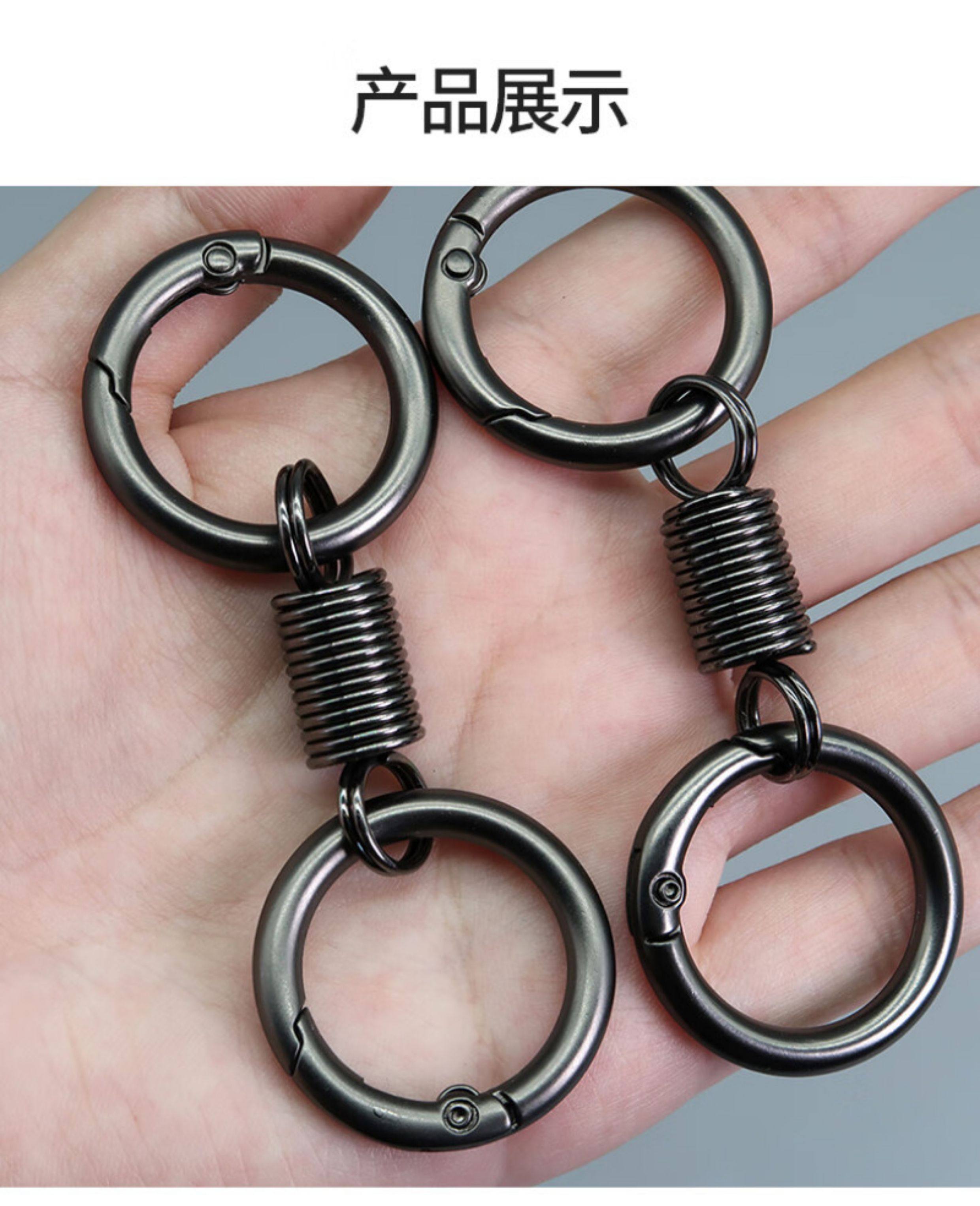 Spring-Loaded Premium Double-Ring Keychain, New Style Ring-Shaped Waist Pendant, Universal for Electric Vehicles, Unisex Keychain