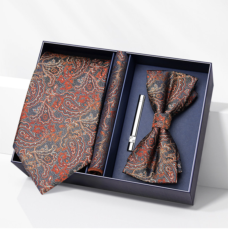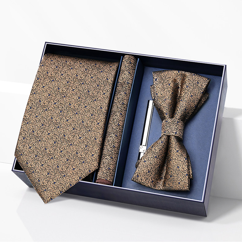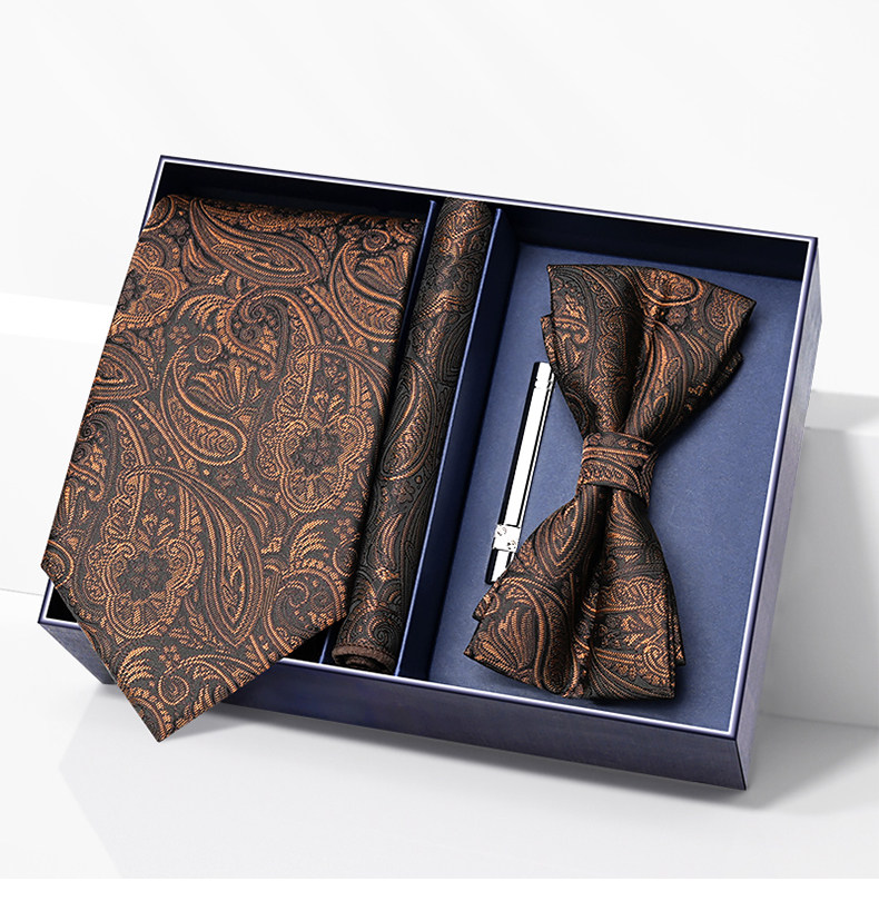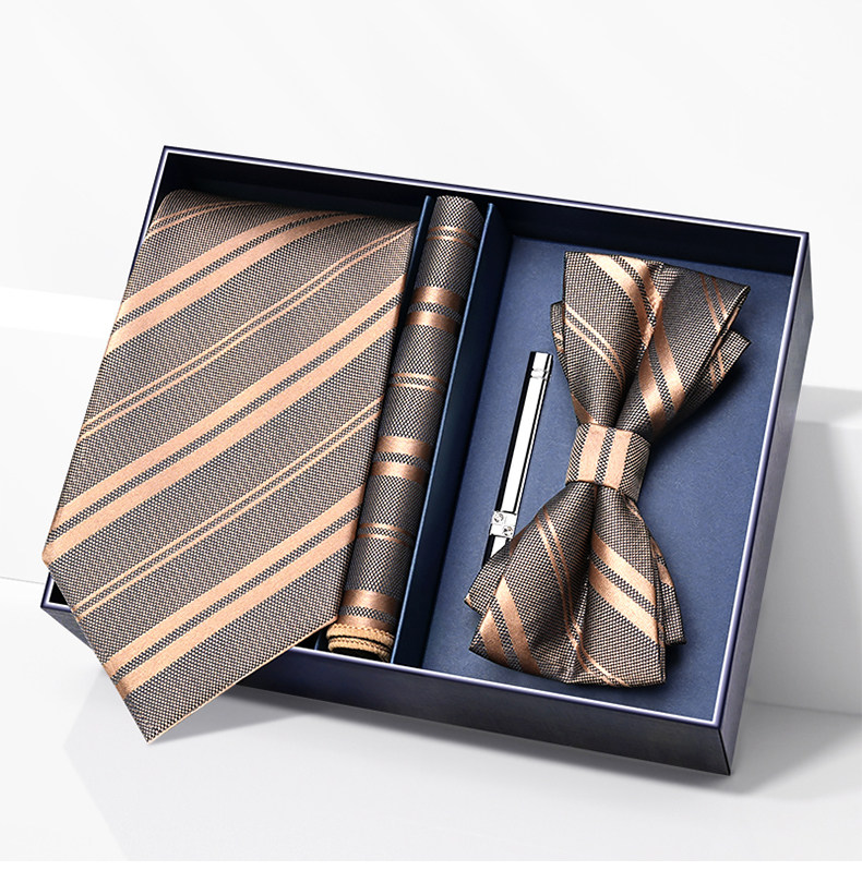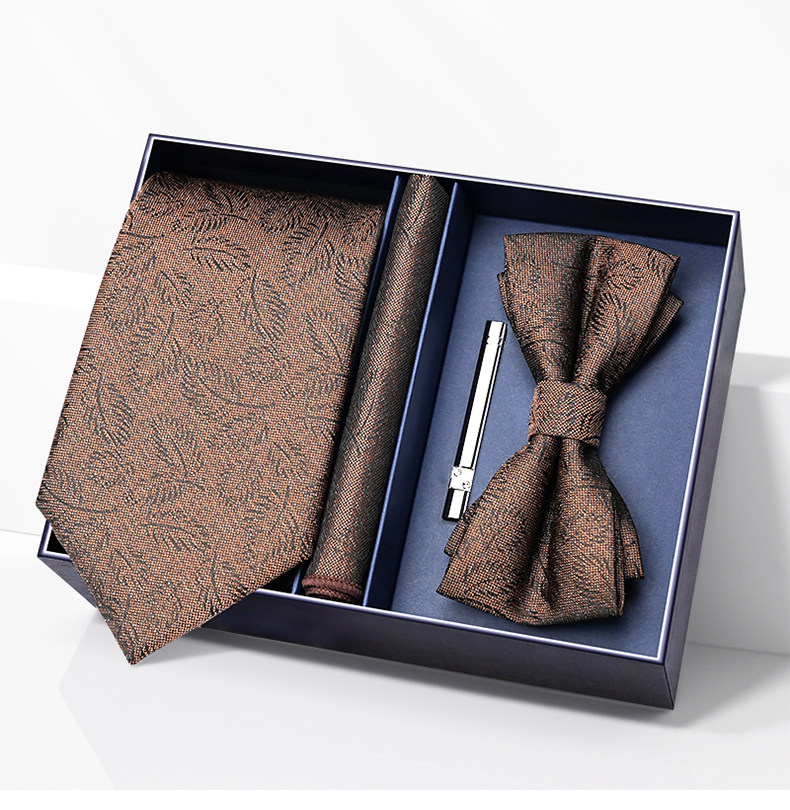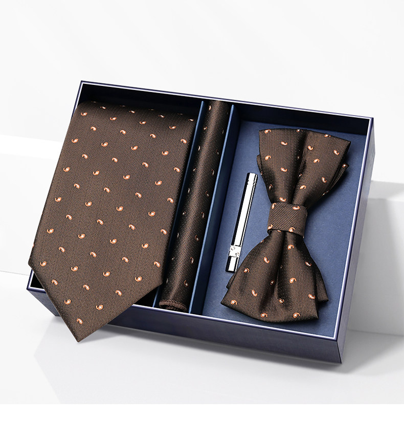 Brown Tie Business Men's Zip-Up Groom Wedding Dress Lazy No-Tie Formal Bow Tie Square Scarf Set